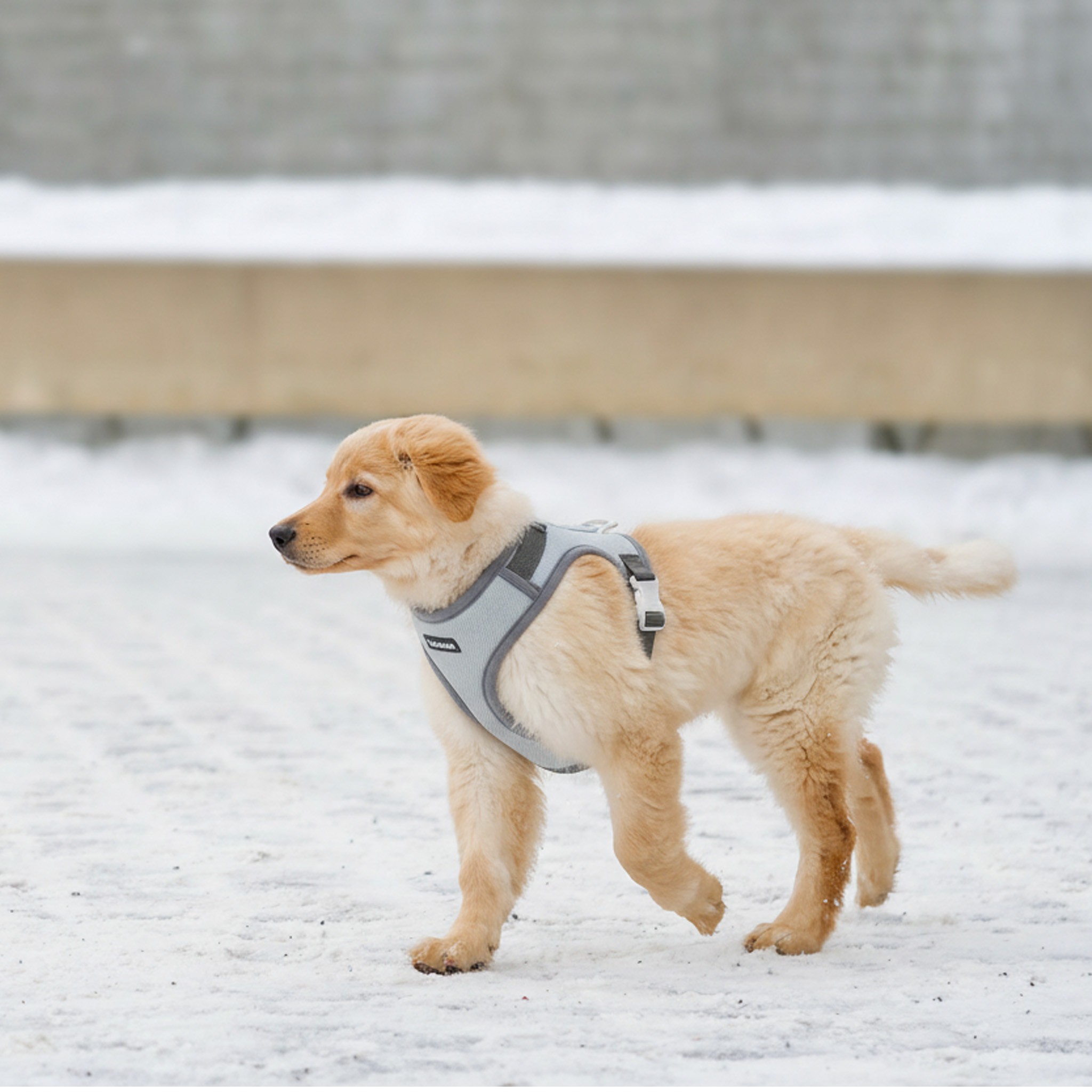 Szelki Little Bears są idealne dla szczeniąt i psów małych ras, łącząc trwałość z wygodą. Wykonane z wytrzymałych pasków i elastycznego materiału, zapewniają doskonałą regulację i komfort. Siatkowany materiał w okolicy klatki piersiowej zapobiega uciskowi na gardziel, co jest szczególnie istotne podczas ciągnięcia za smycz, gwarantując bezpieczne spacery.