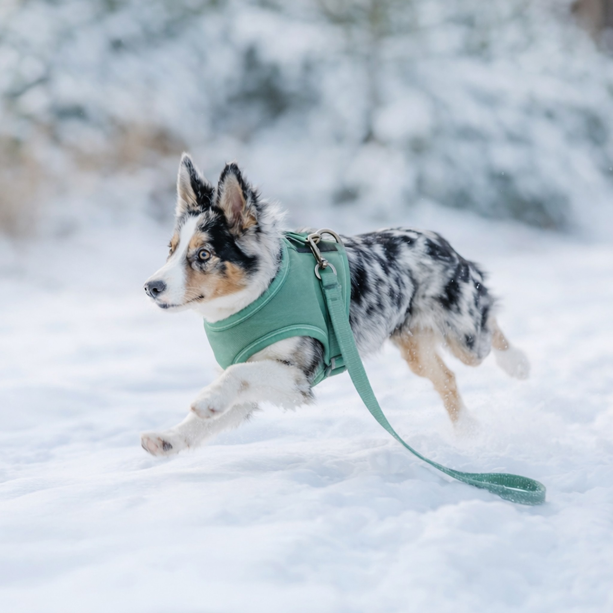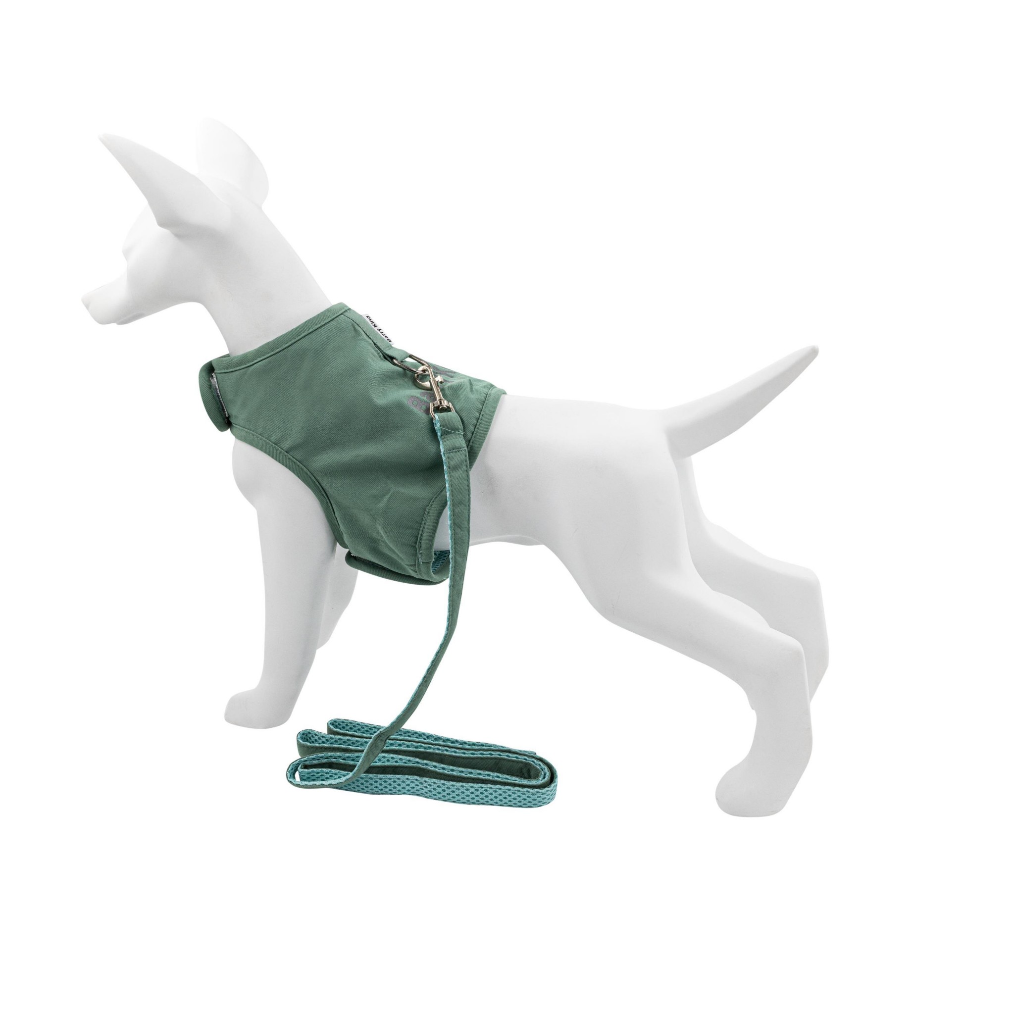 • W zestawie znajduje się pasująca smycz w pastelowej zieleni, lekka i wygodna do trzymania, doskonale uzupełniająca eleganckie szelki.
