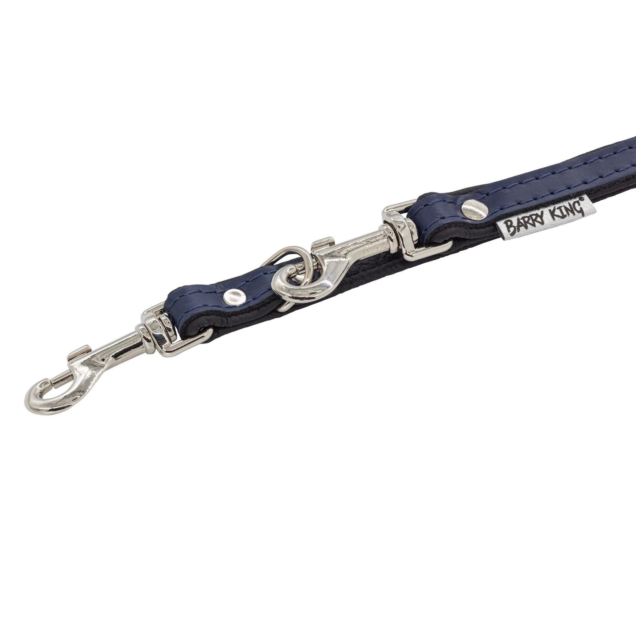 Przedstawiamy najwyższej jakości, regulowaną smycz skórzaną Barry King w klasycznym granatowo-czarnym kolorze, zaprojektowaną z myślą o komforcie i bezpieczeństwie większych psów podczas spacerów. Ta solidna, ręcznie wykonana w Polsce smycz łączy w sobie funkcjonalność i elegancję, stanowiąc idealny wybór dla właścicieli ceniących klasę i trwałość. Szerokość 20 mm i długość maksymalna 200 cm sprawiają, że jest doskonała dla średnich i dużych psów, zapewniając wygodę użytkowania oraz kontrolę nad pupilem. Wykonana z naturalnej skóry, poddanej procesom olejowania, natłuszczania i garbowania, smycz zyskuje wyjątkową miękkość i elastyczność, a także odporność na uszkodzenia mechaniczne.