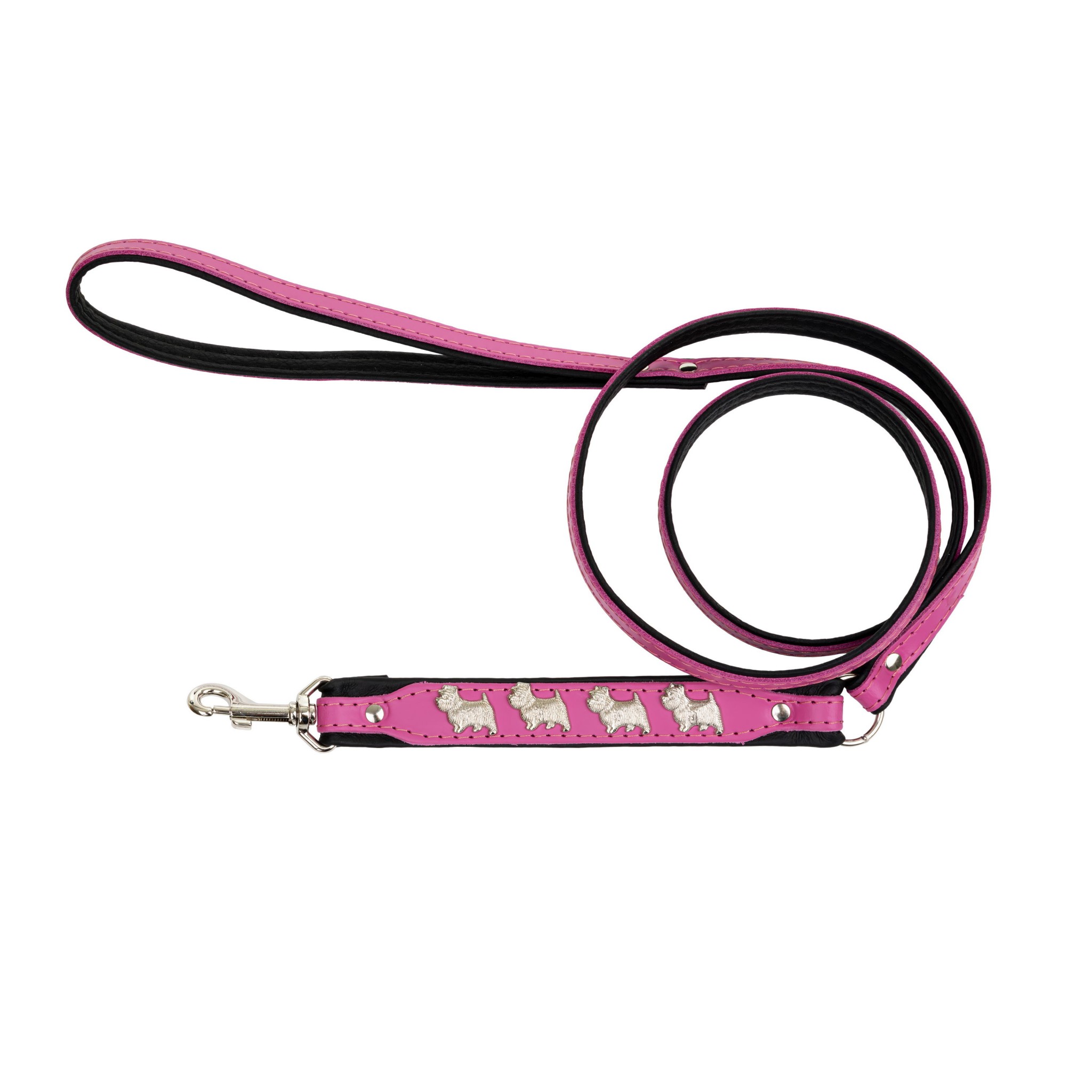 • Modny design: Smycz wyróżnia się pięknym, różowym kolorem, który w połączeniu z dekoracyjnymi naszywkami w kształcie psów rasy Westie nadaje jej wyjątkowy, elegancki charakter. To idealny wybór dla psa, który chce wyglądać stylowo!
