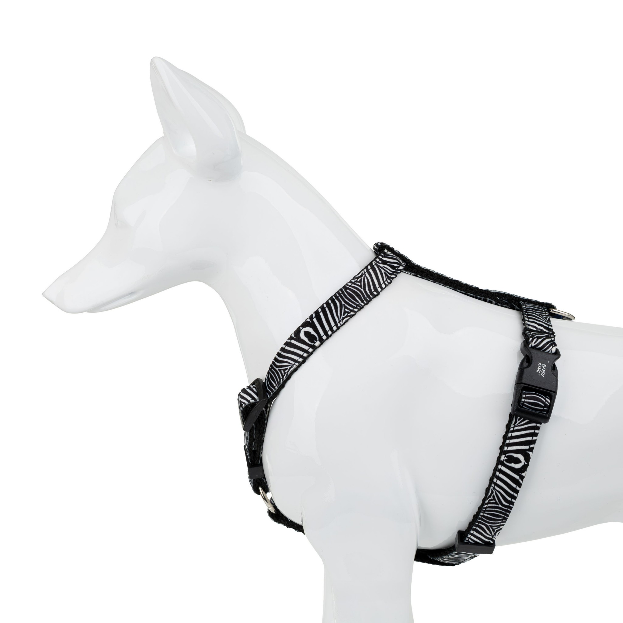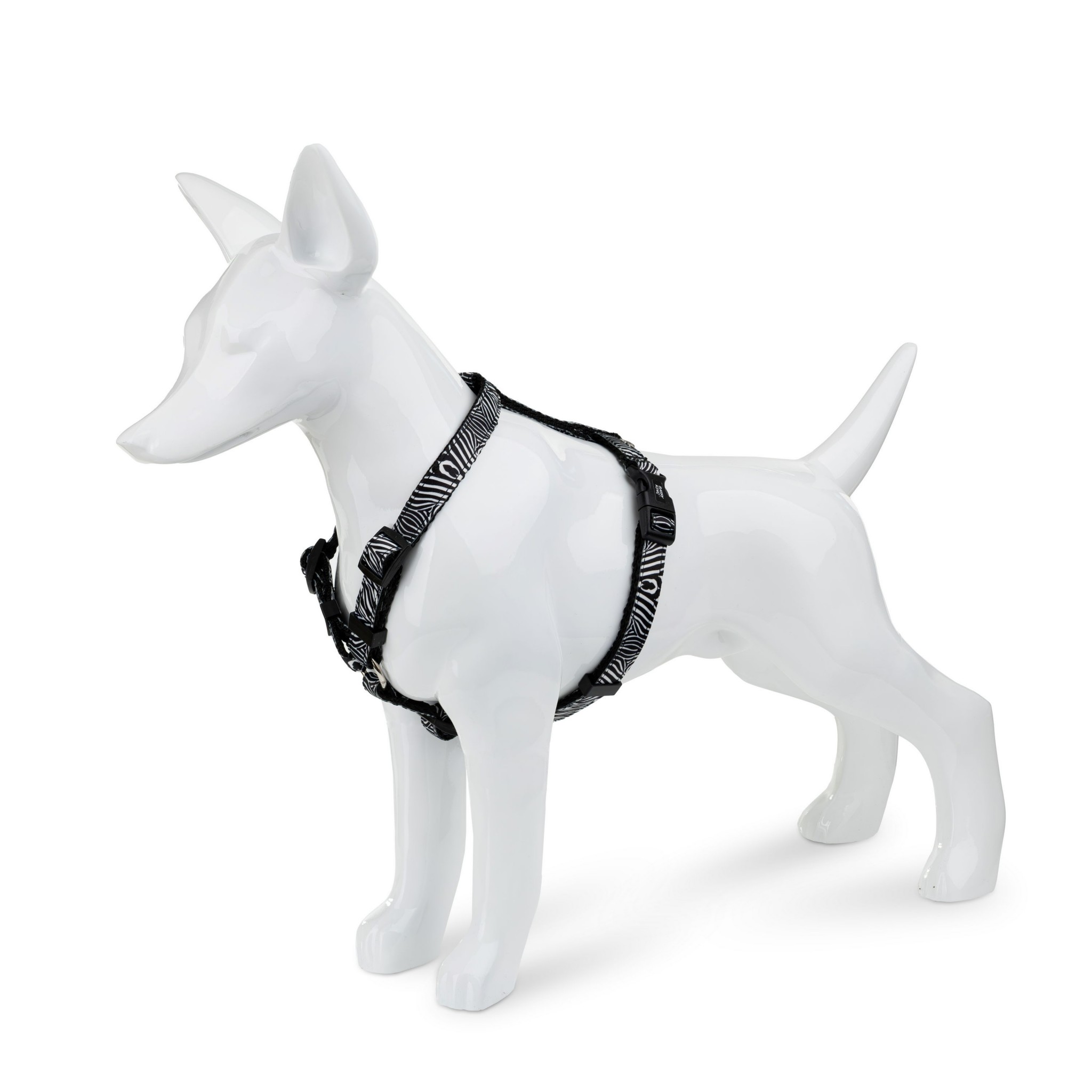 Wybierz szelki Barry King w czarno-białym wzorze zebry, aby Twój pies wyglądał stylowo, ciesząc się jednocześnie komfortem i bezpieczeństwem na spacerze!