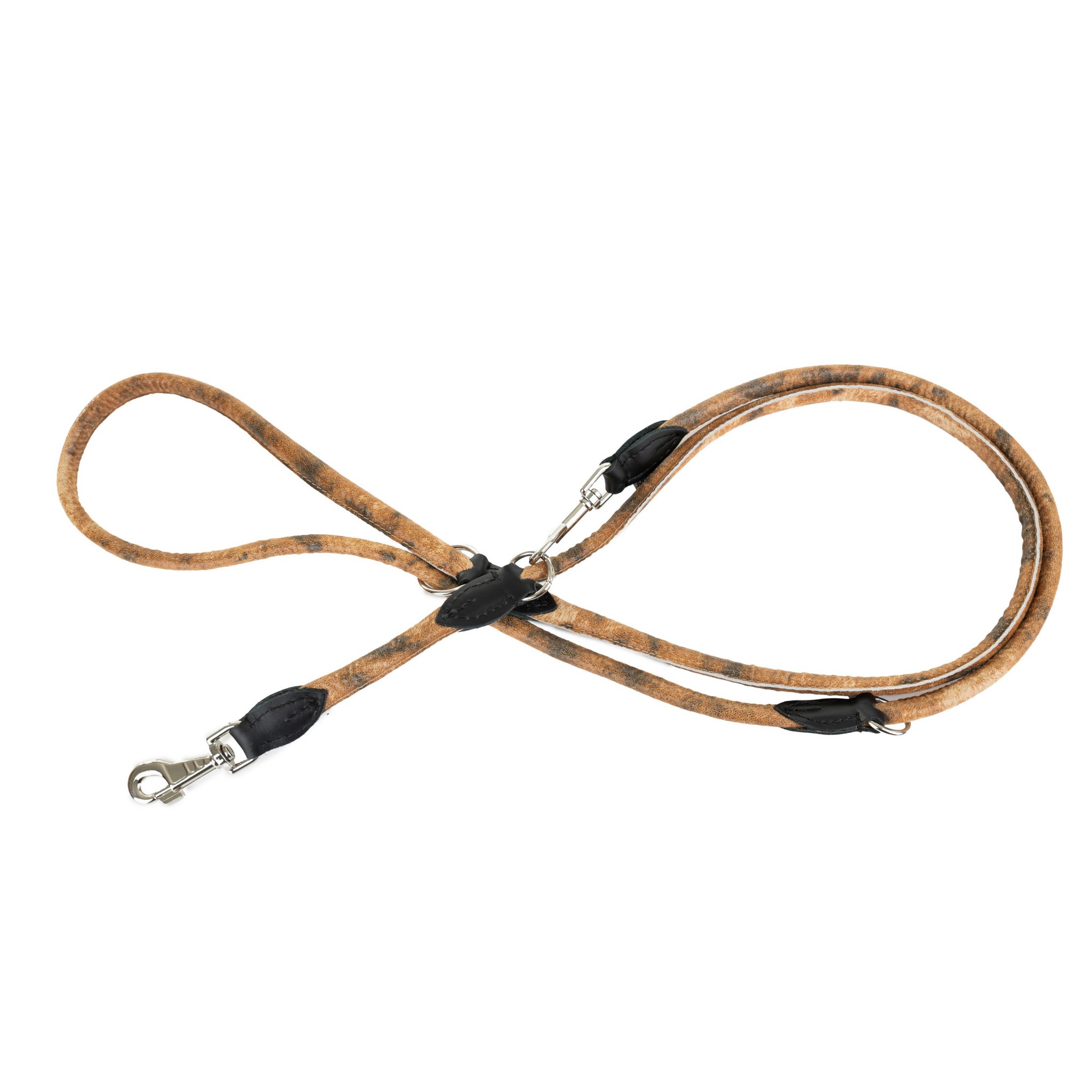 • Regulowana długość: Smycz wyposażona jest w trzy niklowane kółka, które pozwalają regulować długość do 220 cm, zapewniając odpowiednią kontrolę oraz swobodę ruchu psa.