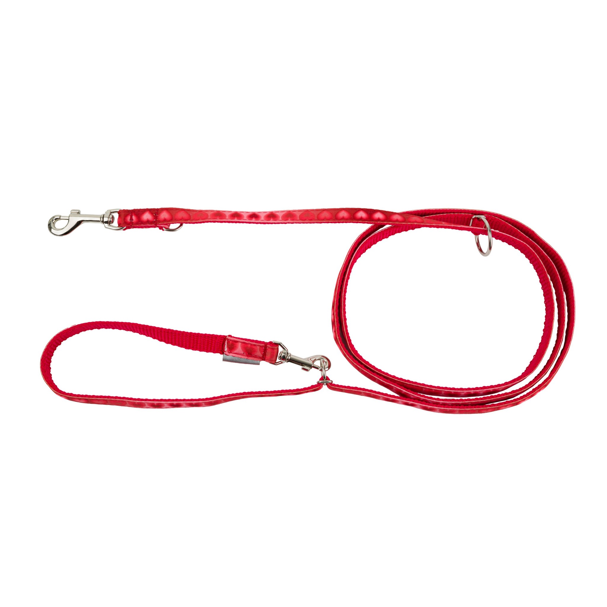 • Stylowy design w serca – naszyta dekoracyjna taśma z czerwonym motywem serc dodaje uroku i wyróżnia się na tle klasycznych smyczy. Idealna dla właścicieli, którzy chcą wyrazić swoją miłość do pupila również w spacerowych akcesoriach.