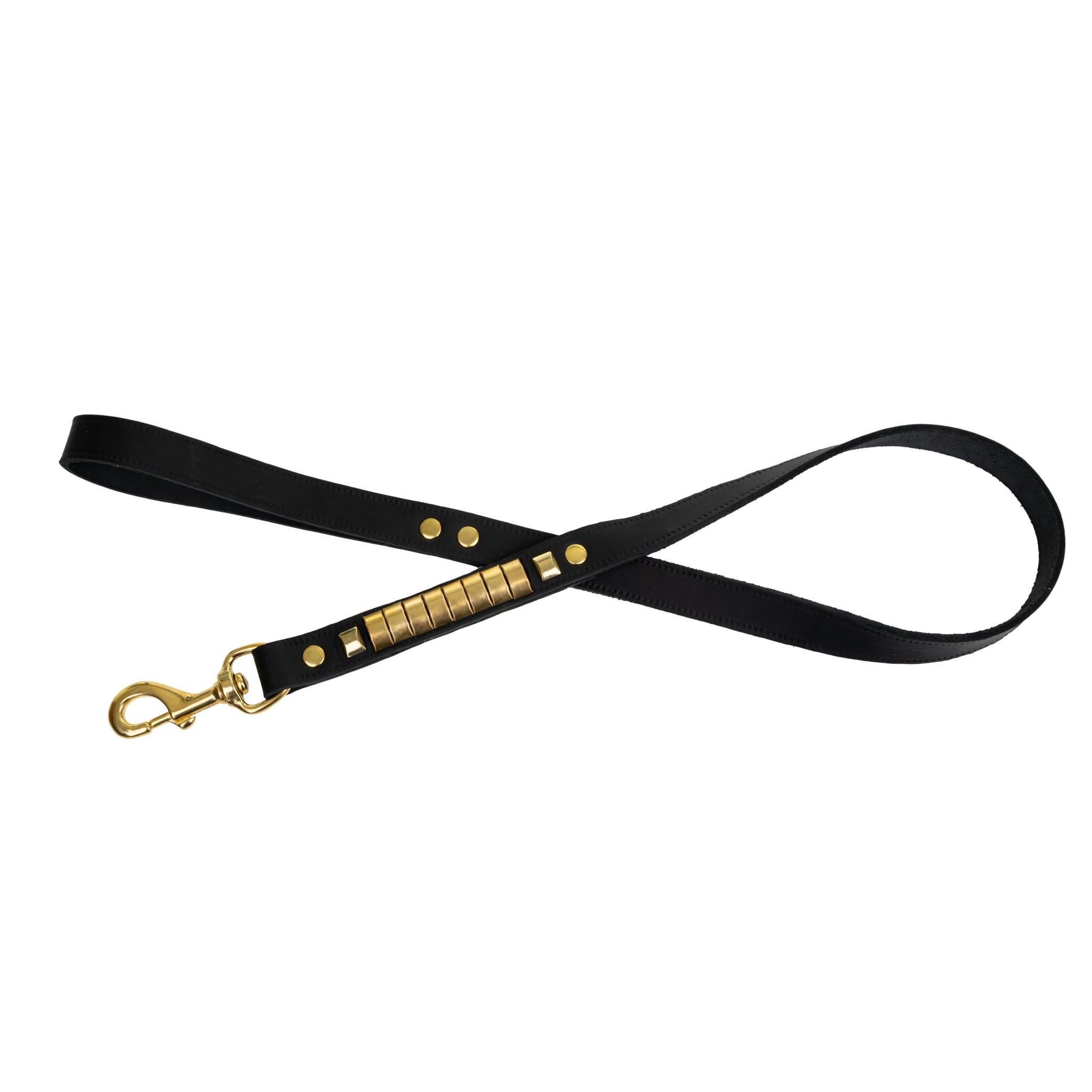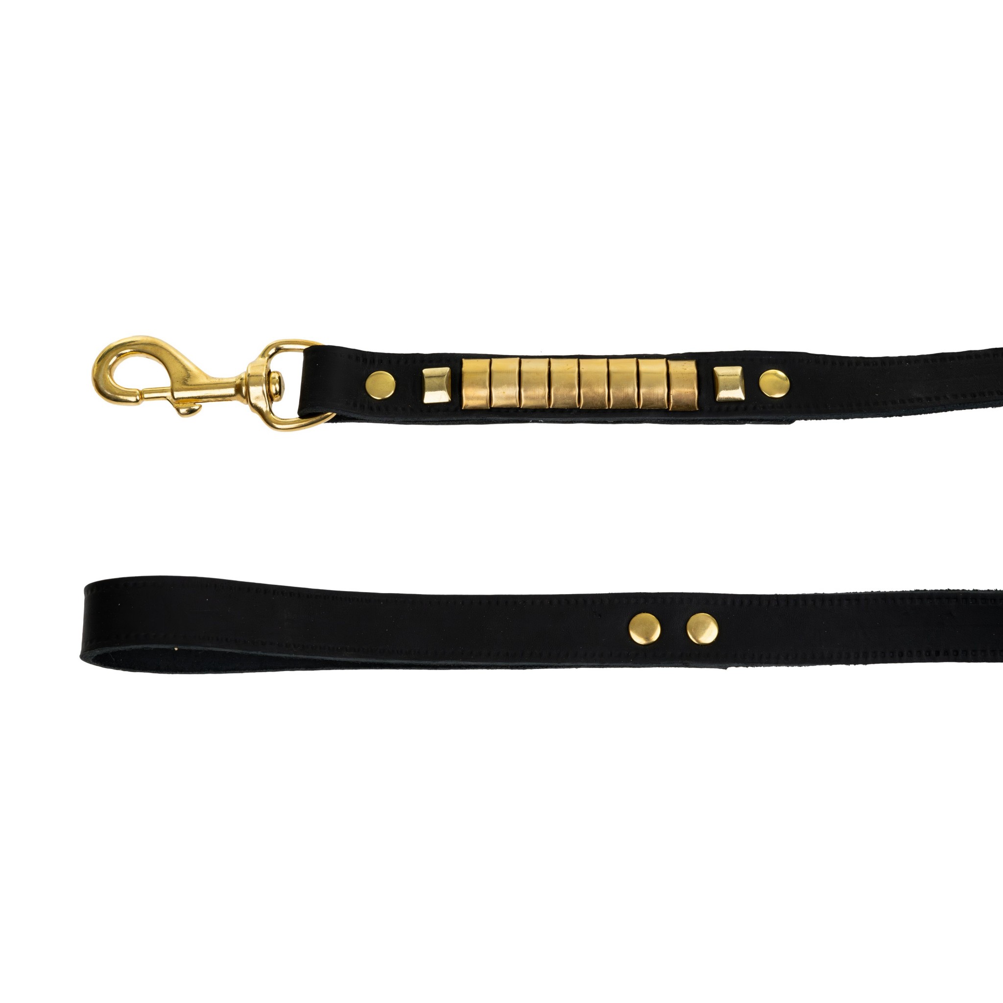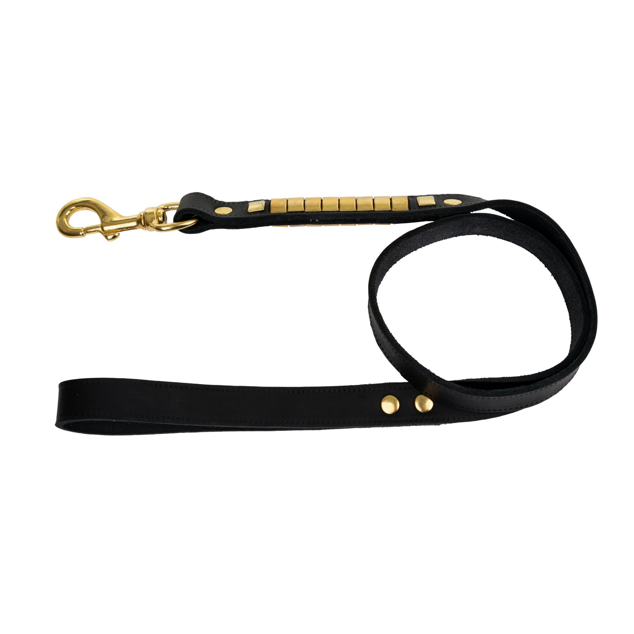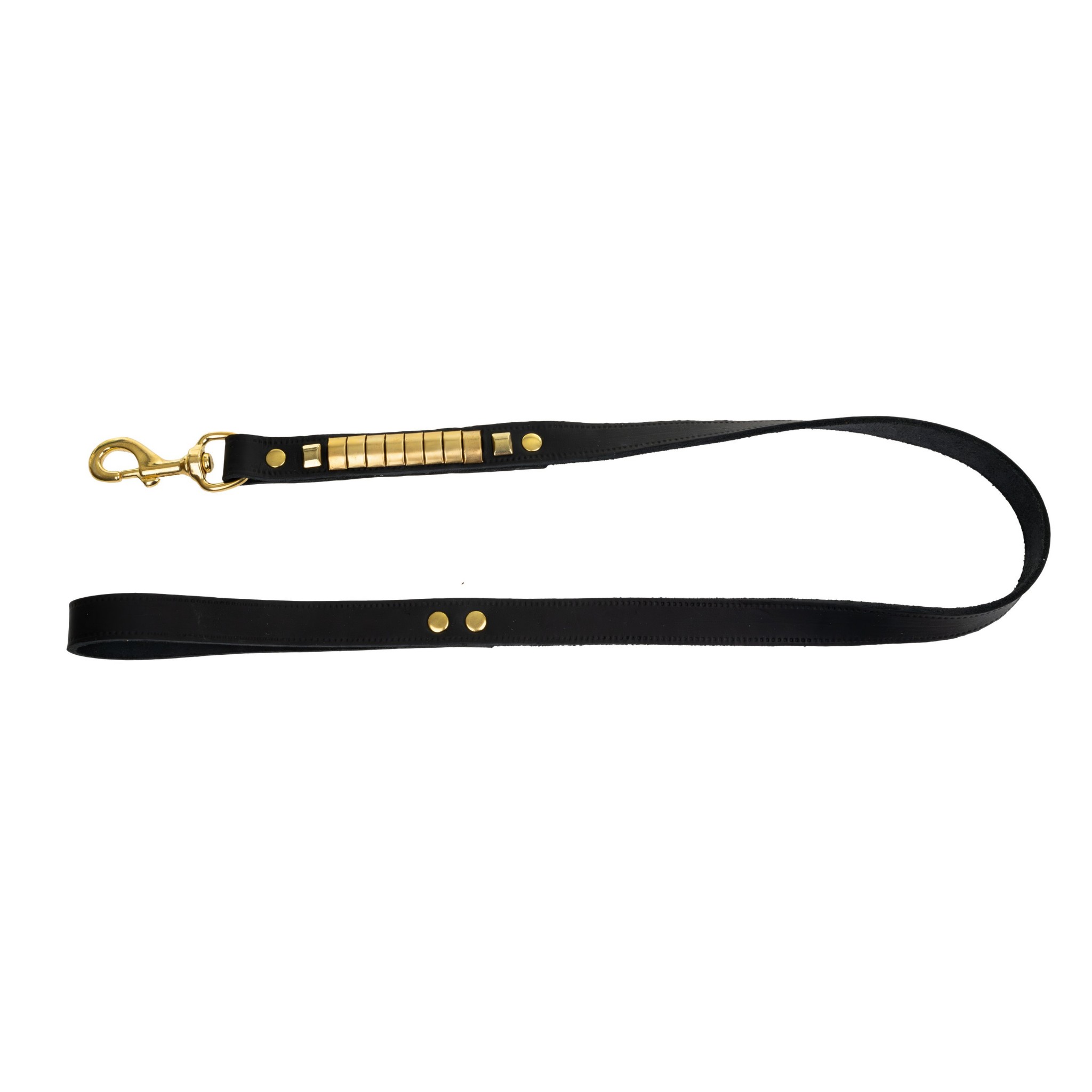 • Mosiężne okucia – trwałe, odporne na korozję i estetyczne; złoty karabińczyk i nity podkreślają luksusowy wygląd smyczy.