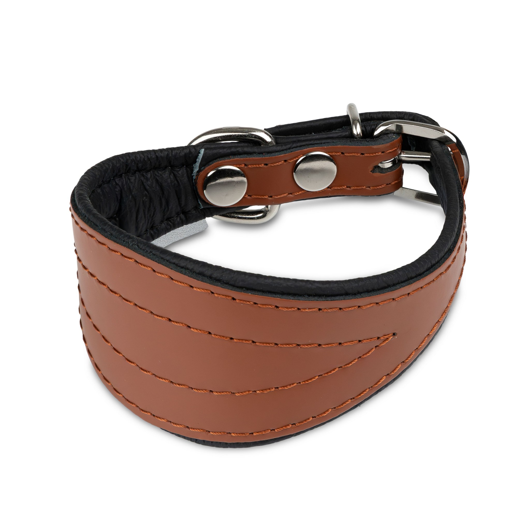 Szeroka, elegancka obroża zaprojektowana specjalnie z myślą o rasach takich jak chart, whippet, borzoj czy greyhound. Wykonana z dwóch warstw naturalnej skóry — zewnętrznej, wytrzymałej i stylowej w kolorze koniak, oraz wewnętrznej, bardzo miękkiej i delikatnej, zapewniającej komfort nawet najbardziej wrażliwej szyi. Produkt wyprodukowany w Polsce, z dbałością o najwyższą jakość i detale.