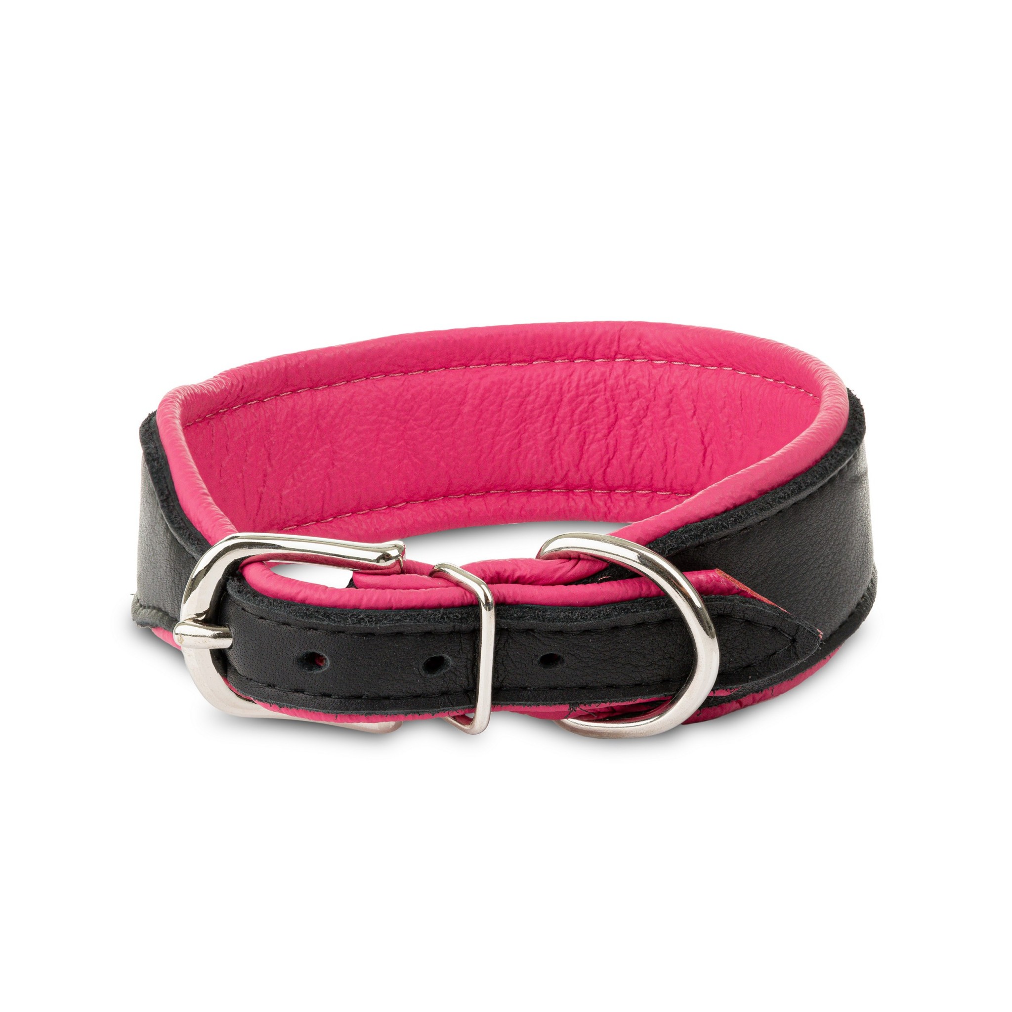 Obroża ta została wykonana w Polsce z dbałością o każdy detal. Wyróżnia się unikalnym połączeniem dwóch warstw skóry – wewnętrznej, wykonanej z naturalnej skóry o wysokiej odporności na przetarcia w modnym odcieniu różowego, oraz zewnętrznej, powstałej z luksusowej skóry łosia w kolorze czarnym. Skóra łosia słynie z wyjątkowej miękkości, elastyczności oraz przyjemnej w dotyku struktury, która doskonale dopasowuje się do kształtu szyi psa, zapewniając mu maksimum komfortu bez uczucia ucisku czy otarć.