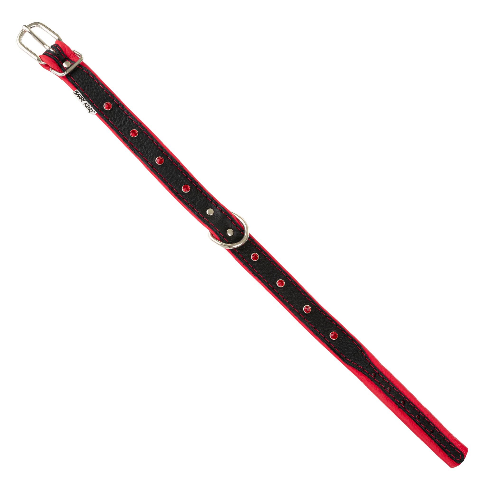 Barry King Obroża Skóra Łoś Kryształ 20mm/45cm czerwony – subtelna elegancja z nutą blasku dla średnich psów