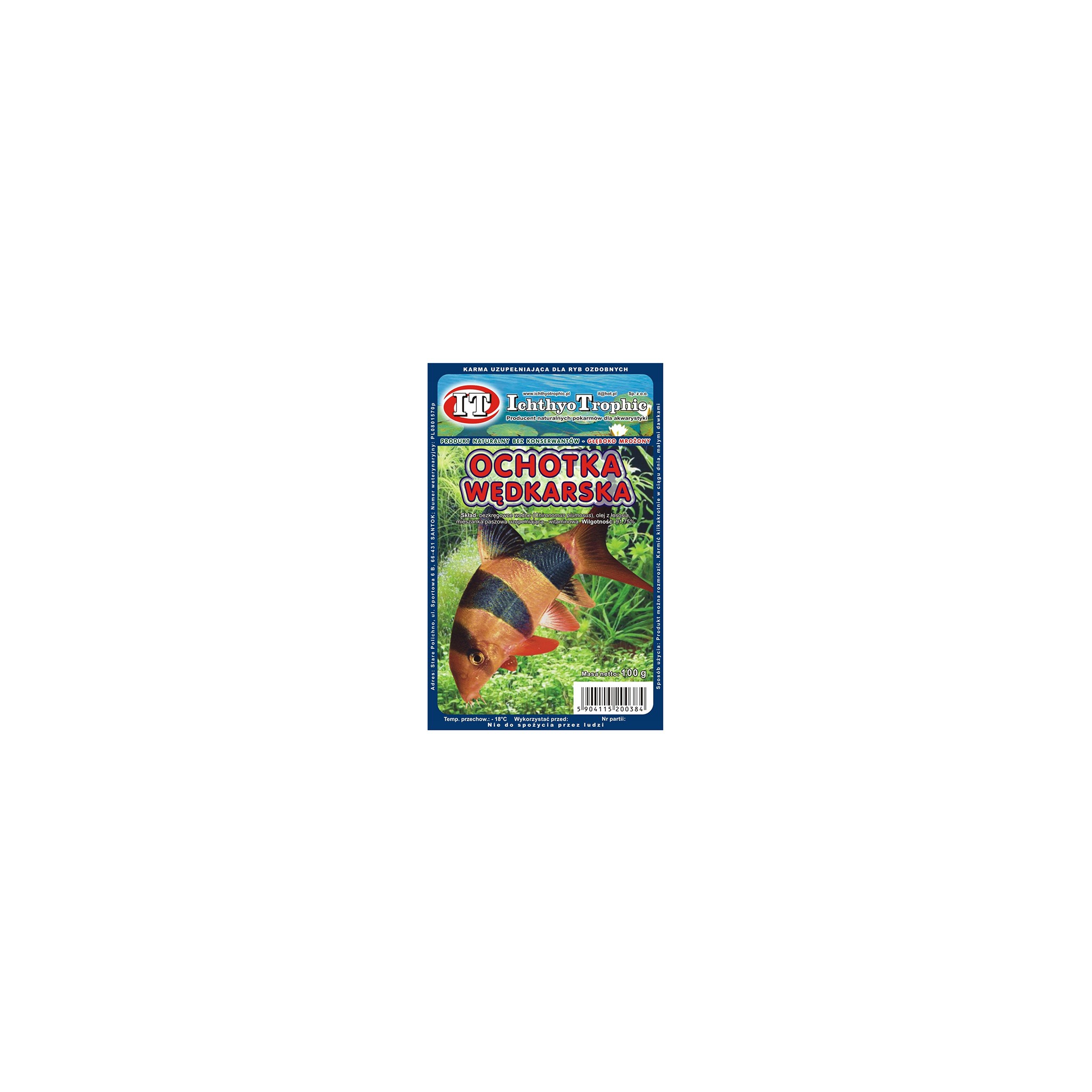 Ichthyo Trophic Ochotka Jumbo to wysokowartościowy pokarm naturalny składający się z dużych czerwonych larw komara (Chironomus plumosus), specjalnie przeznaczony dla większych ryb mięsożernych, żółwi i raków. Ten wyjątkowy pokarm mrożony w blistrze 100g, zwany także ochotką wędkarską, został wzbogacony olejem z łososia oraz mieszanką witaminową, zapewniając Twoim większym wodnym podopiecznym smakowite i pełnowartościowe odżywienie.