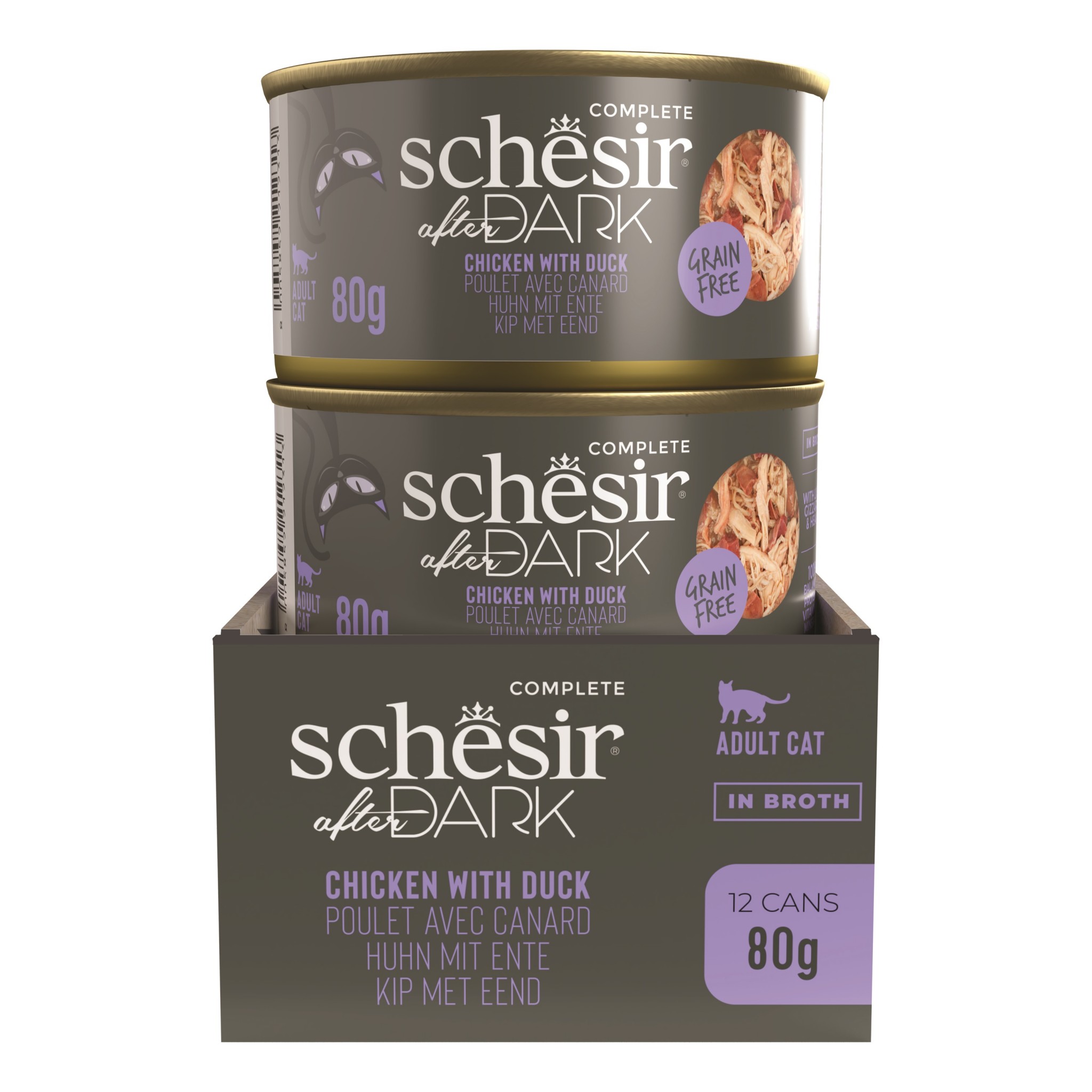 Schesir After Dark to linia minimalnie przetworzonych, kompletnych i zbilansowanych mokrych karm o wysokiej zawartości białka, przeznaczona dla kotów, które kochają smak mięsa i podrobów.