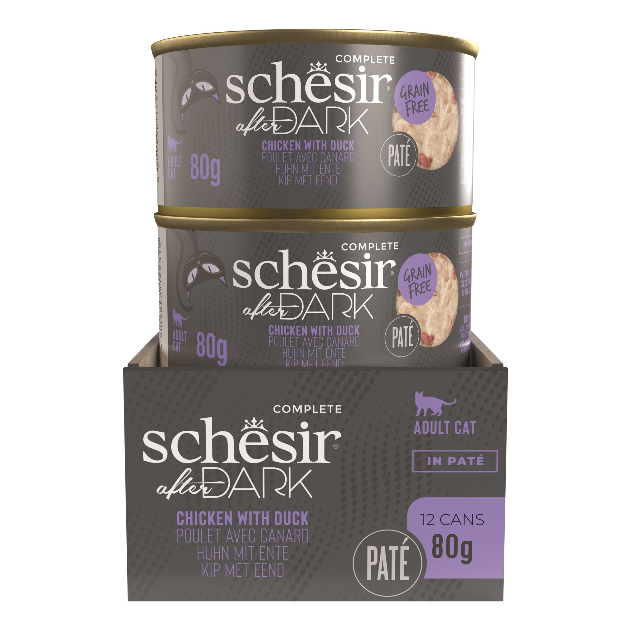 Schesir After Dark to linia minimalnie przetworzonych, kompletnych i zbilansowanych mokrych karm o wysokiej zawartości białka, przeznaczona dla kotów, które kochają smak mięsa i podrobów.