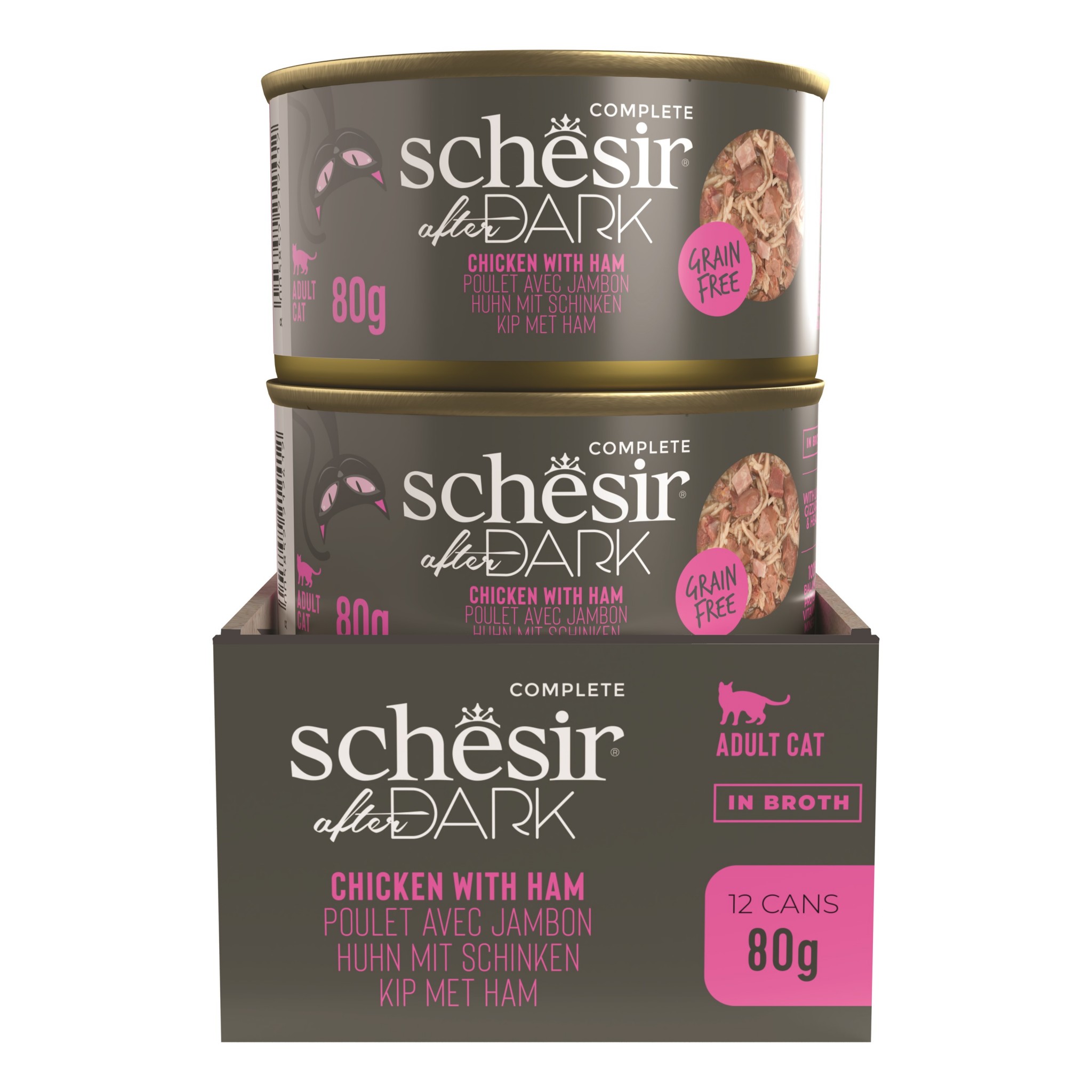 Schesir After Dark to linia minimalnie przetworzonych, kompletnych i zbilansowanych mokrych karm o wysokiej zawartości białka, przeznaczona dla kotów, które kochają smak mięsa i podrobów.
