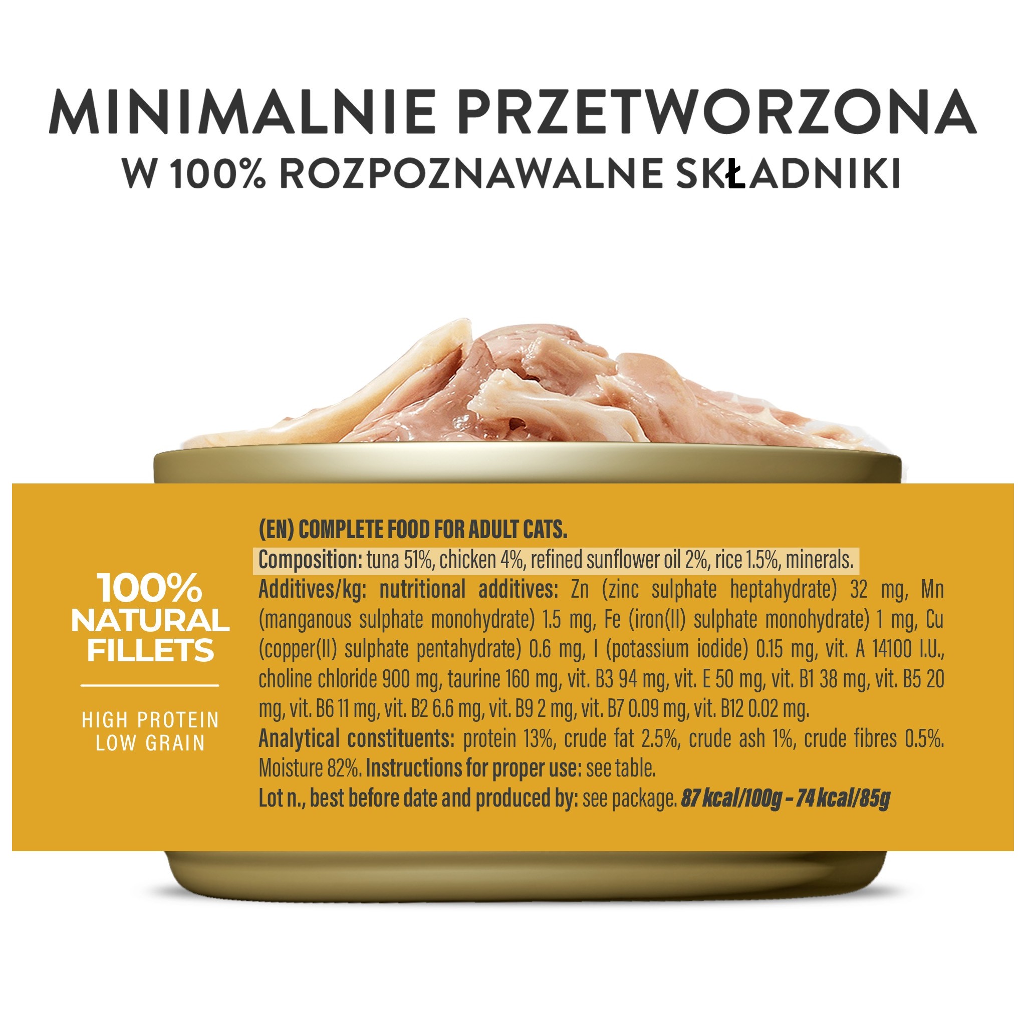 · Głównym składnikiem jest tuńczyk z dodatkiem kurczaka