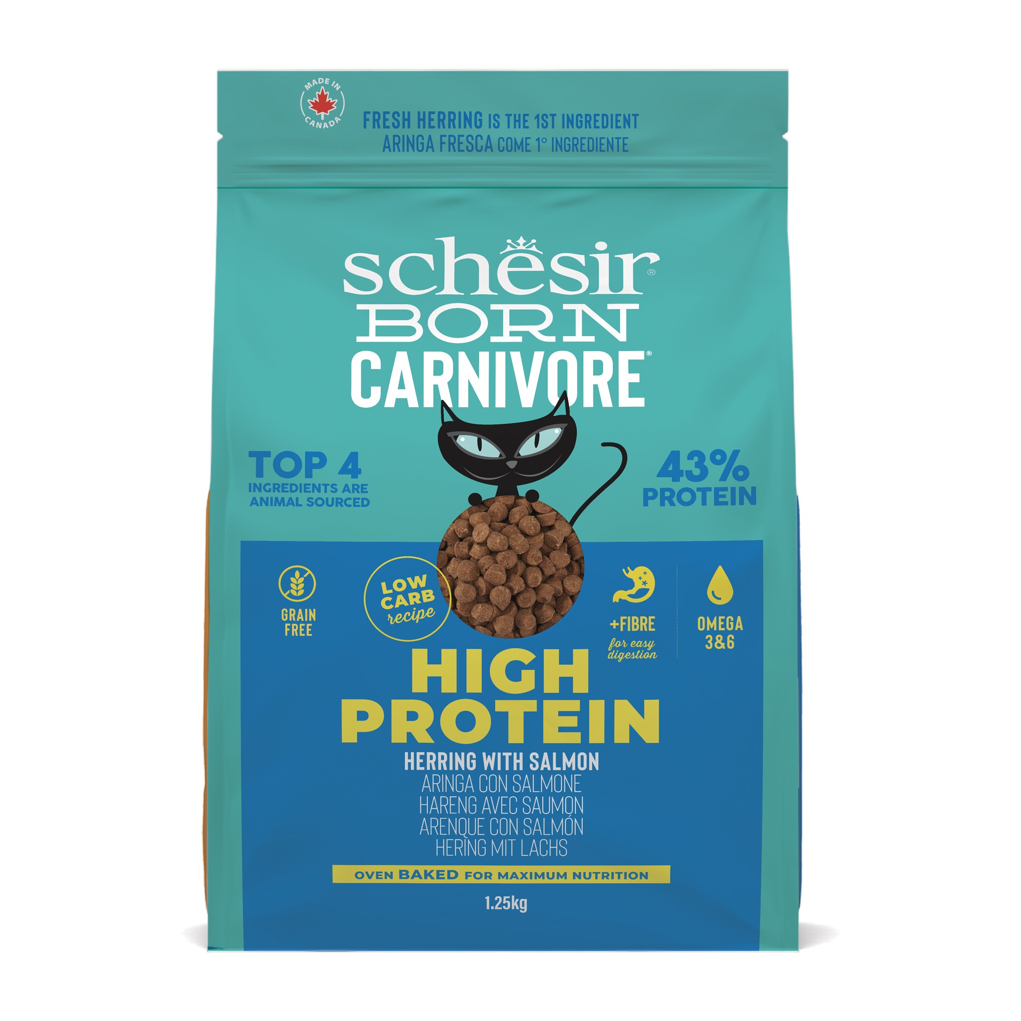 Z wysoką zawartością białka ≥43% i niską zawartością węglowodanów <12%, nowa linia Schesir Born Carnivore to idealna karma dla prawdziwych mięsożerców.