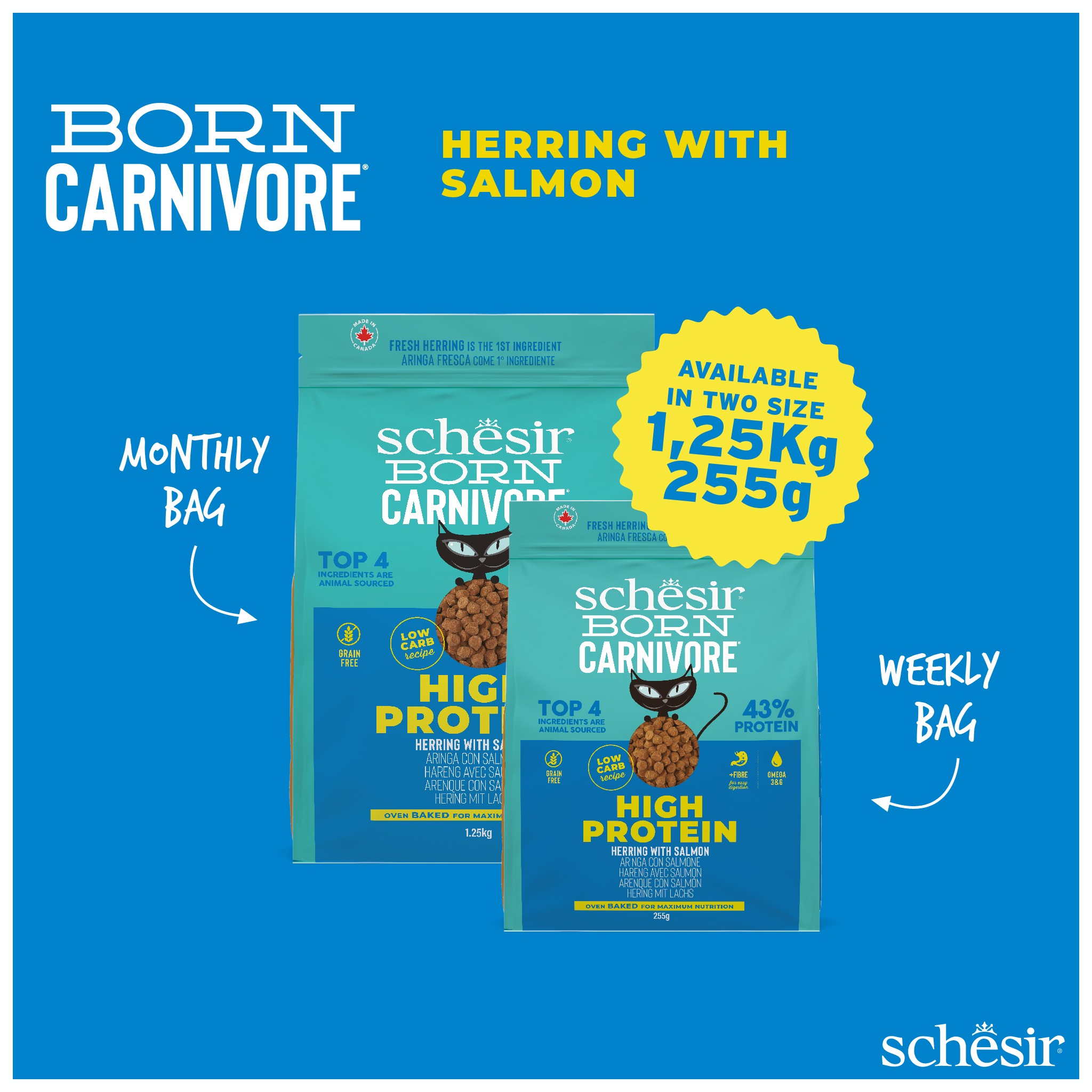 SCHESIR BORN CARNIVORE CAT BAG DRY ŚLEDŹ Z ŁOSOSIEM 1,25kg