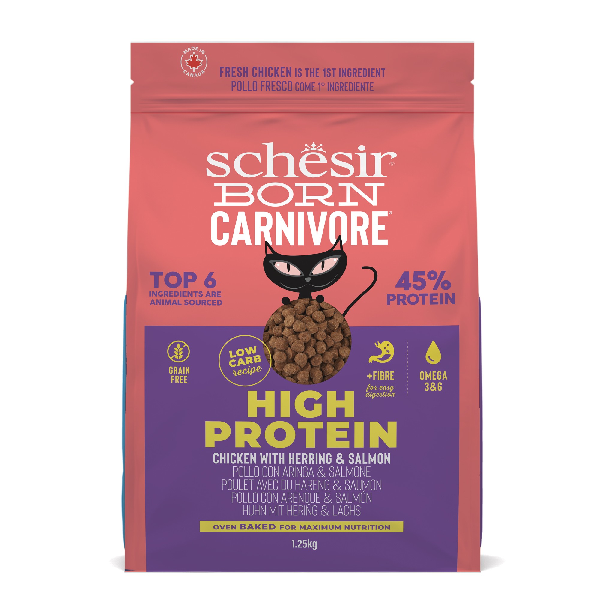 Z wysoką zawartością białka ≥43% i niską zawartością węglowodanów <12%, nowa linia Schesir Born Carnivore to idealna karma dla prawdziwych mięsożerców.
