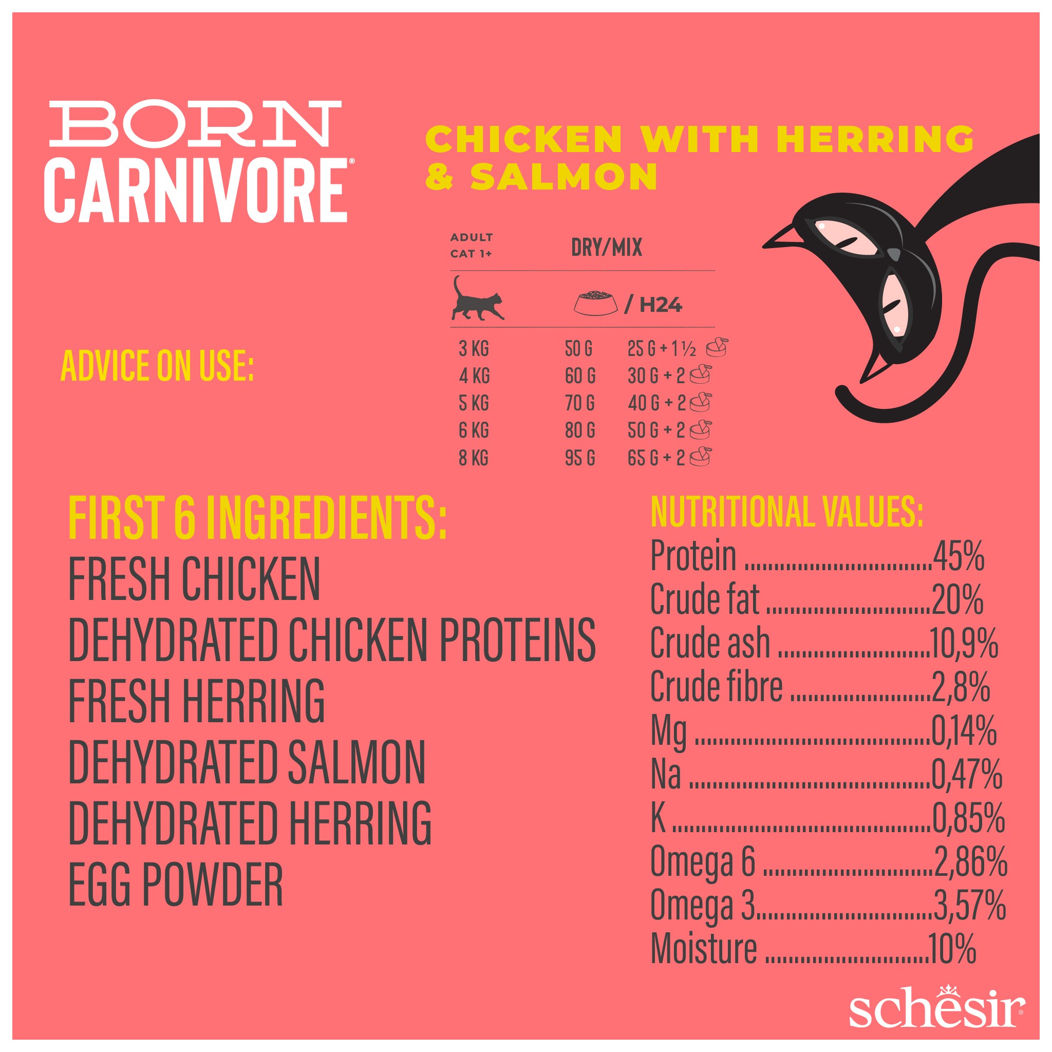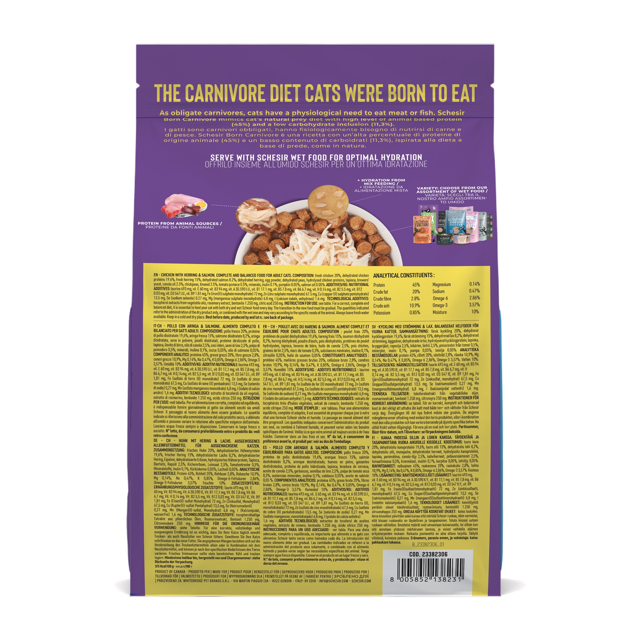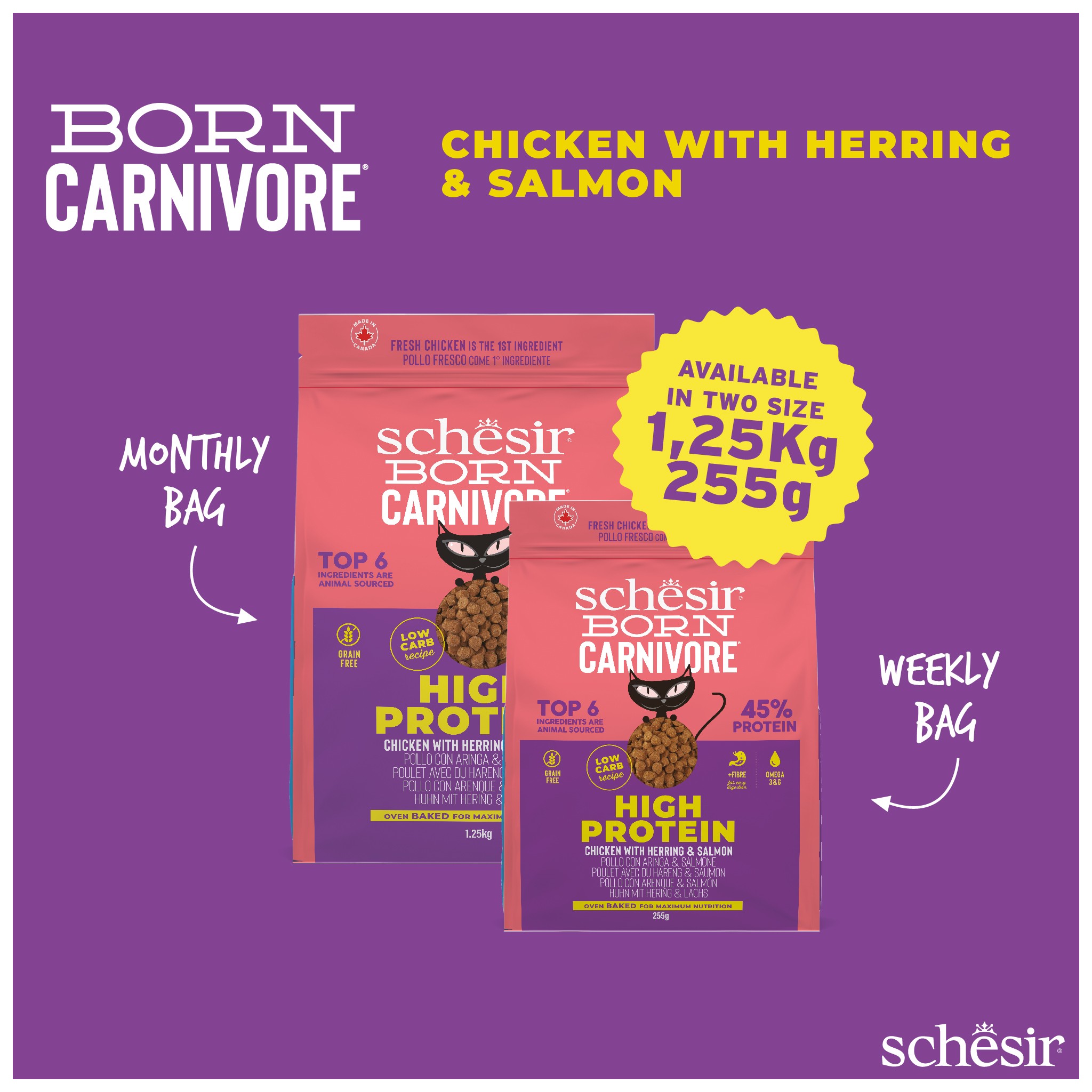 SCHESIR BORN CARNIVORE CAT DRY ADULT KURCZAK ZE ŚLEDZIEM I ŁOSOSIEM 1,25kg