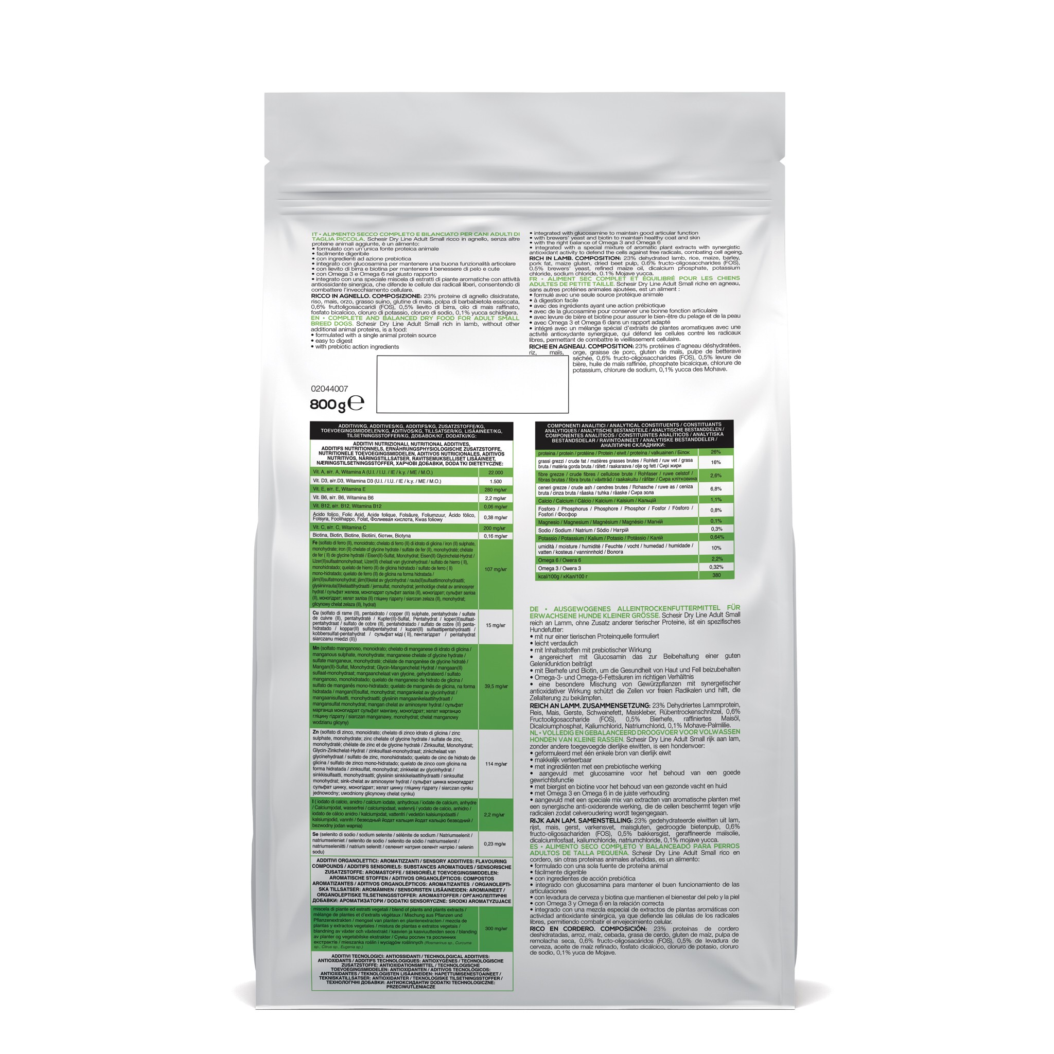 Formuła oparta na jednym źródle białka zwierzęcego (jagnięcina), które jest również głównym składnikiem karmy, sprawia, że jest to smaczny, lekkostrawny, kompletny i zbilansowany posiłek zaspokajający potrzeby żywieniowe dorosłych małych psów wszystkich ras. W połączeniu z glukozaminą pomaga utrzymać dobrą funkcjonalność stawów.