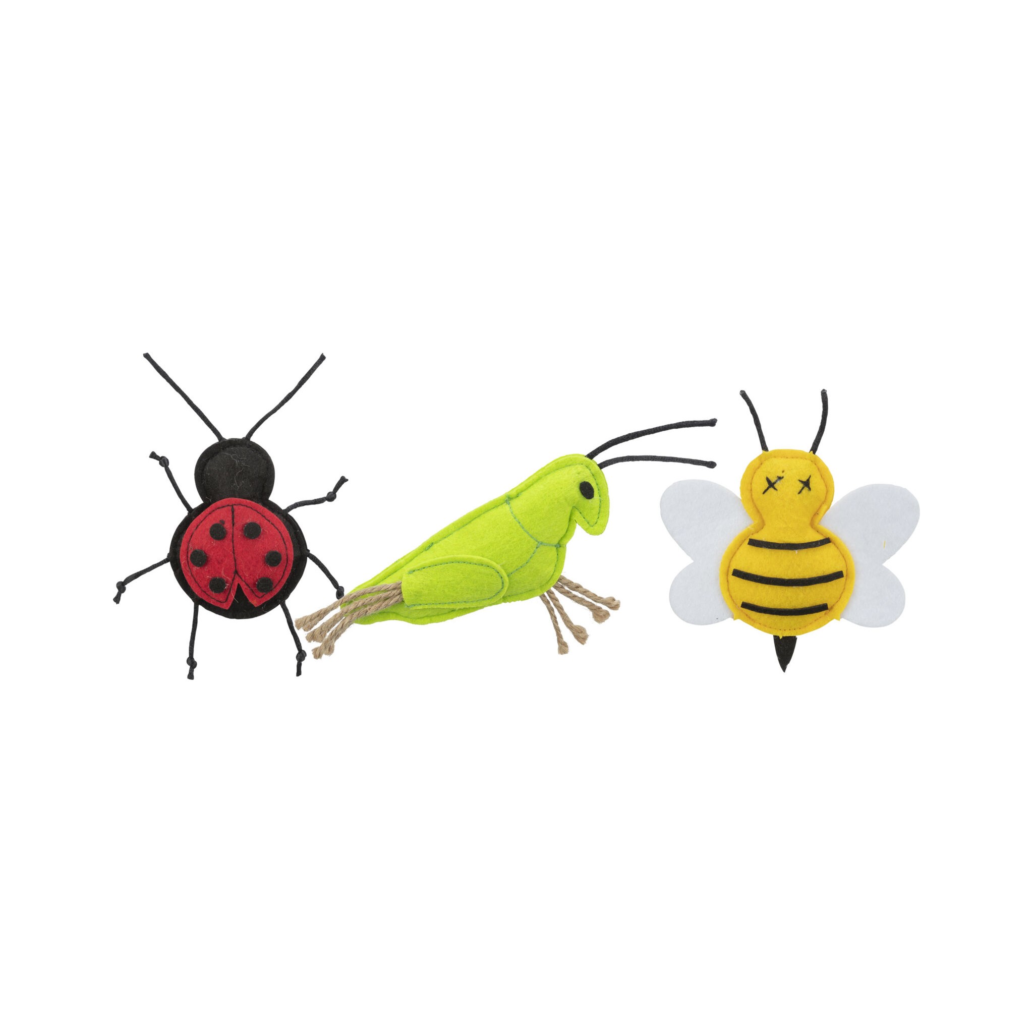 Insekty to zabawki dla kotów wykonane z filcu. Są dostępne tylko w kompletnych jednostkach opakowań, co sprawia, że są trwałe i długotrwałe. Dzięki nim koty mogą świetnie się bawić, chwytając, gryząc i rzucając zabawkami.