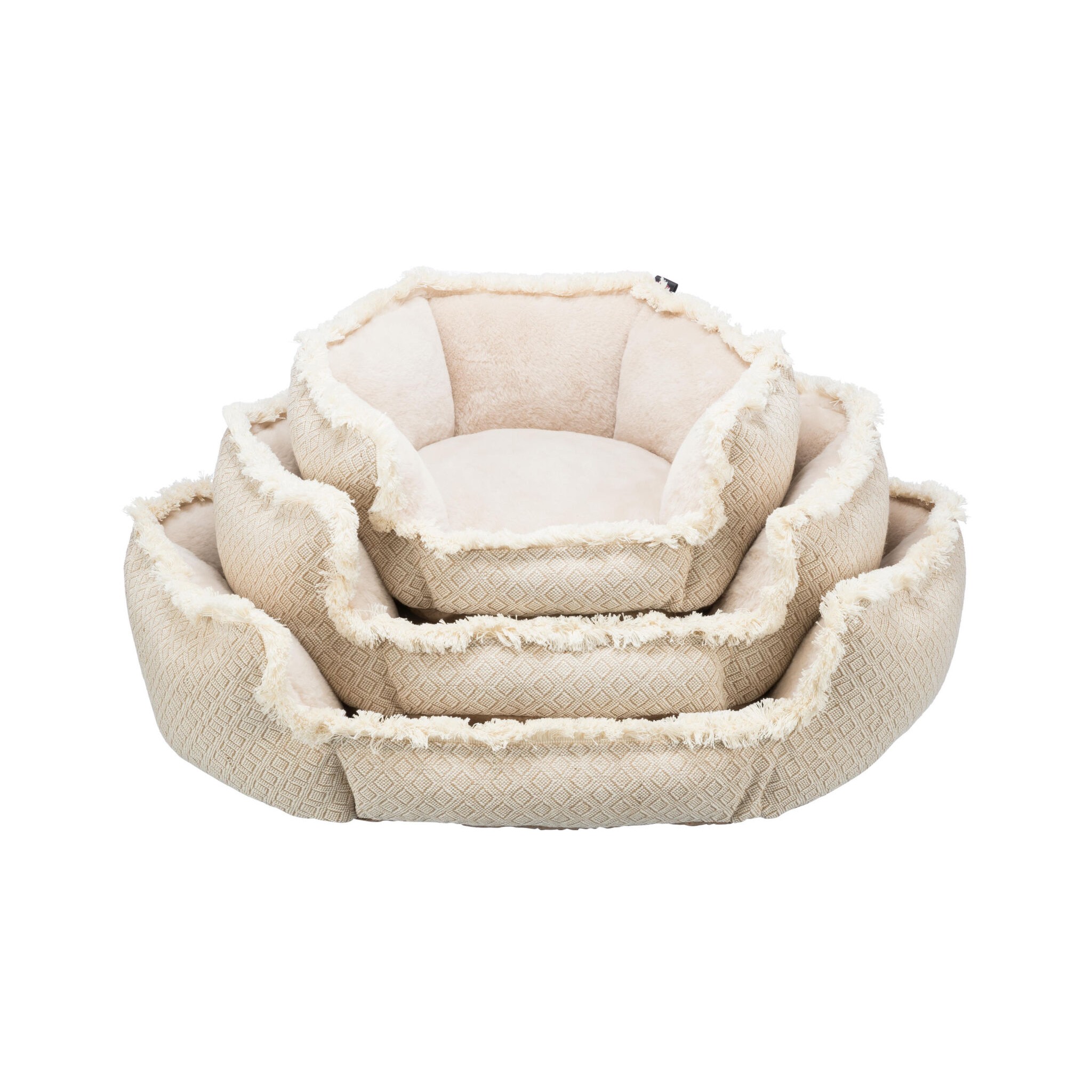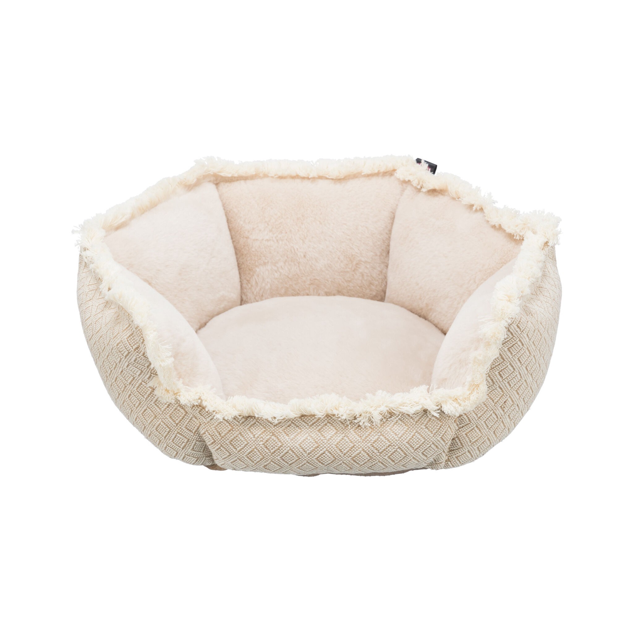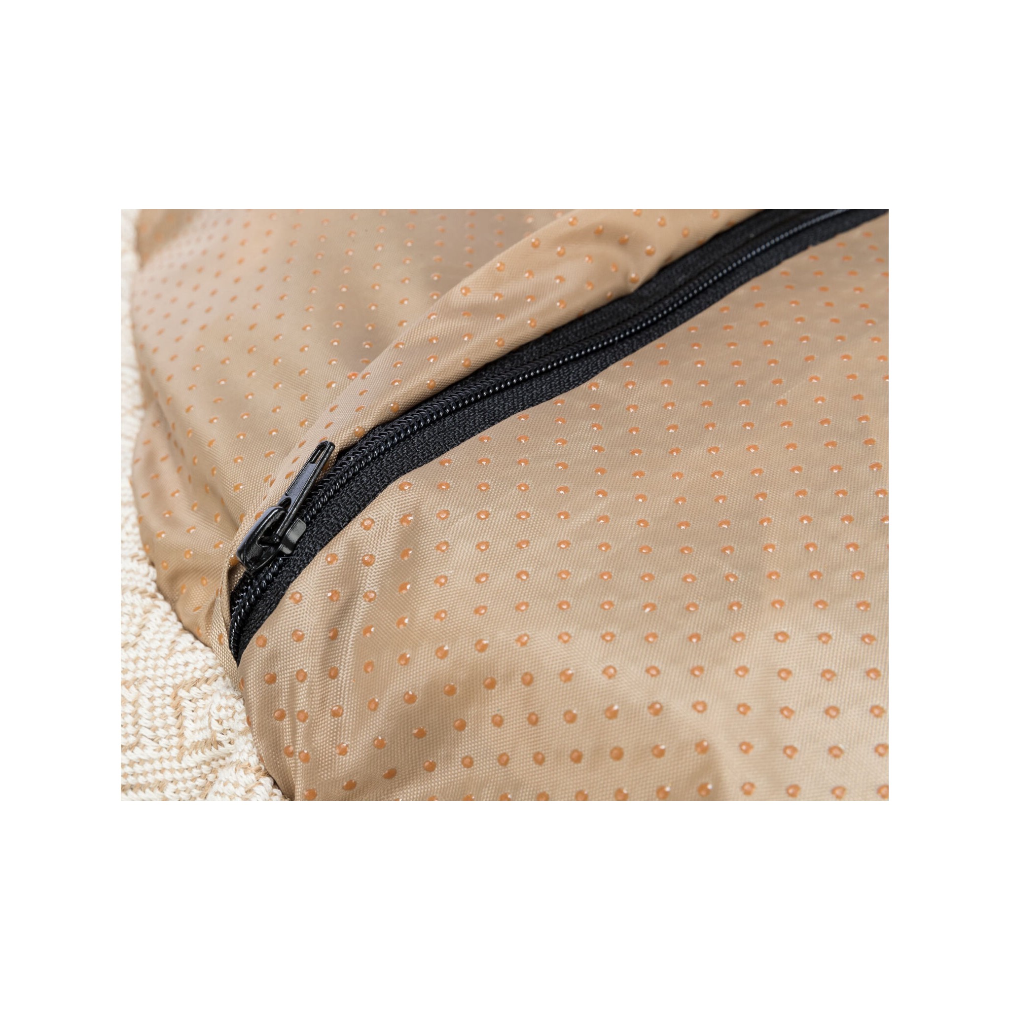 Legowisko Boho to wyjątkowe legowisko dla psów, które zapewni im wygodę i komfortowy odpoczynek. Wykonane z wysokiej jakości tkaniny i pluszu, z wypełnieniem z flauszu poliestrowego, gwarantuje miękkie i przyjemne miejsce do spania. Legowisko wyposażone jest w mocno przymocowaną poduszkę oraz zdejmowane pokrycie, co ułatwia jego utrzymanie w czystości. Antypoślizgowa podstawa zapewnia stabilność legowiska, a jednocześnie chroni podłogę przed zadrapaniami.