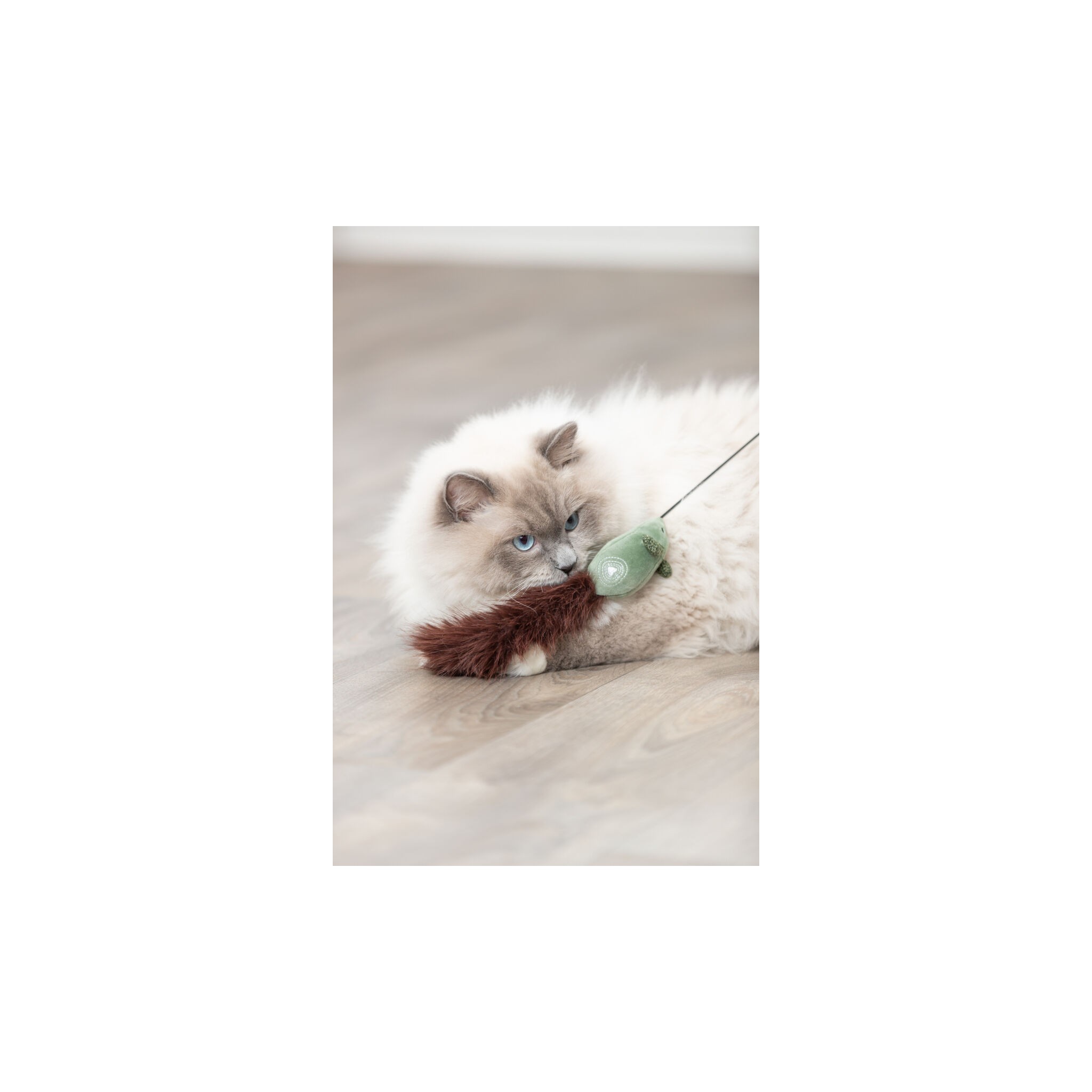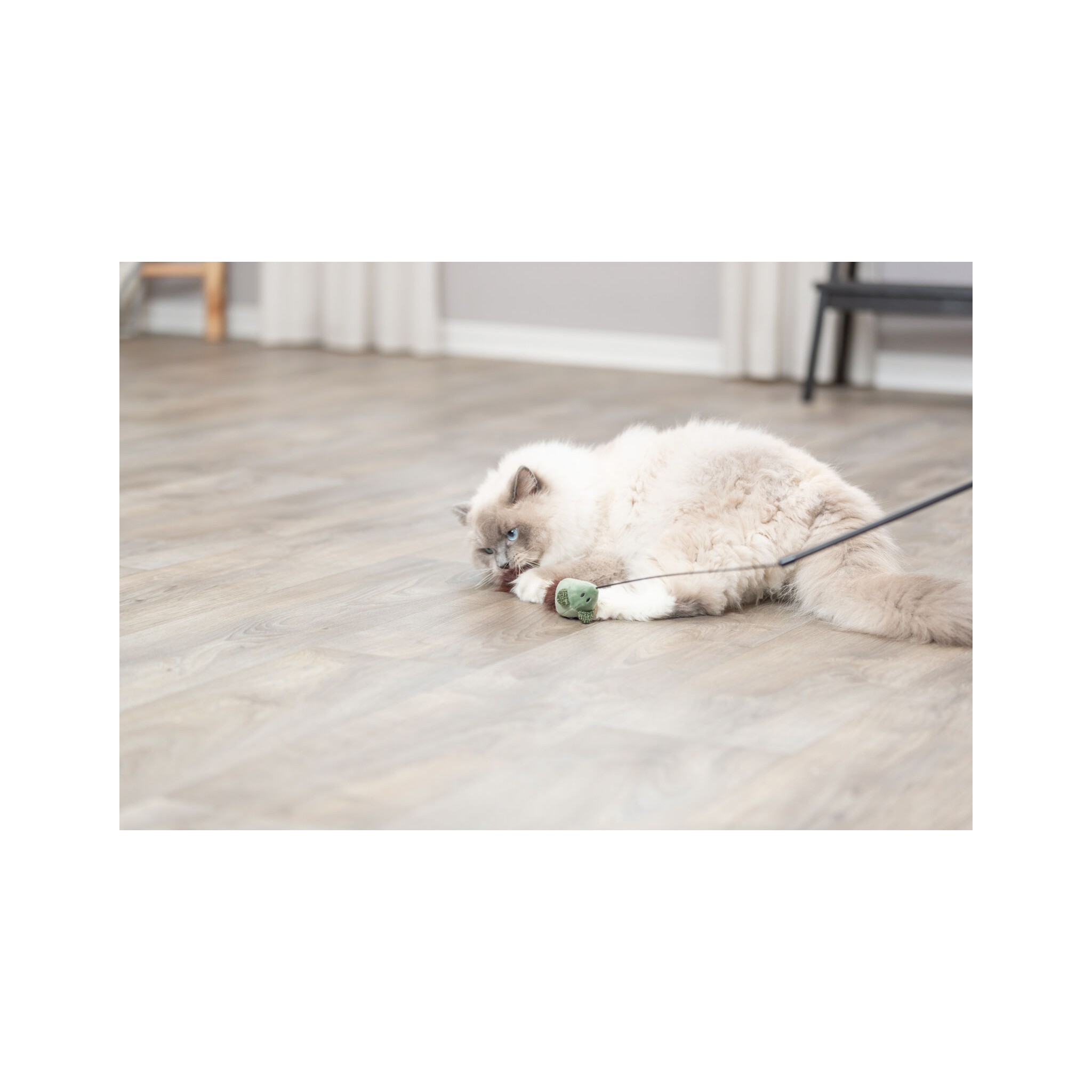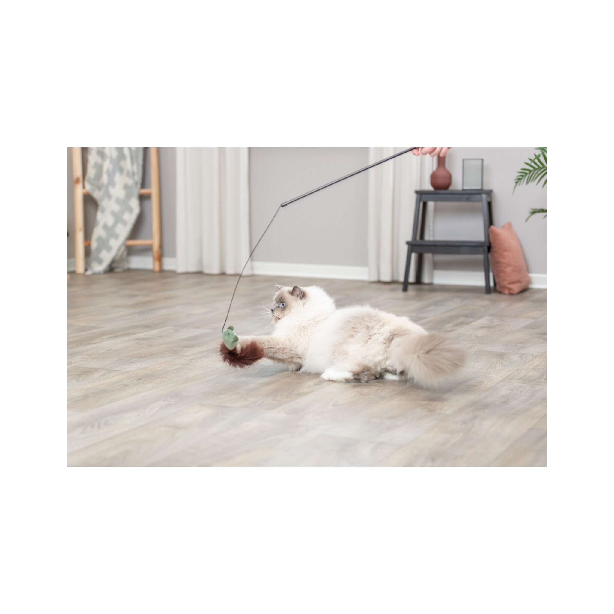 Zabawka dla kotów "Wędka z myszką" to ekscytująca interaktywna zabawa, która pobudza instynkty łowieckie Twojego pupila. Długa, giętka wędka wykonana z trwałego materiału plastikowego zakończona jest pluszową myszką, imitującą prawdziwą zdobycz. Myszka wykonana z miękkiego poliestru, jest nie tylko atrakcyjnym celem do łapania, ale także bezpieczna dla kocich zębów i pazurów. Dzięki tej zabawce możesz spędzać aktywny czas ze swoim kotem, umacniając waszą relację.