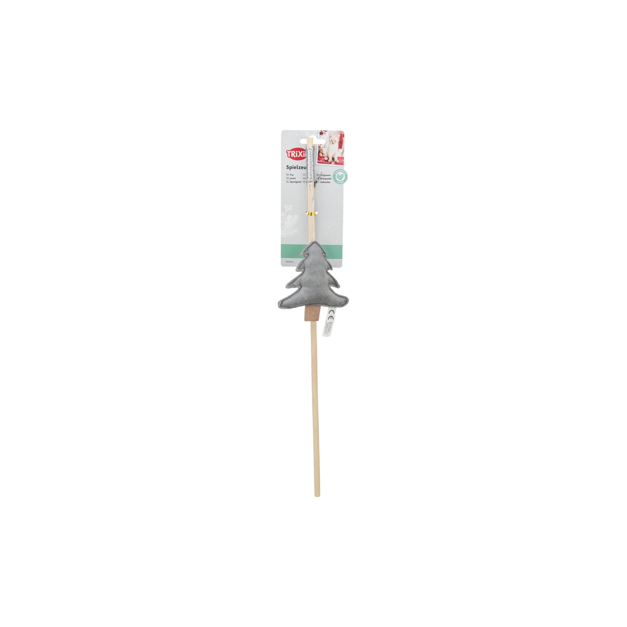 Wędka Choinka wykonana z materiału (poliester) oraz drewna, idealna do zabawy z kotem.
