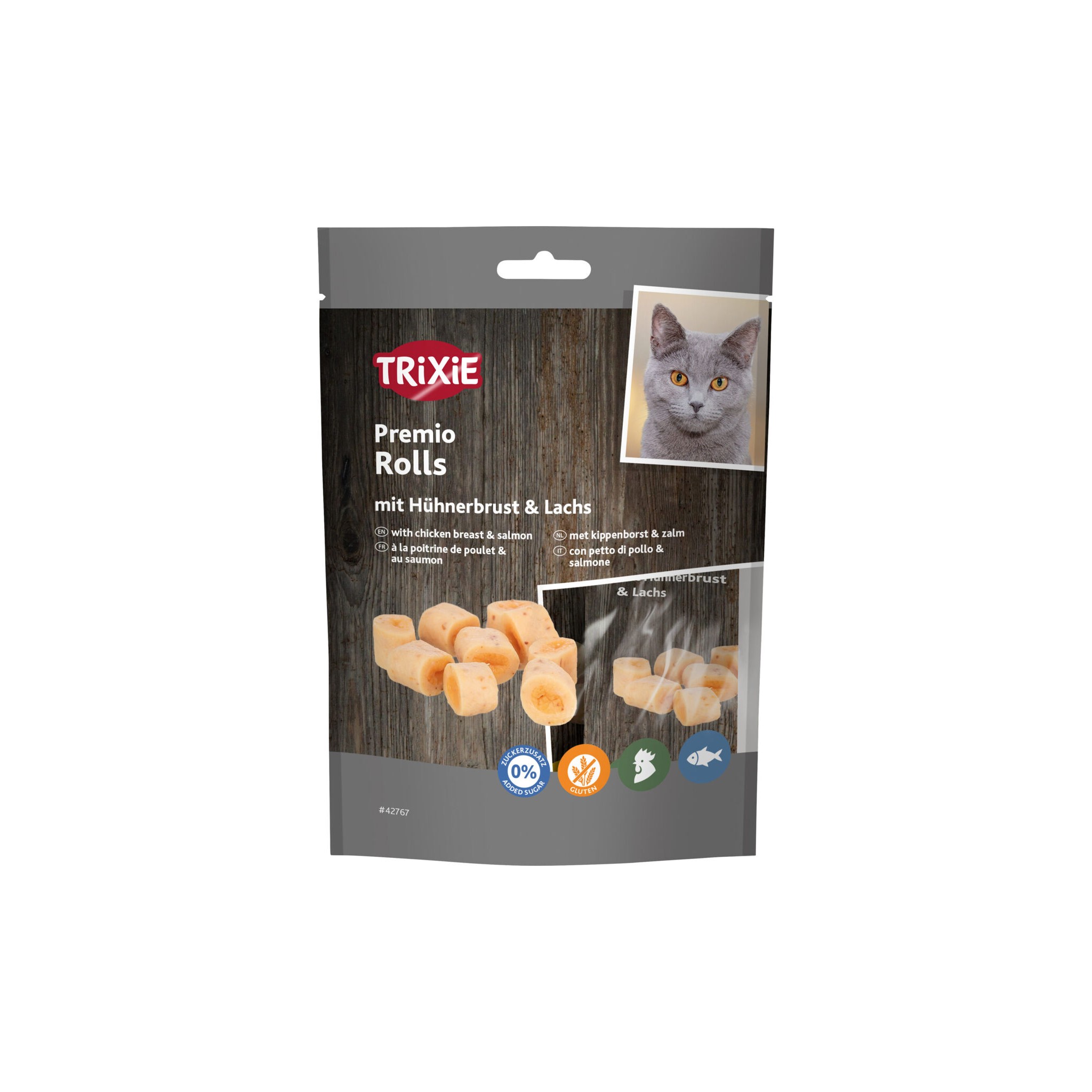 Skład: piersi z kurczaka (72 %), łosoś (15 %), tuńczyk, skrobia ziemniaczana, białko arachidowe, drożdże, składniki mineralne | bezglutenowa formuła | bez dodatku cukru | Przechowywać w chłodnym i suchym miejscu.