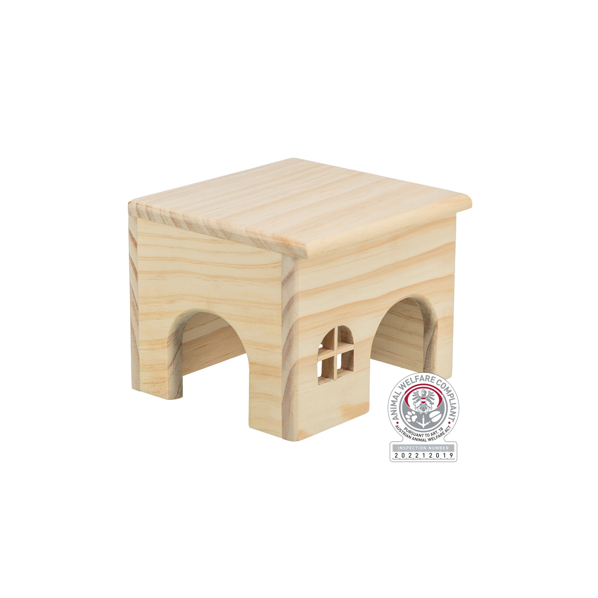 Domek drewniany to idealne miejsce dla krolików i gryzoni do zabawy i odpoczynku. Wykonany z drewna sosnowego, bez użycia zawiasów i gwoździ, zapewnia bezpieczeństwo i wygodę zwierząt. Posiada także specjalne miejsce do obserwacji na dachu, co umożliwia zwierzętom obserwowanie otoczenia. Dodatkowo spełnia wymogi ustawy o ochronie zwierząt, w tym przepisy dotyczące minimalnych wymiarów dla klatek i domków dla zwierząt.