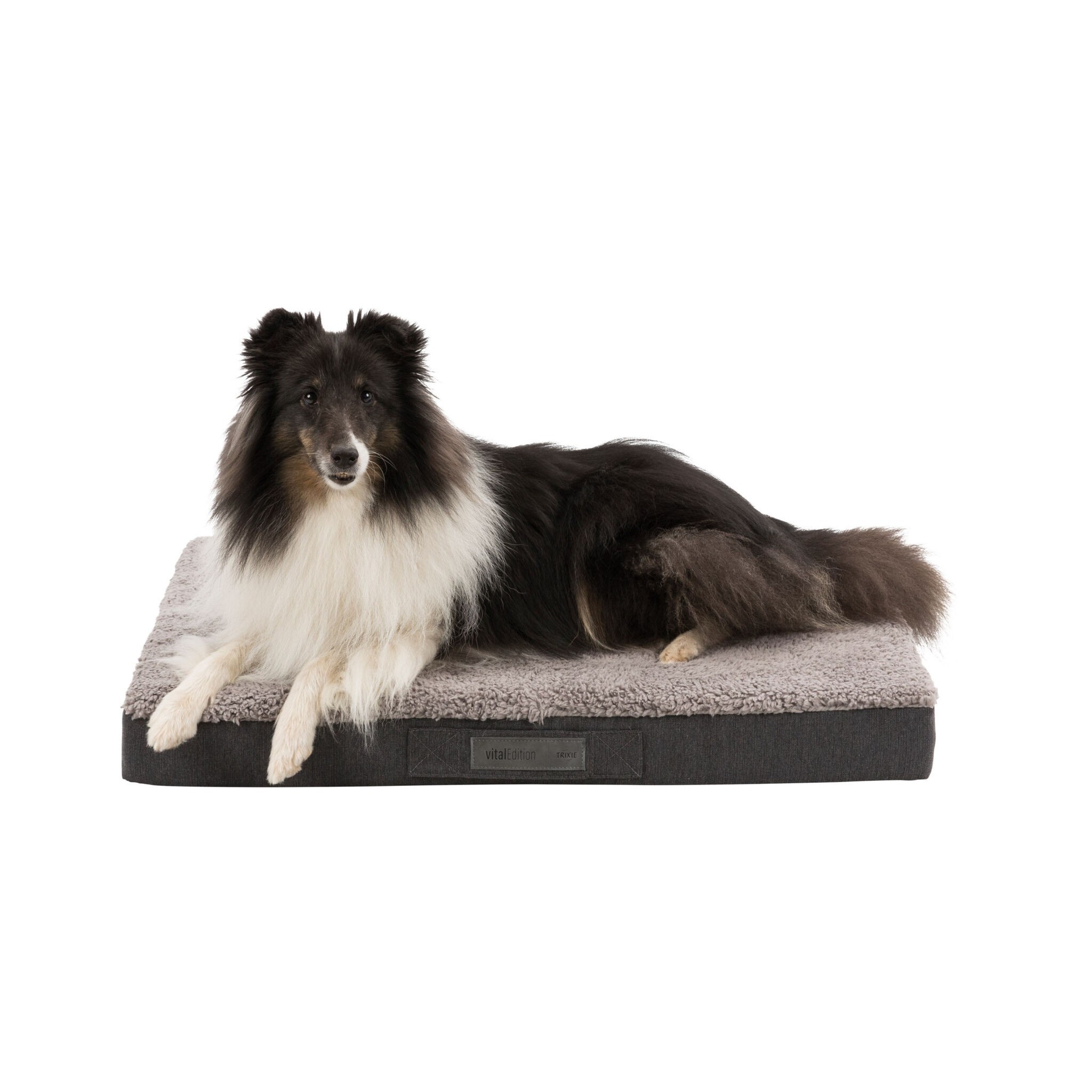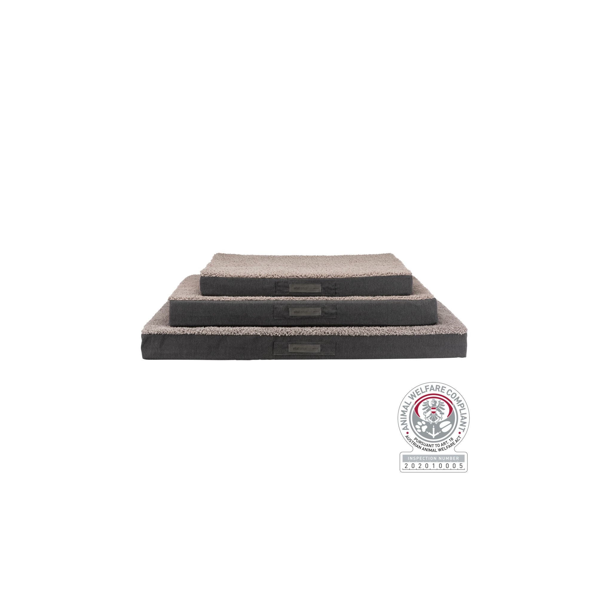 Materac ortopedyczny Vital Bendson to idealne miejsce do odpoczynku dla Twojego psa. Posiada on system 2-warstwowy z pianką komfortową i pianką wiskoelastyczną o grubości 8–10 cm, co zapewnia maksymalny komfort i efekt pamięci. Pokrycie jest zdejmowane, co ułatwia jego utrzymanie w czystości, a antypoślizgowa podstawa zapewnia stabilność. Materiały użyte do produkcji, takie jak plusz, tkanina oraz obicie z poliestru, gwarantują wygodę i trwałość. Materac jest również zgodny z ustawą o ochronie zwierząt oraz normą OEKO-TEX® STANDARD 100. Wyprodukowano w UE.
