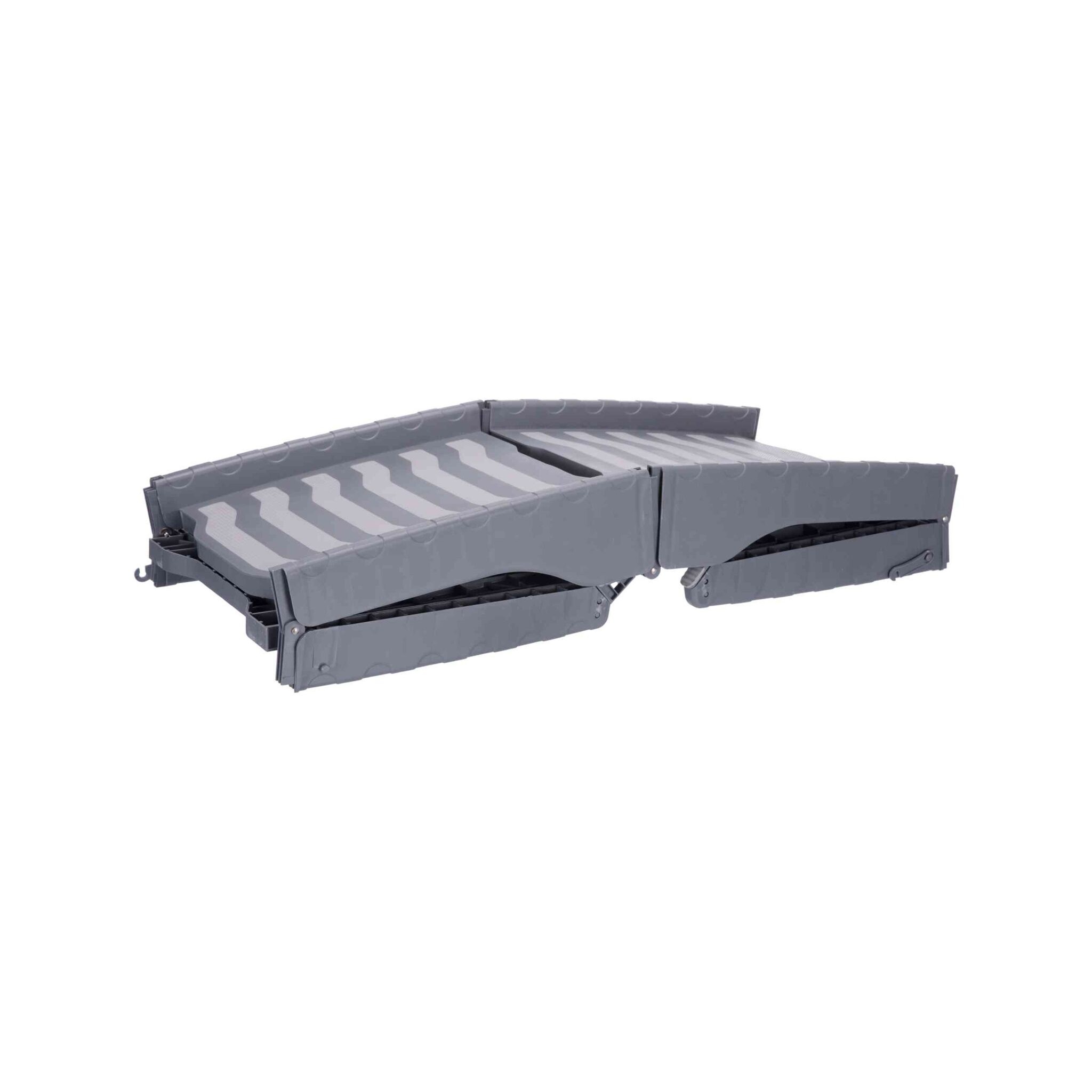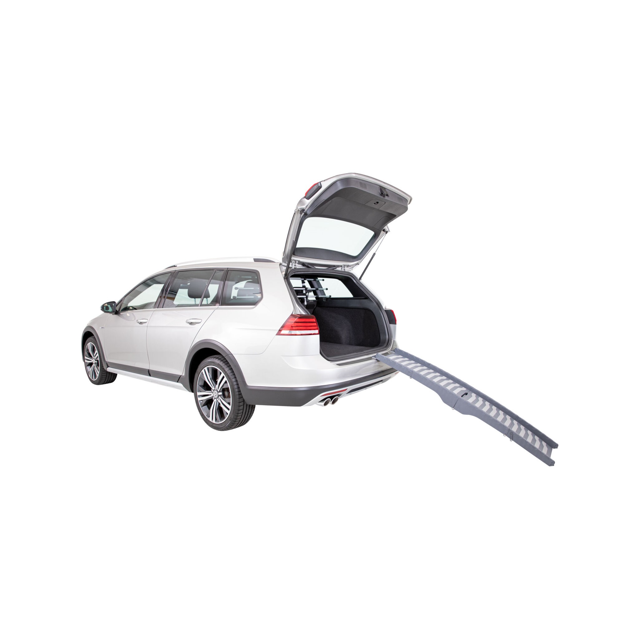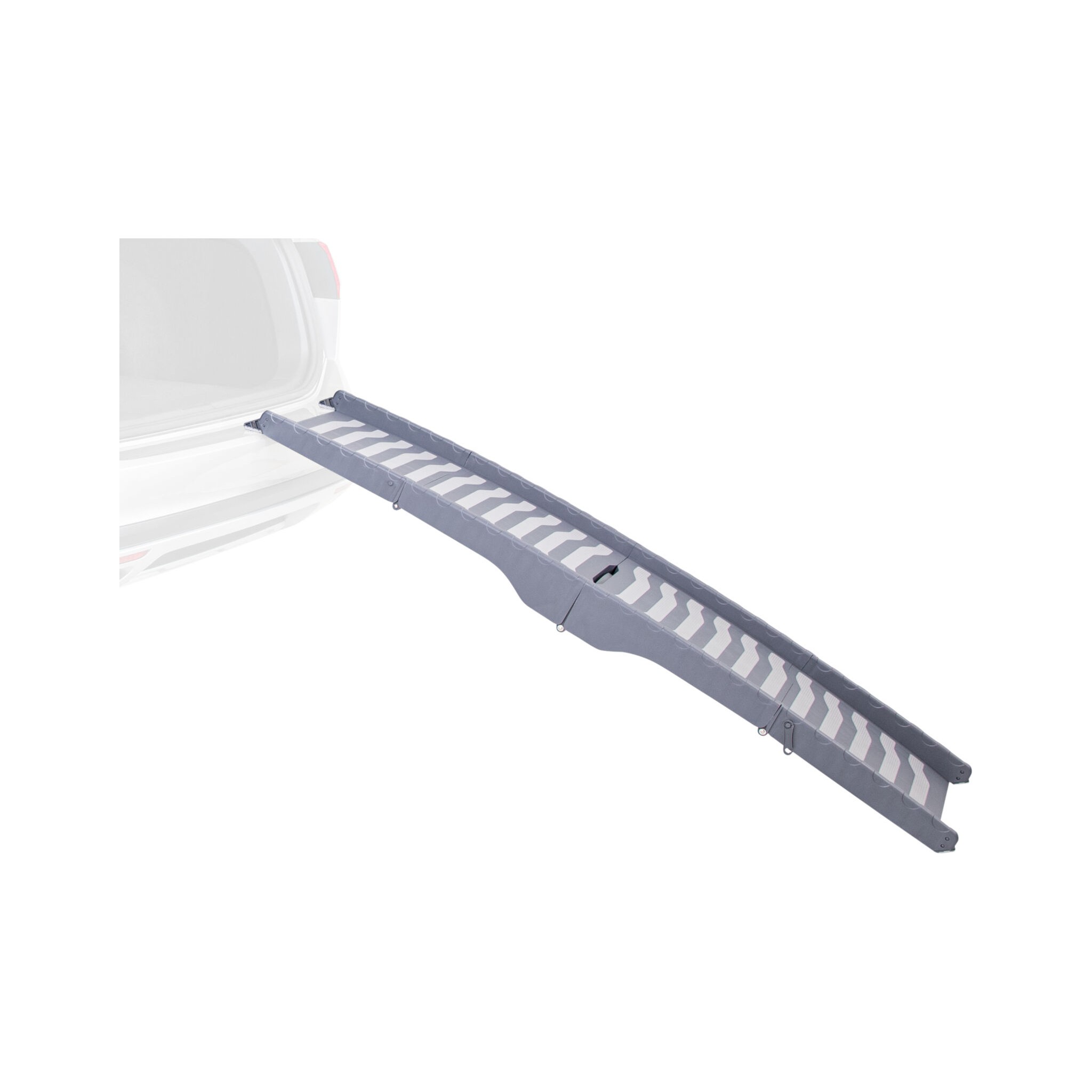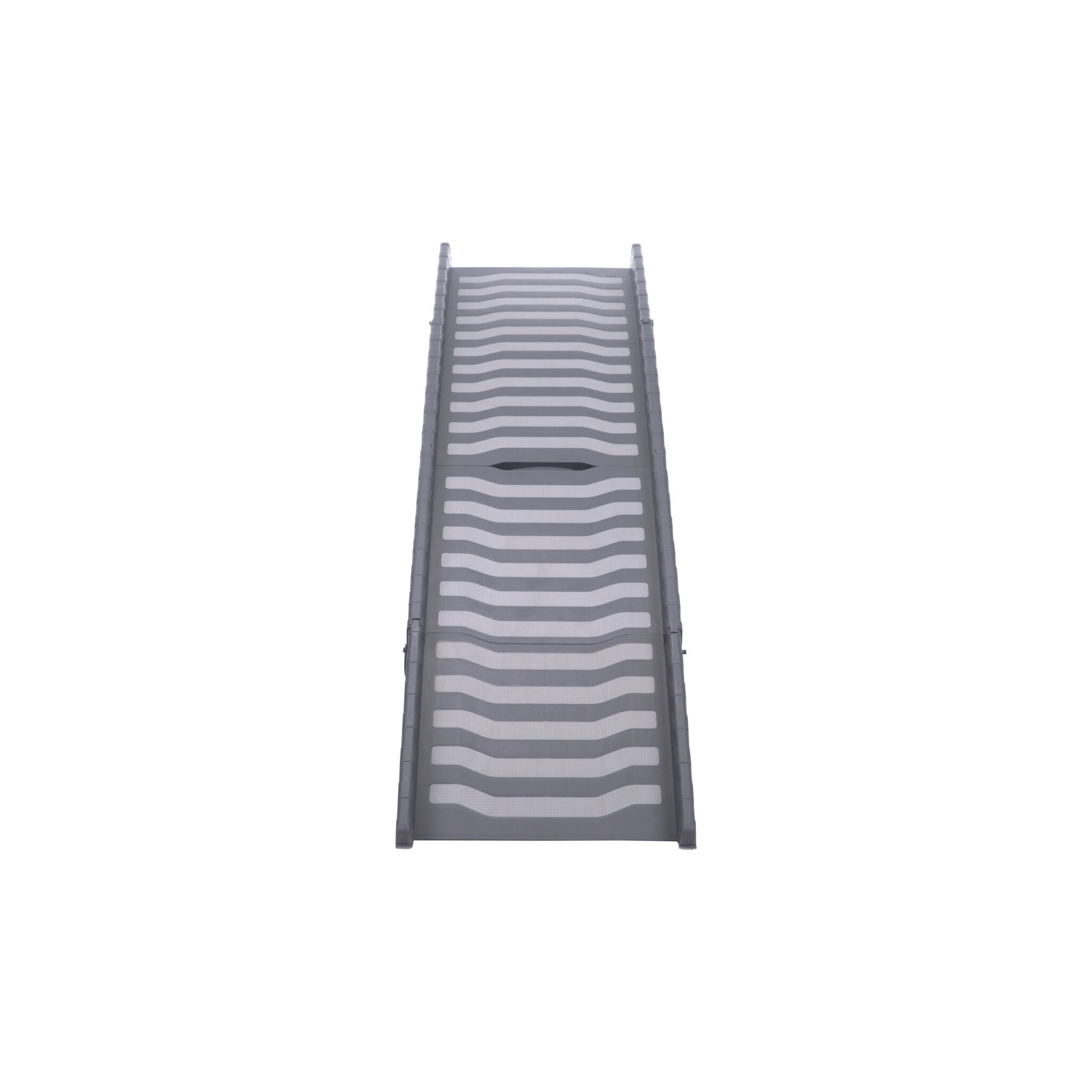 Rampa składana potrójnie wykonana z plastiku i TPR jest idealnym rozwiązaniem dla właścicieli psów podróżujących w samochodzie. Jej antypoślizgowa powierzchnia zapewnia bezpieczne bieganie nawet w mokrych warunkach, a po złożeniu zajmuje niewiele miejsca. Dodatkowo wyposażona jest w antypoślizgowe gumowe nóżki oraz praktyczną rączkę ułatwiającą transport.