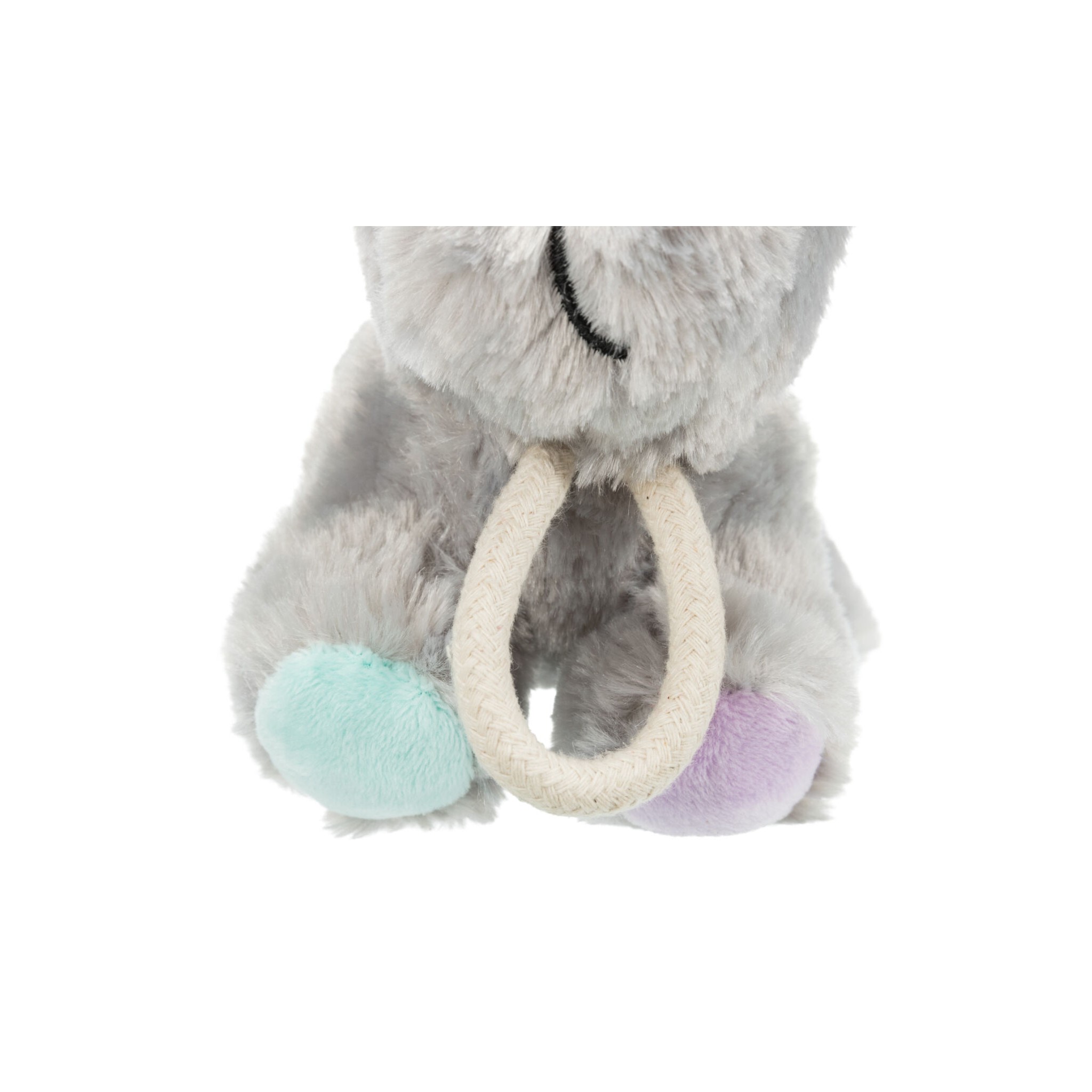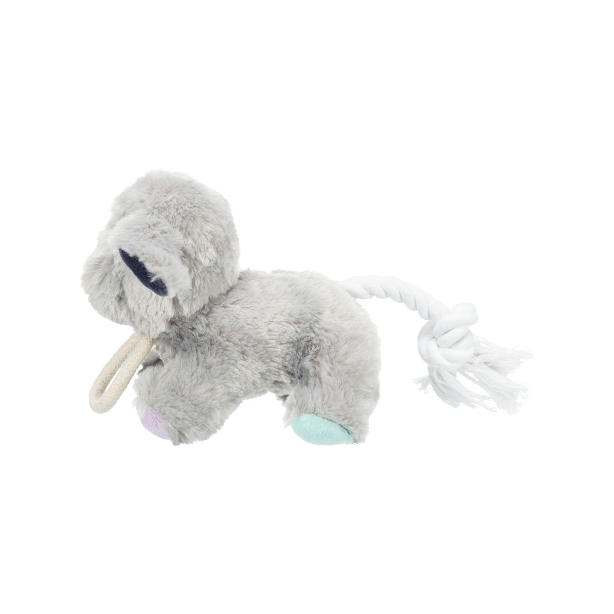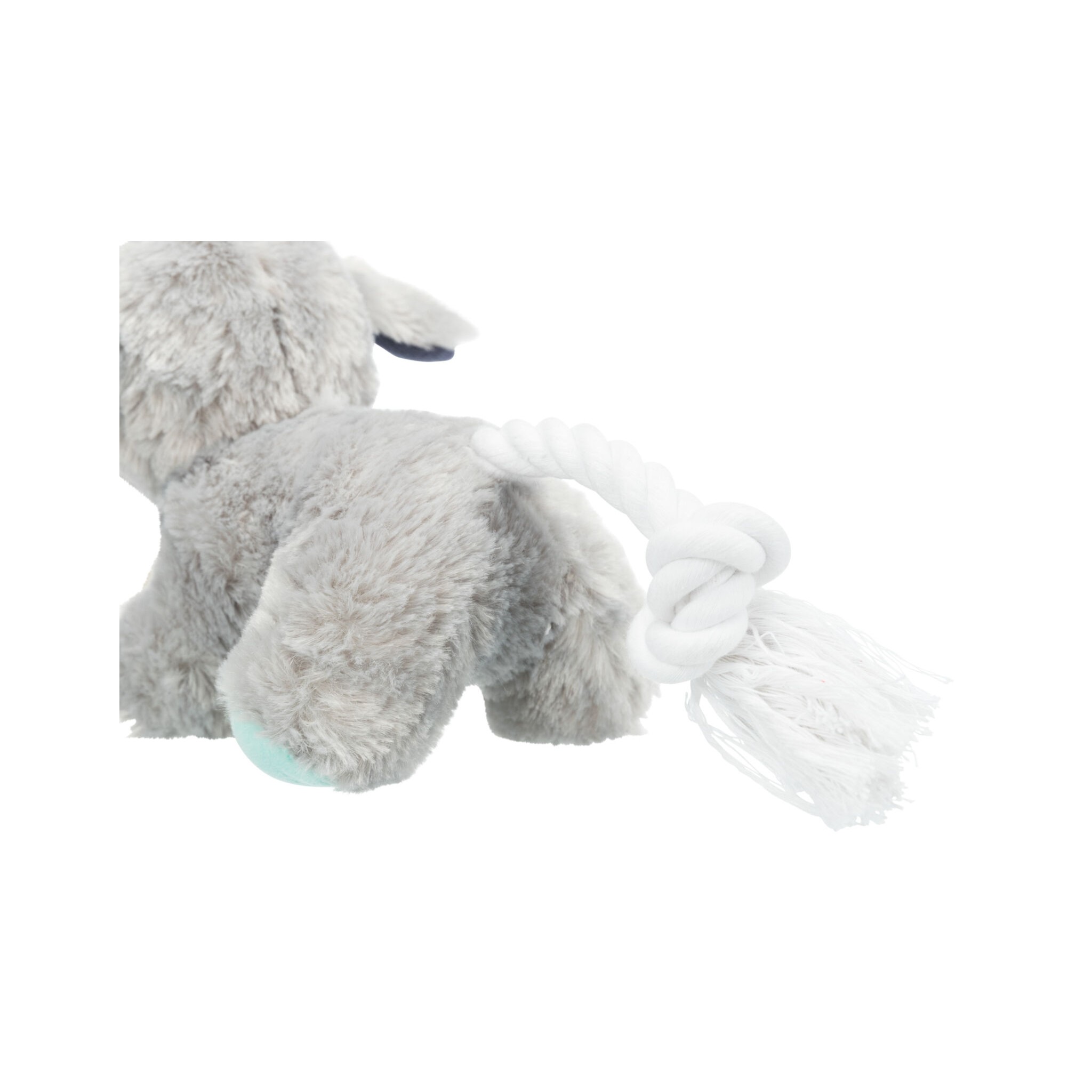 Zabawka dla psa wykonana z pluszu, przymocowana do sznurka z poliestru. Dodatkowo wydaje dźwięki, co dodatkowo stymuluje czworonoga do zabawy.