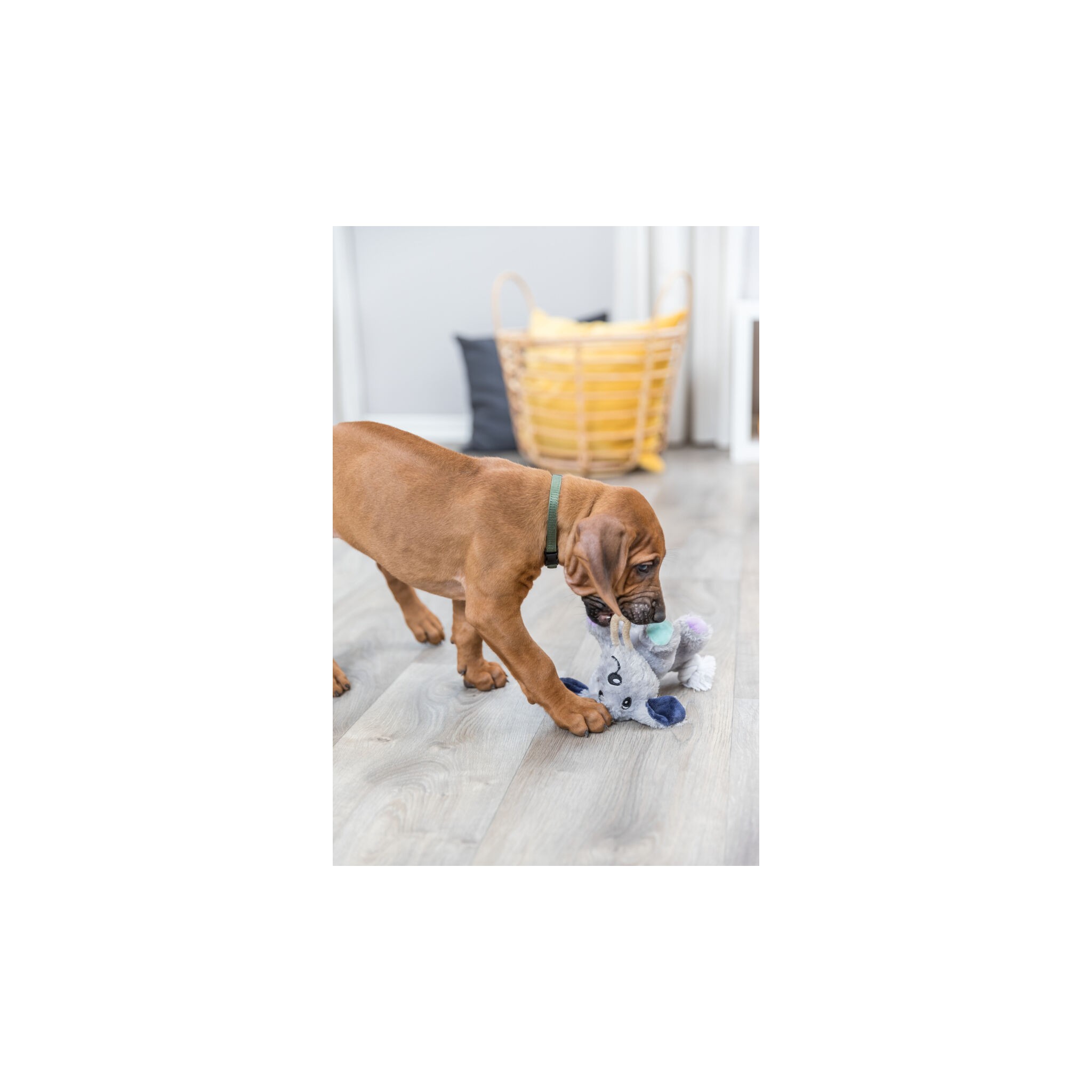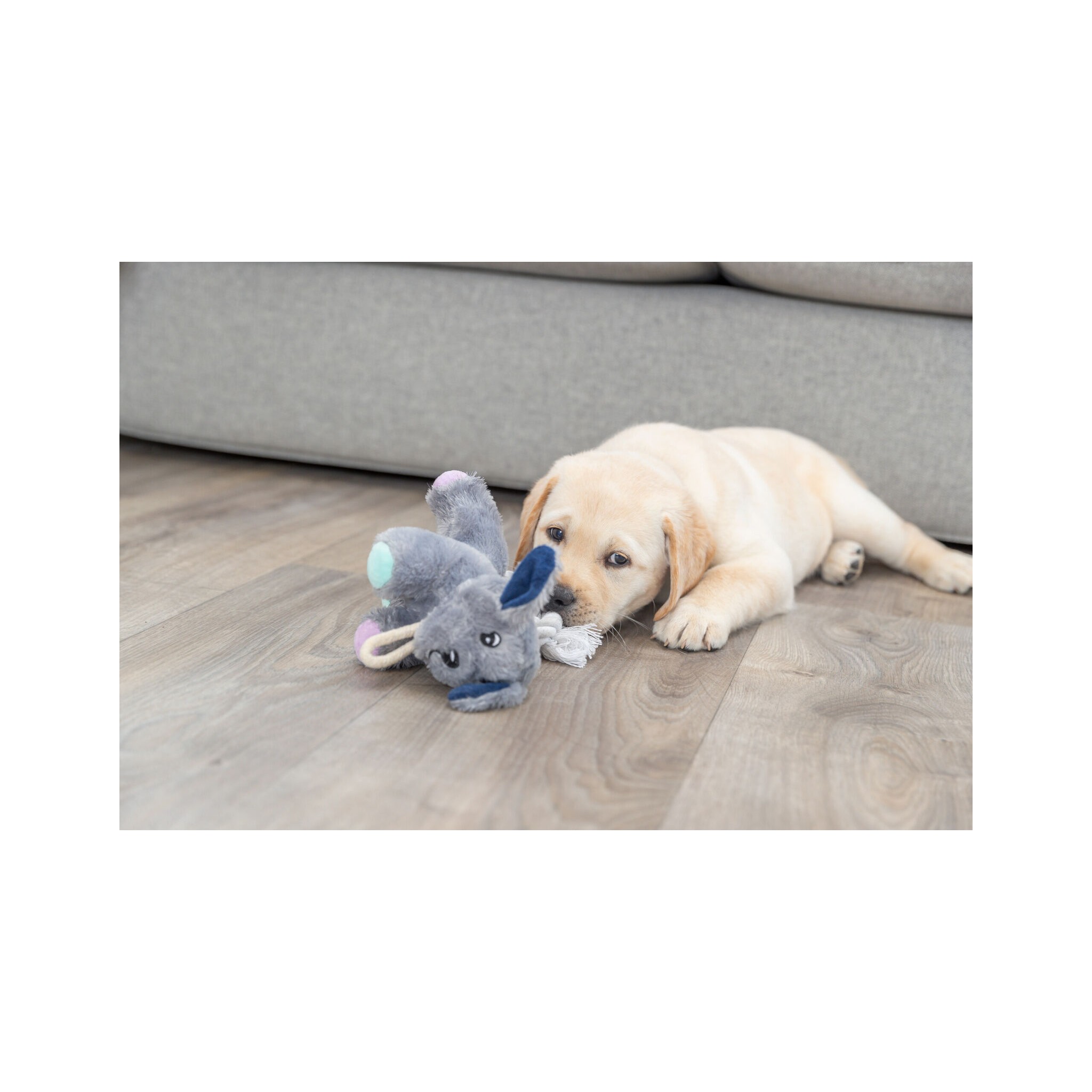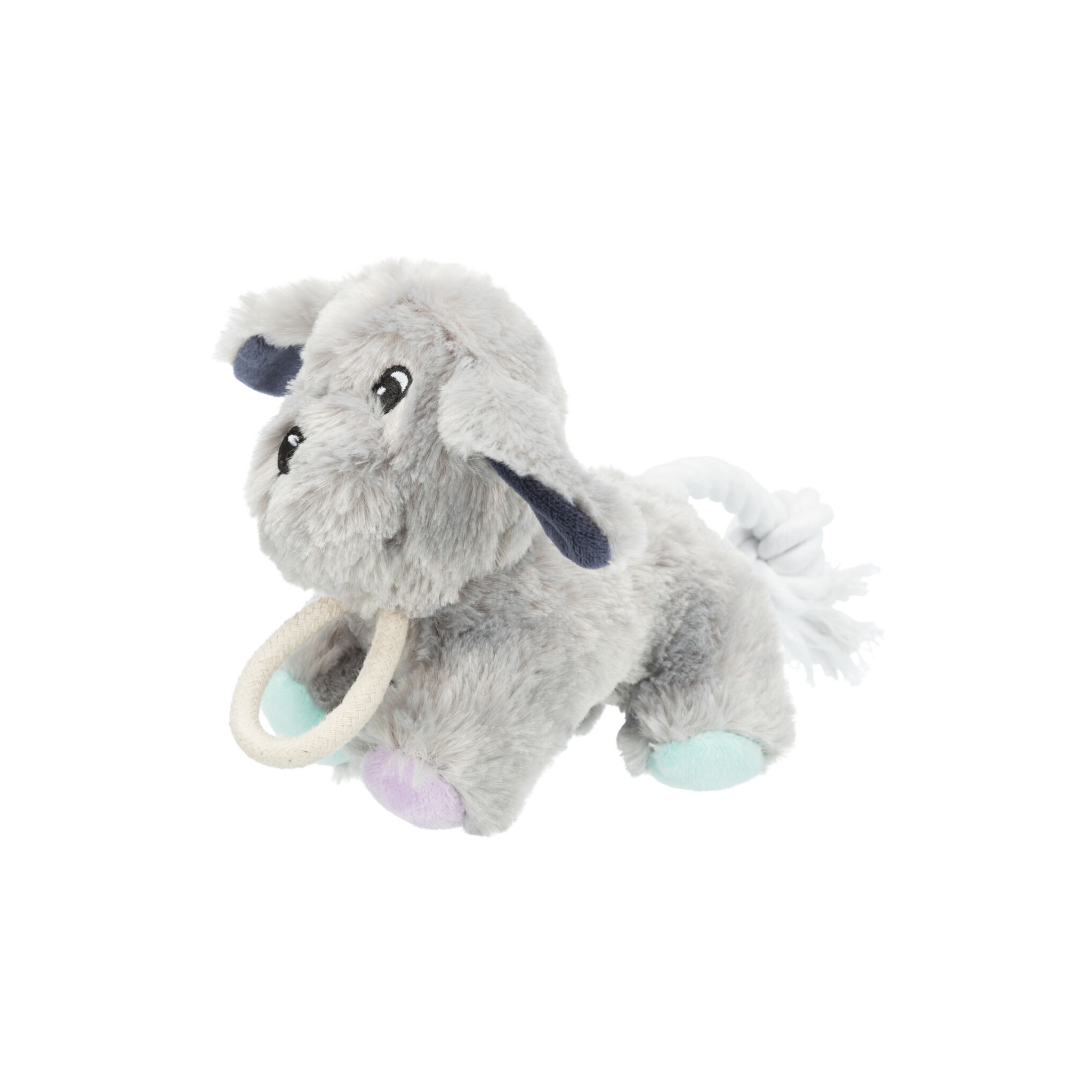 Zabawka dla psa wykonana z pluszu, przymocowana do sznurka z poliestru. Dodatkowo wydaje dźwięki, co dodatkowo stymuluje czworonoga do zabawy.