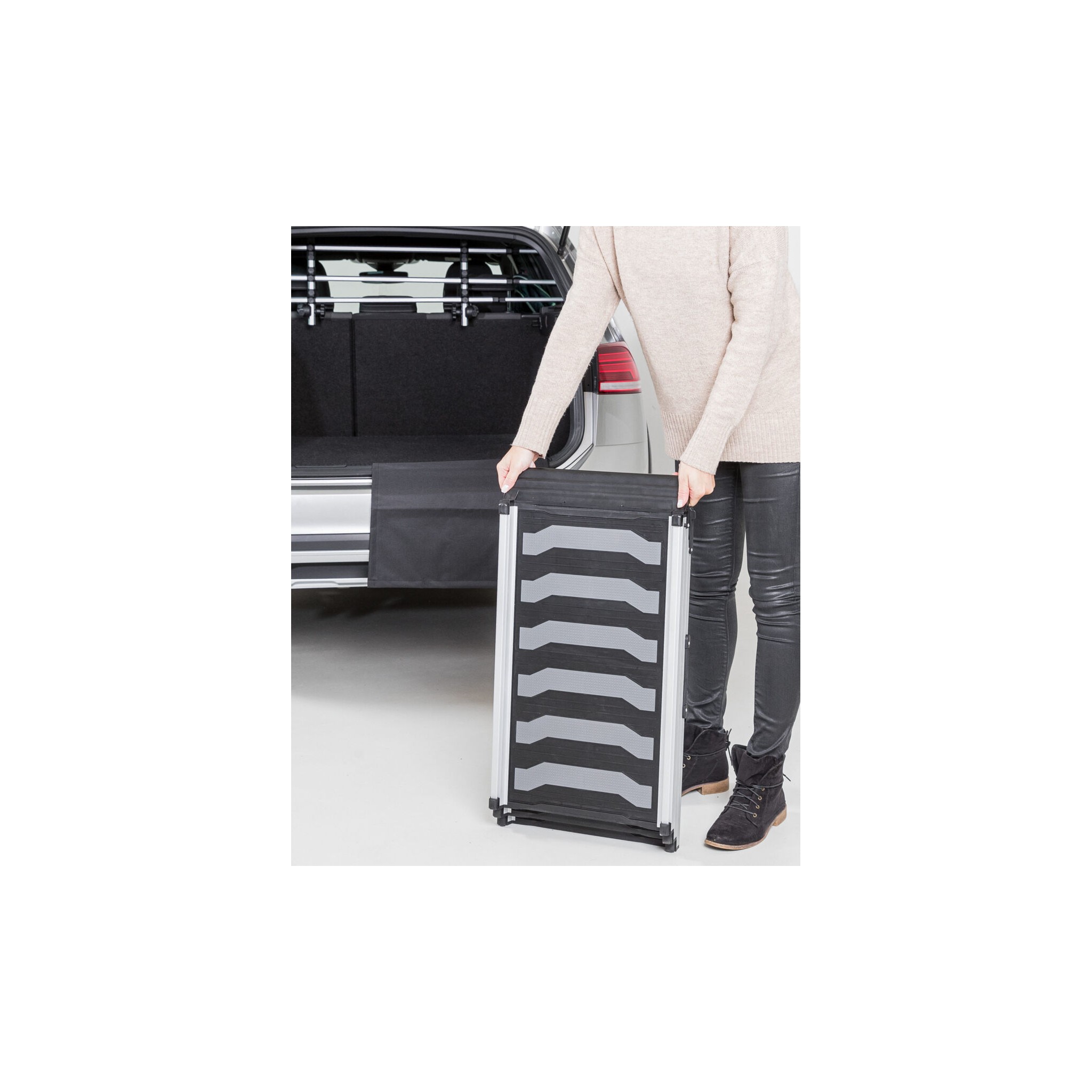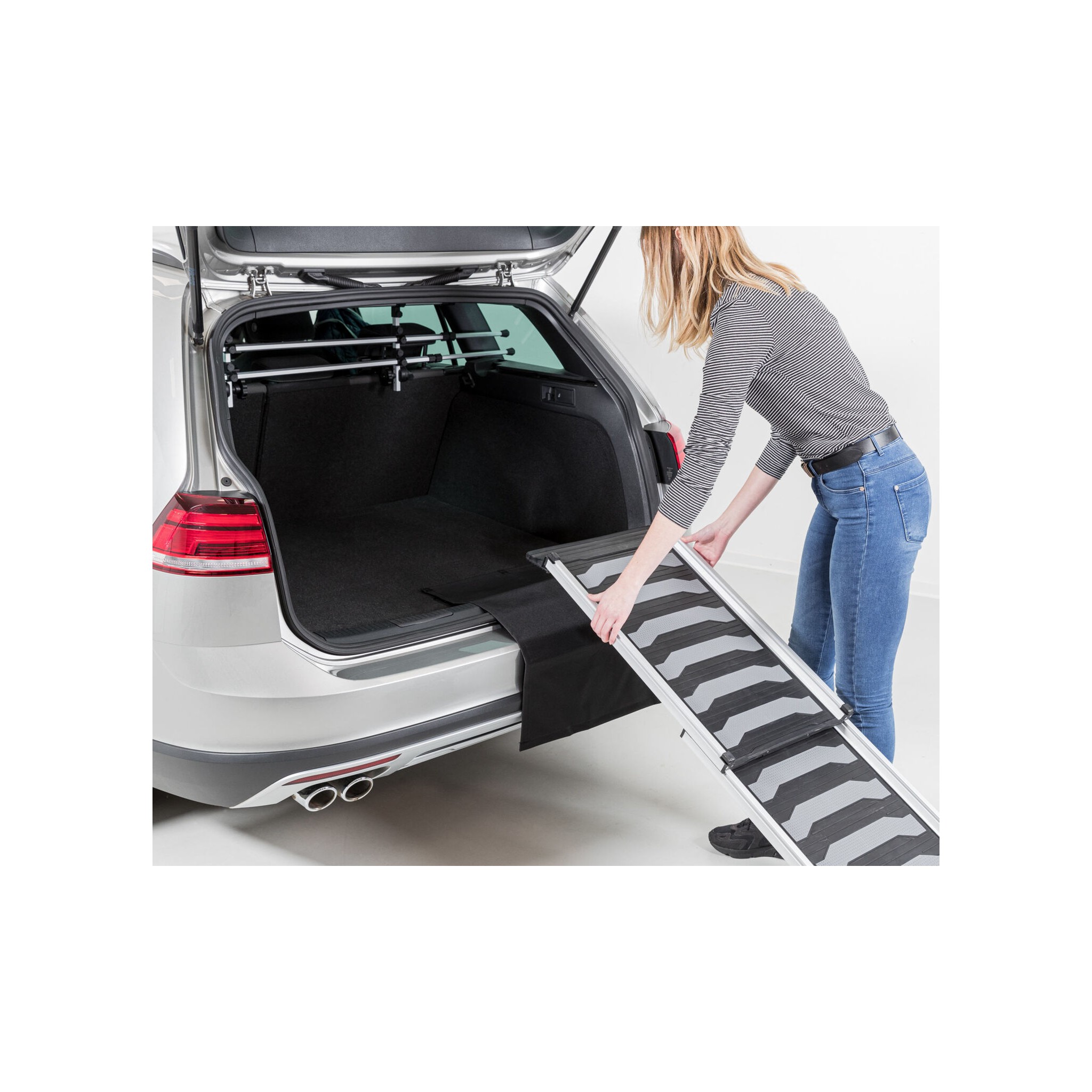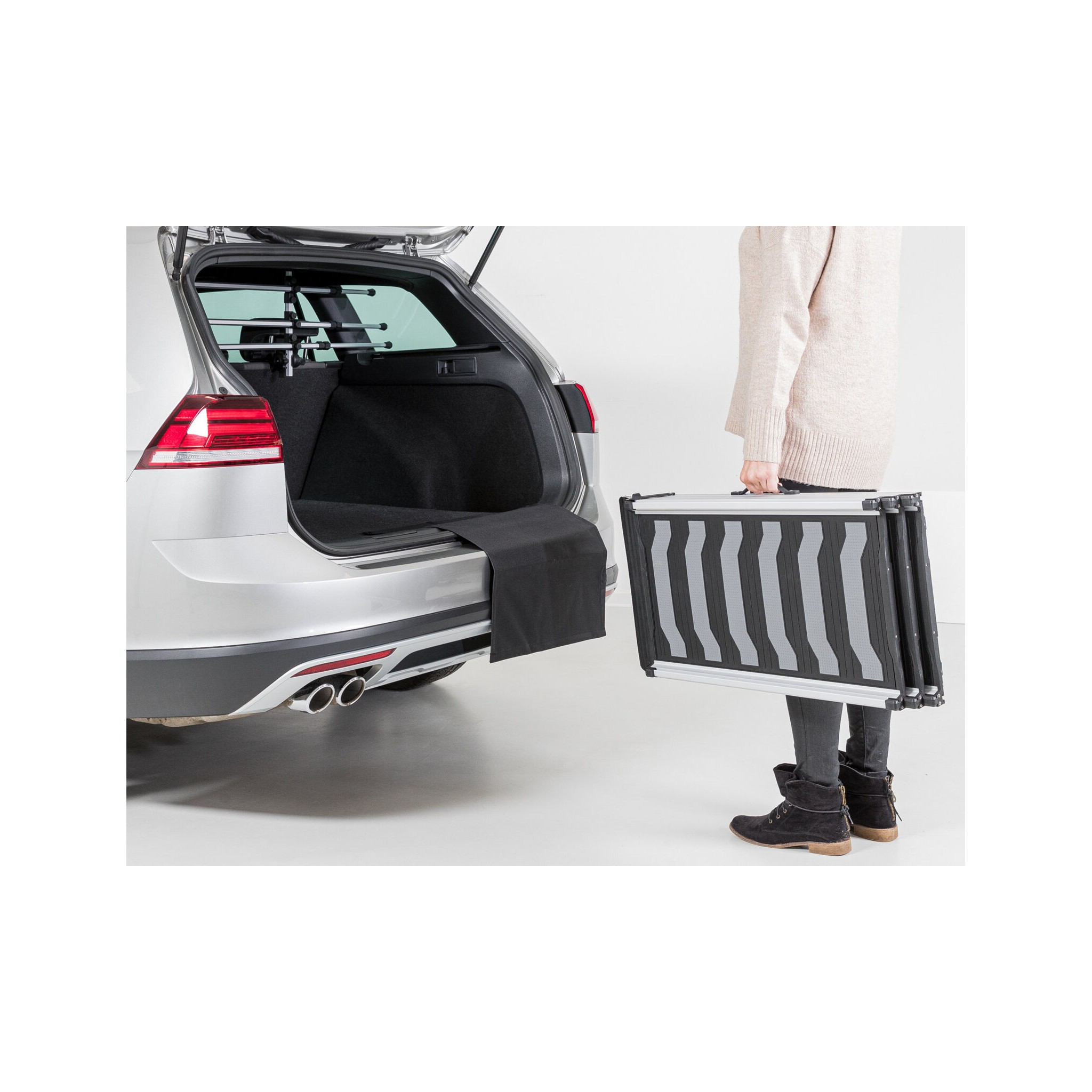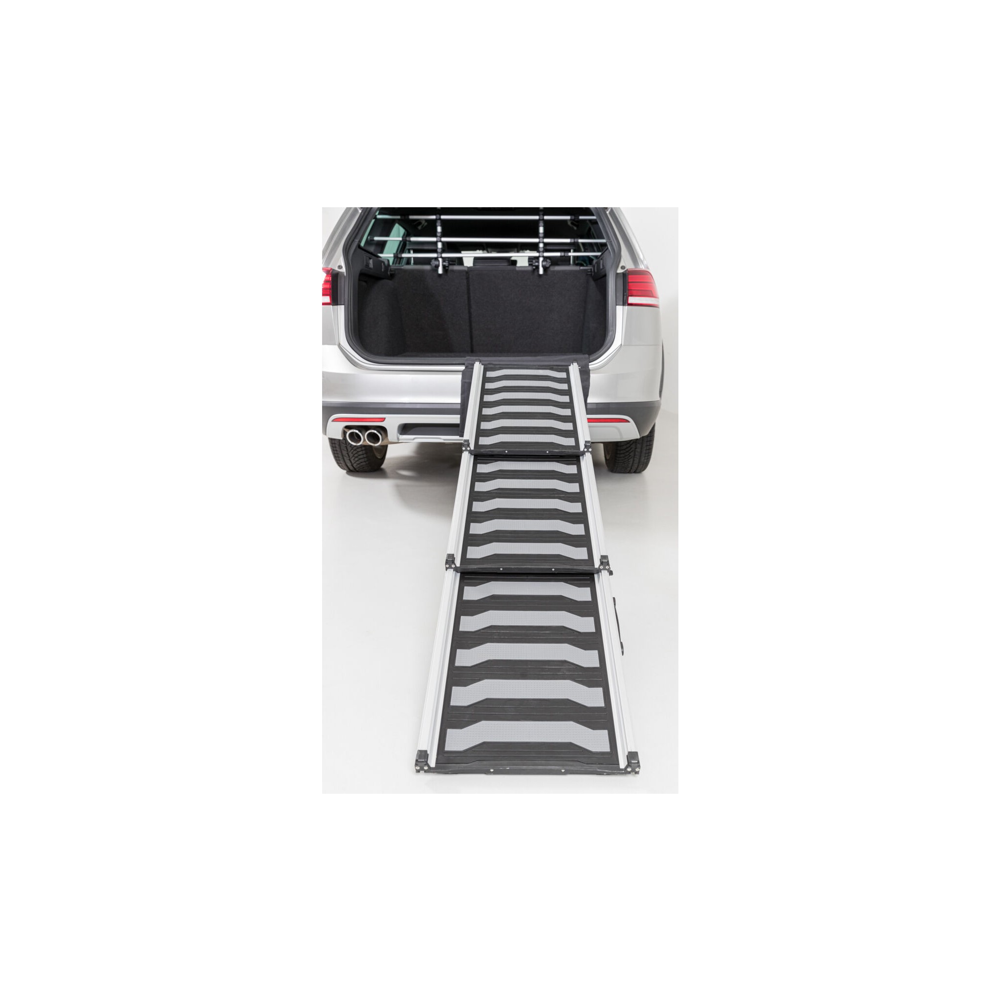 Rampa teleskopowa 3-Step to funkcjonalne i praktyczne narzędzie dla właścicieli psów podróżujących samochodem. Może być składana, co sprawia, że zajmuje niewiele miejsca. Dzięki antypoślizgowej powierzchni zapewnia bezpieczne bieganie nawet w mokrych warunkach, a pokrycie z gumy chroni zderzak przed uszkodzeniami. Dodatkową zaletą jest regulowana długość, która zapewnia wygodę w użytkowaniu.