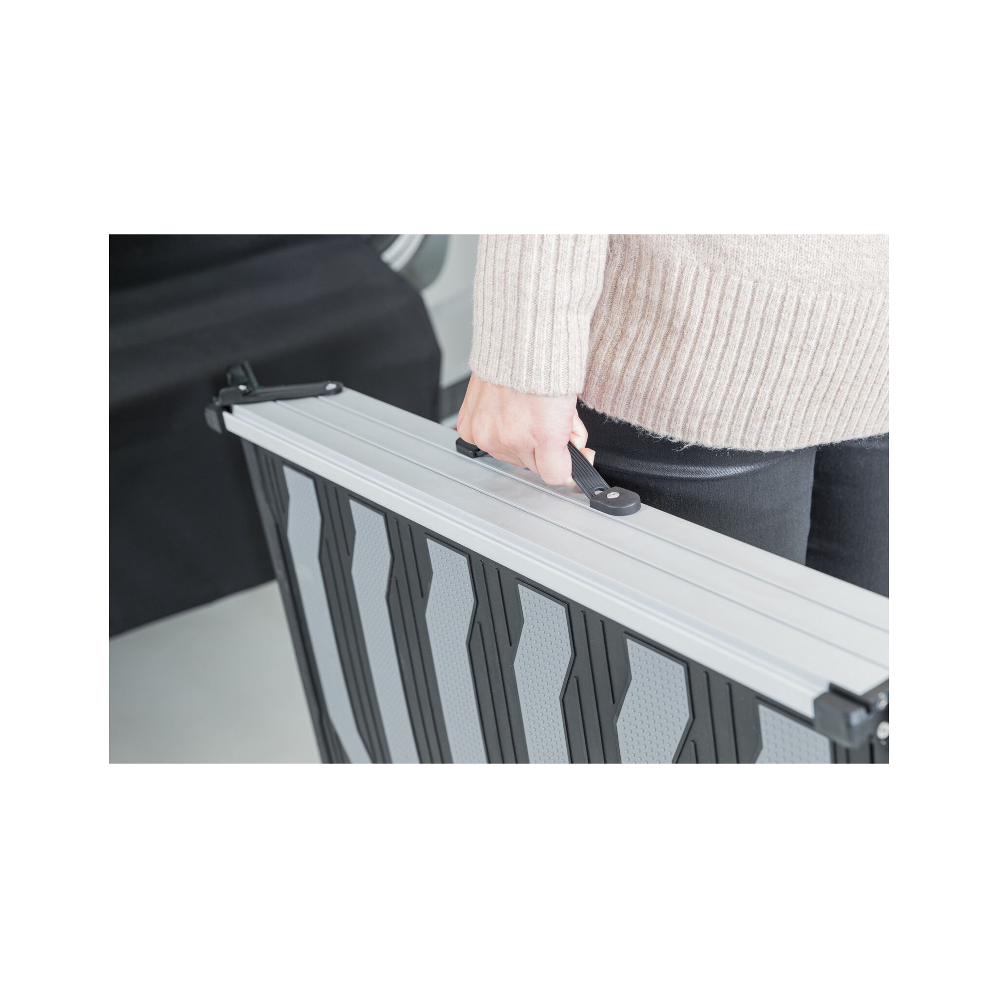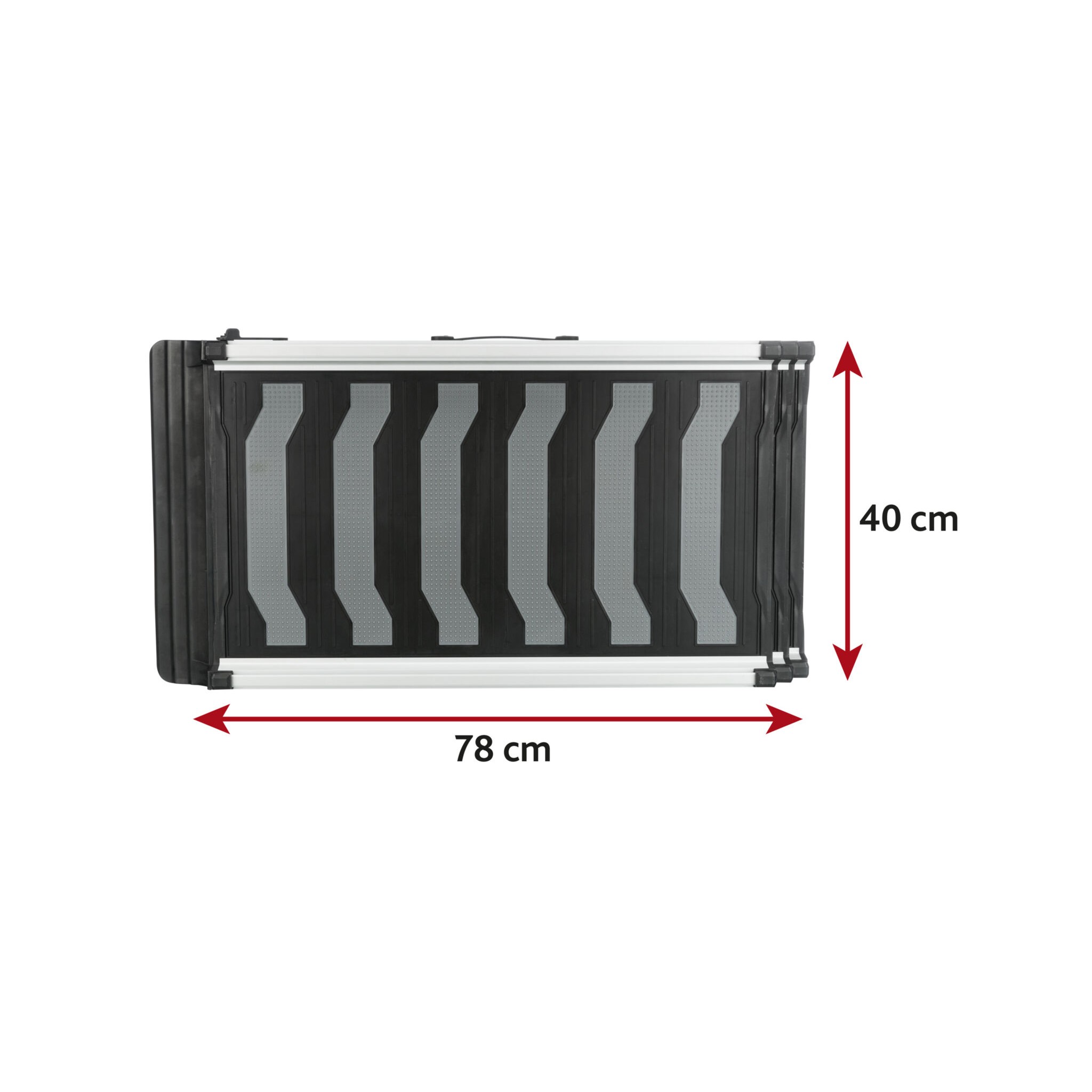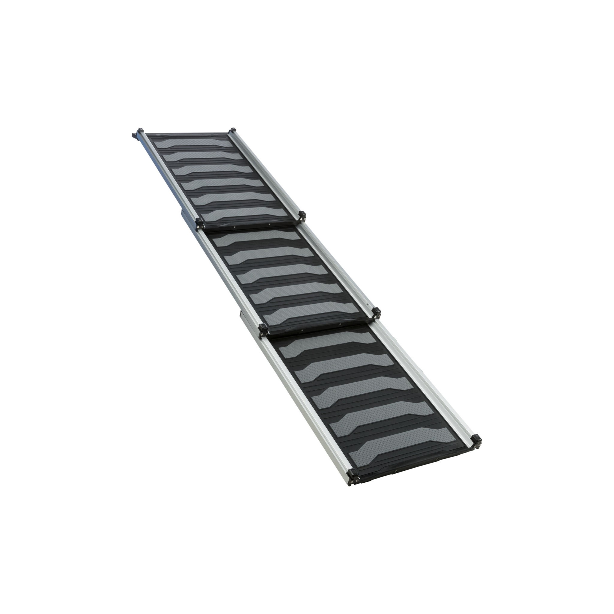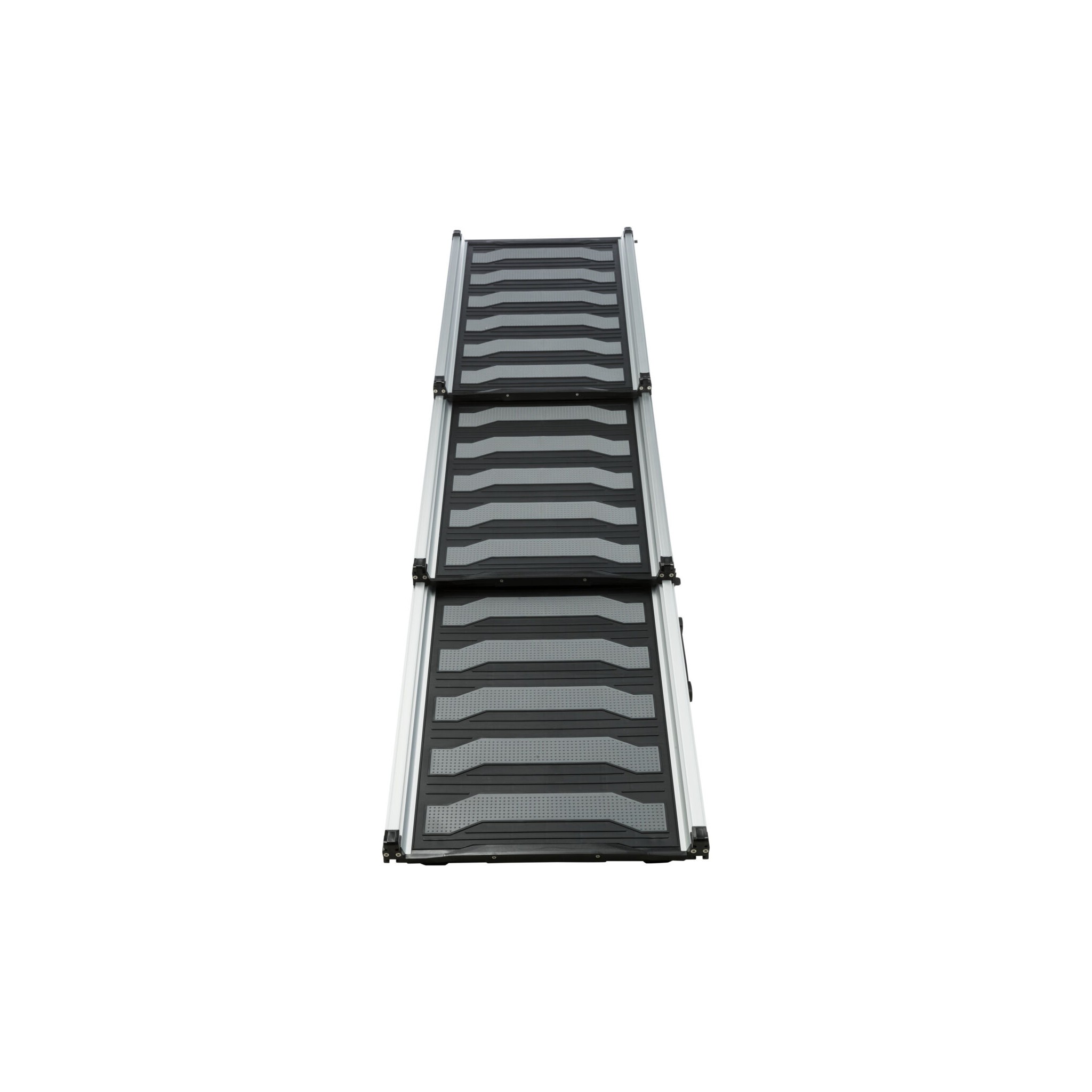 Rampa teleskopowa 3-Step to funkcjonalne i praktyczne narzędzie dla właścicieli psów podróżujących samochodem. Może być składana, co sprawia, że zajmuje niewiele miejsca. Dzięki antypoślizgowej powierzchni zapewnia bezpieczne bieganie nawet w mokrych warunkach, a pokrycie z gumy chroni zderzak przed uszkodzeniami. Dodatkową zaletą jest regulowana długość, która zapewnia wygodę w użytkowaniu.