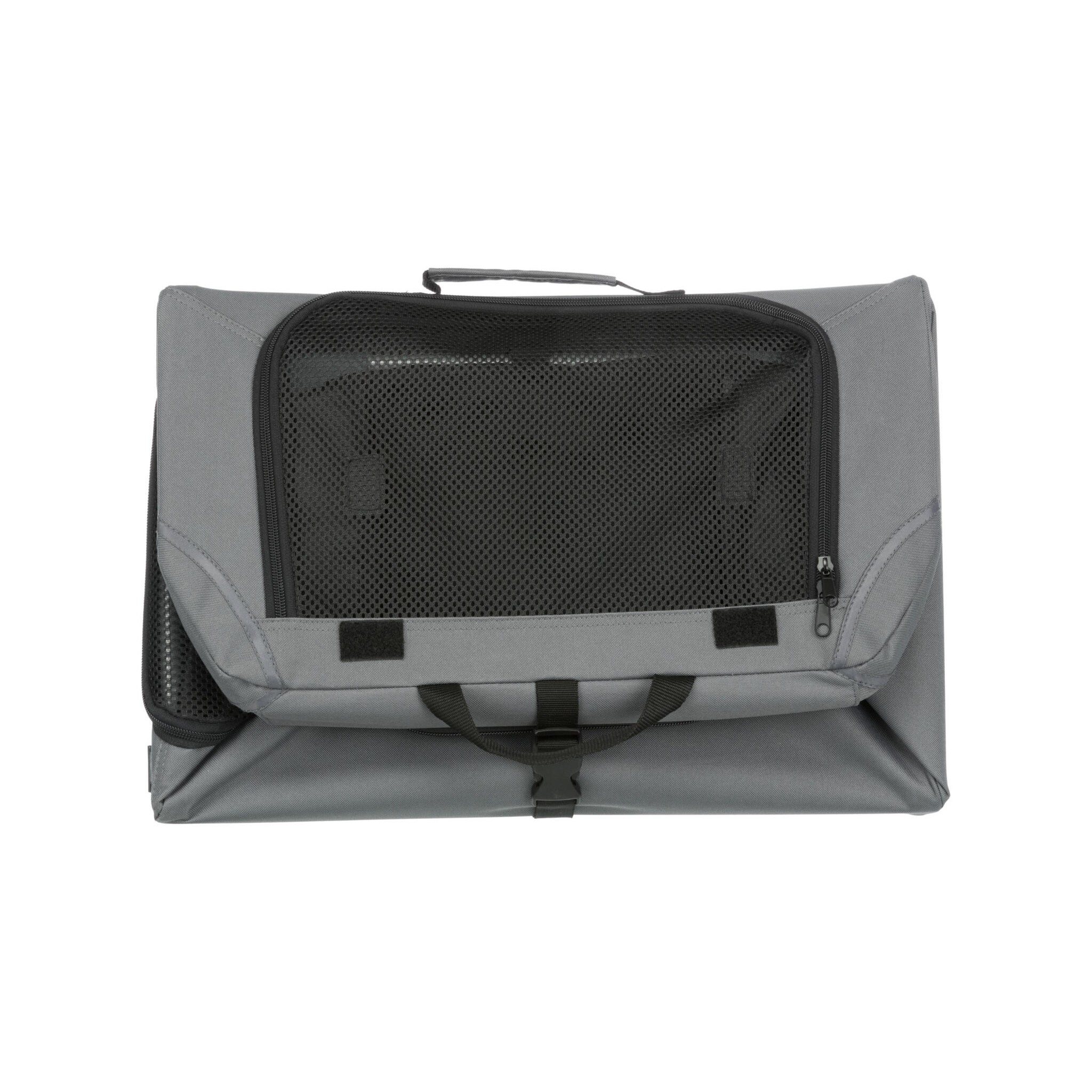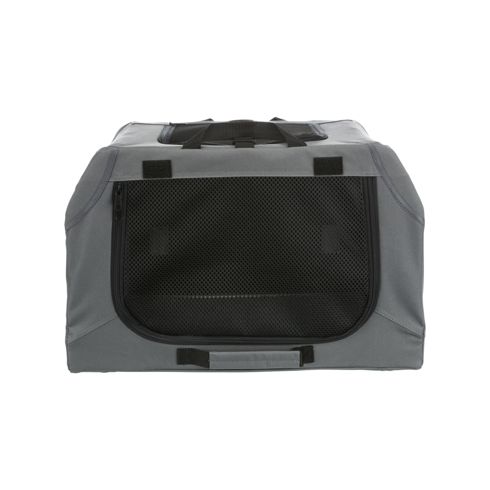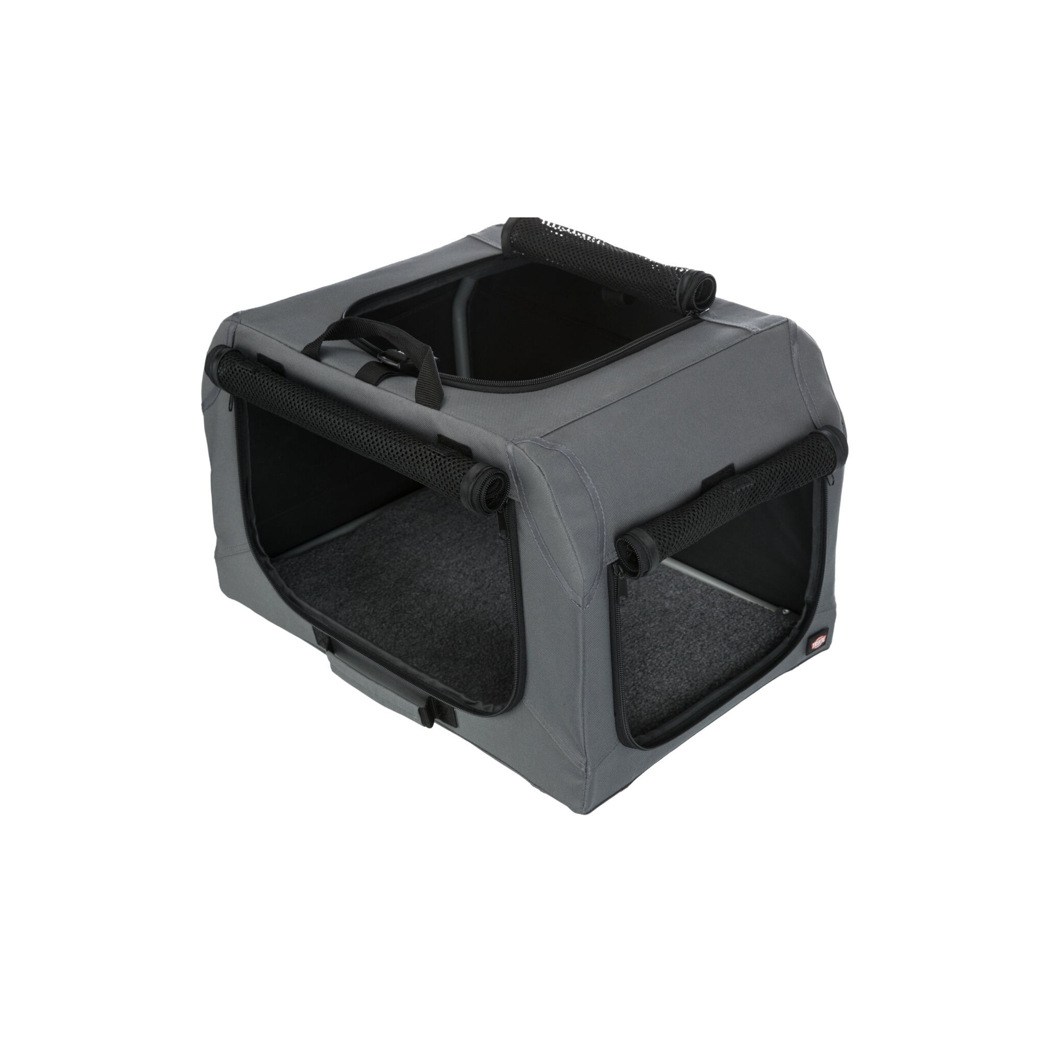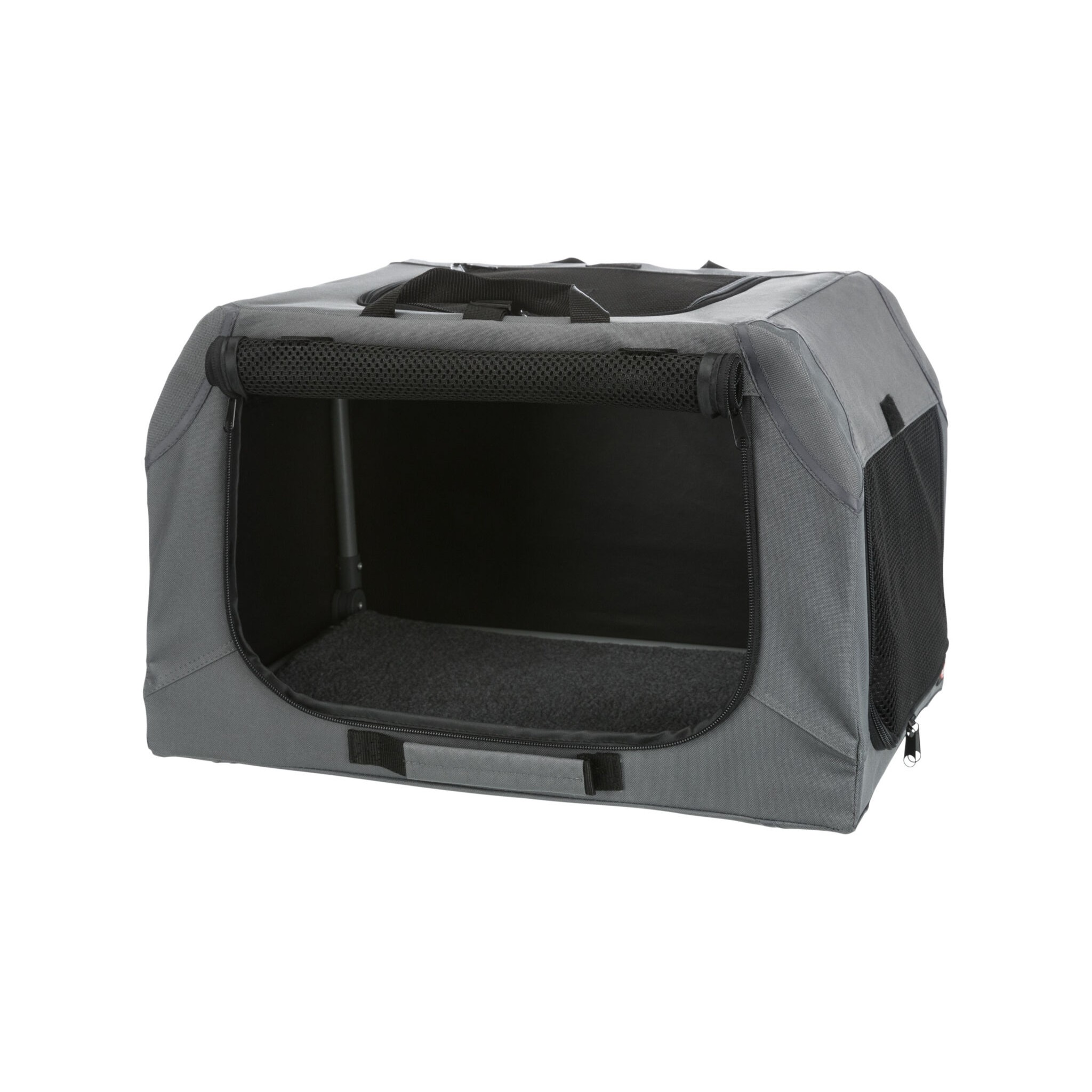 Klatka dla psa Easy to praktyczne i wygodne rozwiązanie do transportu czworonoga. Wyposażona w stabilną ramę metalową oraz otwarcie z trzech stron zapewnia bezpieczeństwo i wygodę zwierzęciu. Trzy rączki ułatwiają przenoszenie, a mata do leżenia z imitacji futra jagnięcego zapewnia komfortowy odpoczynek podczas podróży. Wykonana z poliestru, w kolorze szarym.
