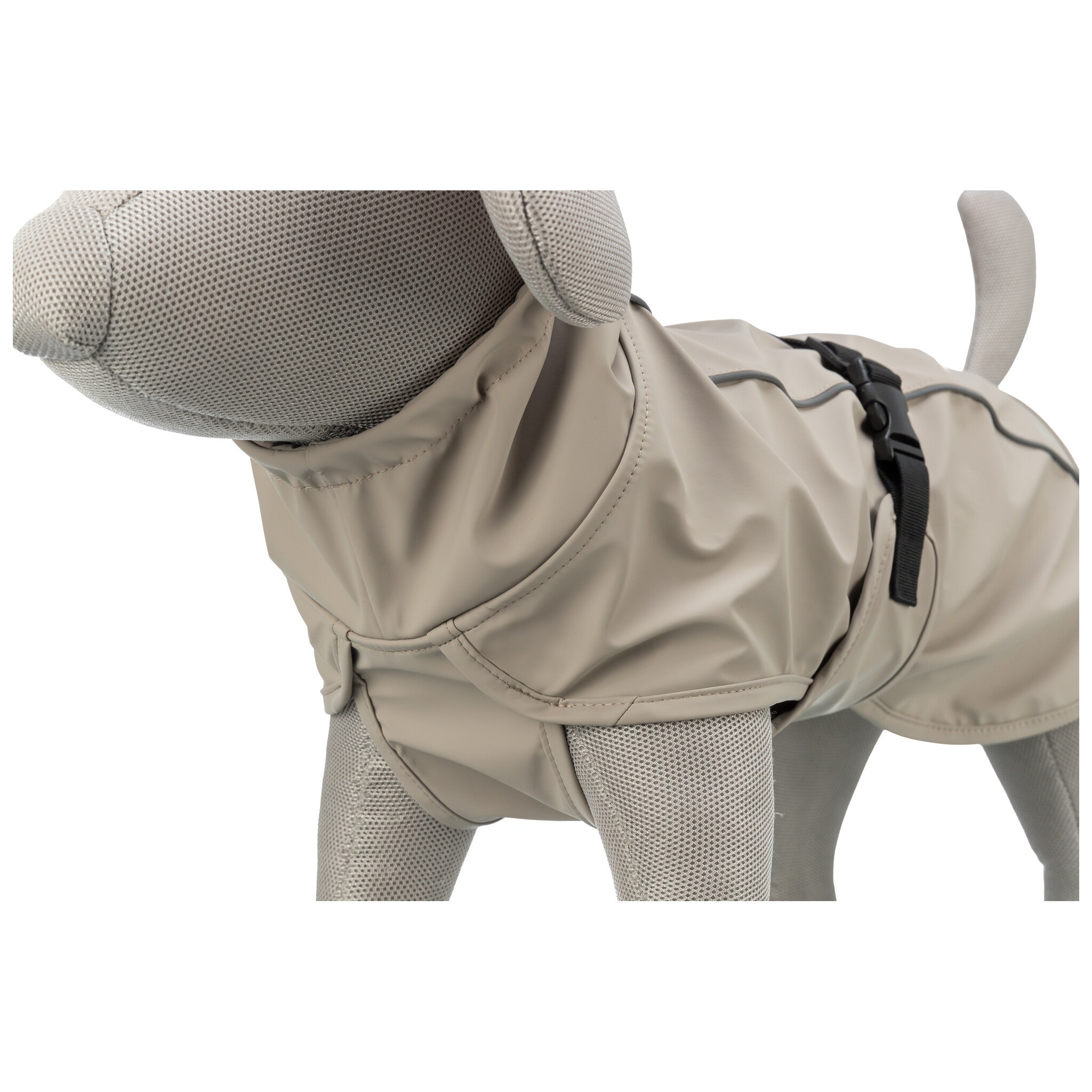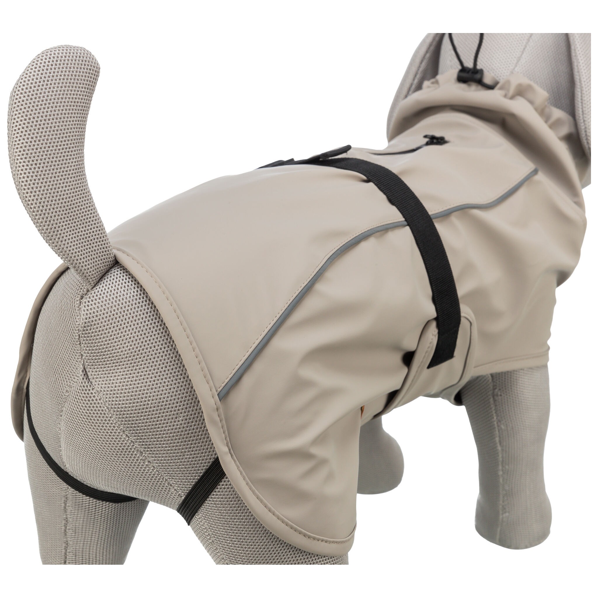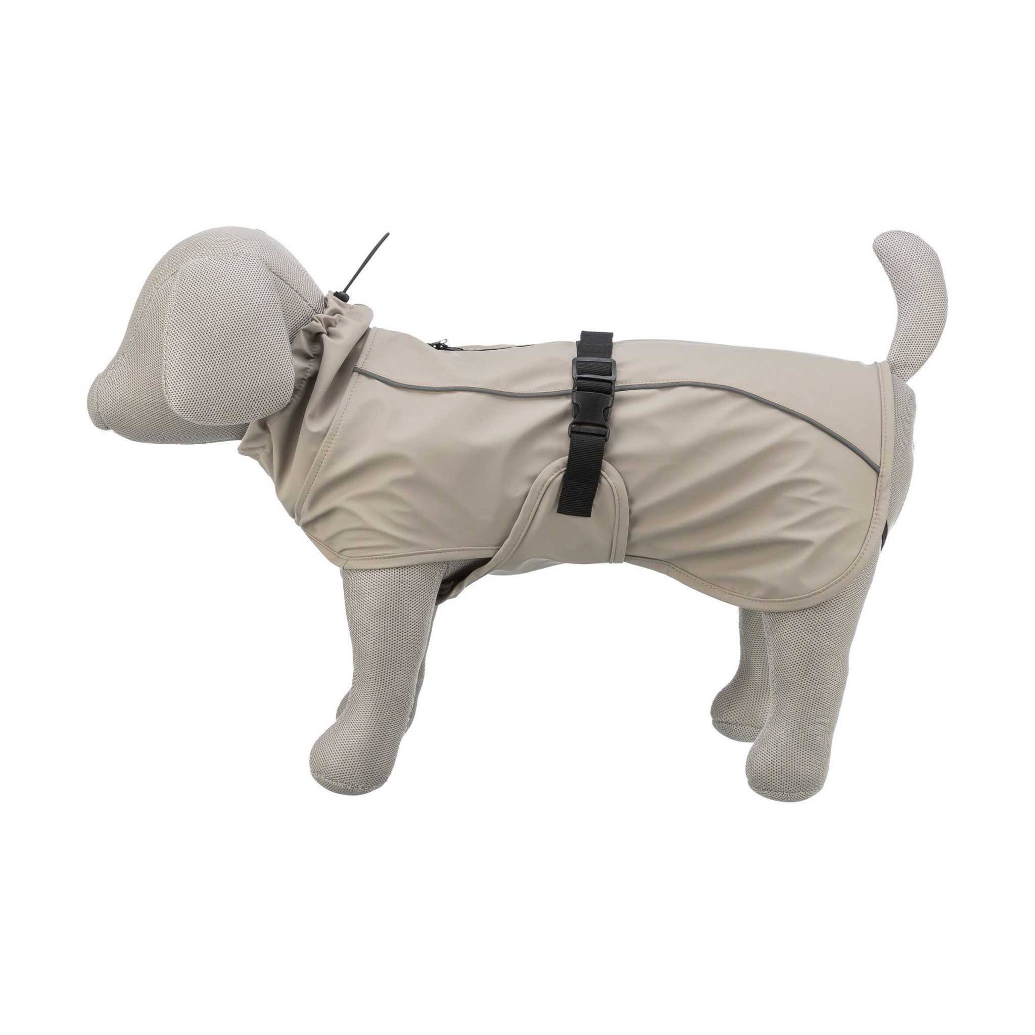 Płaszczyk przeciwdeszczowy dla psów BE NORDIC Husum wykonany jest z poliuretanu i poliestru, co sprawia, że jest wodoodporny. Posiada wygodny, regulowany pas na brzuch, regulowane pętle na łapy oraz elementy odblaskowe, zapewniające widoczność zwierzęcia po zmroku. Dodatkowo, posiada wodoodporny zamek błyskawiczny oraz troczek przy kołnierzu. Miękka, łatwa w pielęgnacji podszewka zapewnia komfort i ochronę przed wiatrem. Płaszczyk charakteryzuje się obszernym krojem, który zapewnia ochronę tylnej części ciała oraz większą swobodę ruchu.