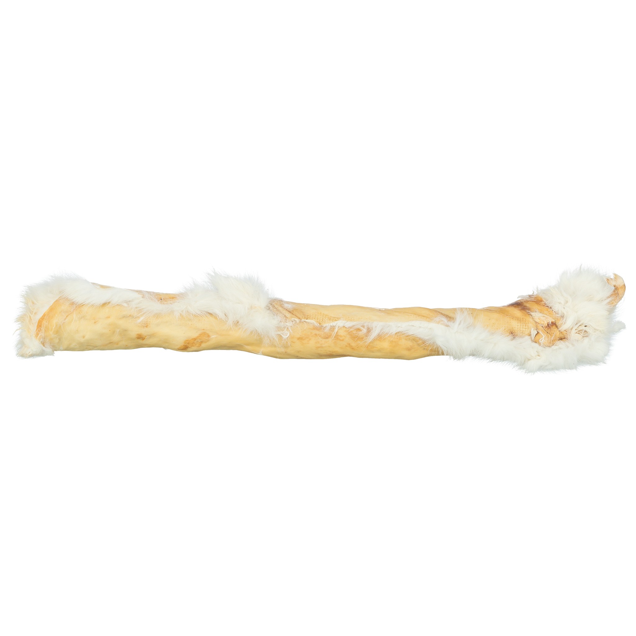 Przekąska monoproteinowa, szczególnie polecana dla zwierząt z alergiami pokarmowymi. Produkt pakowany w paczkach. Zawiera 100% skórę króliczą z sierścią, suszoną.