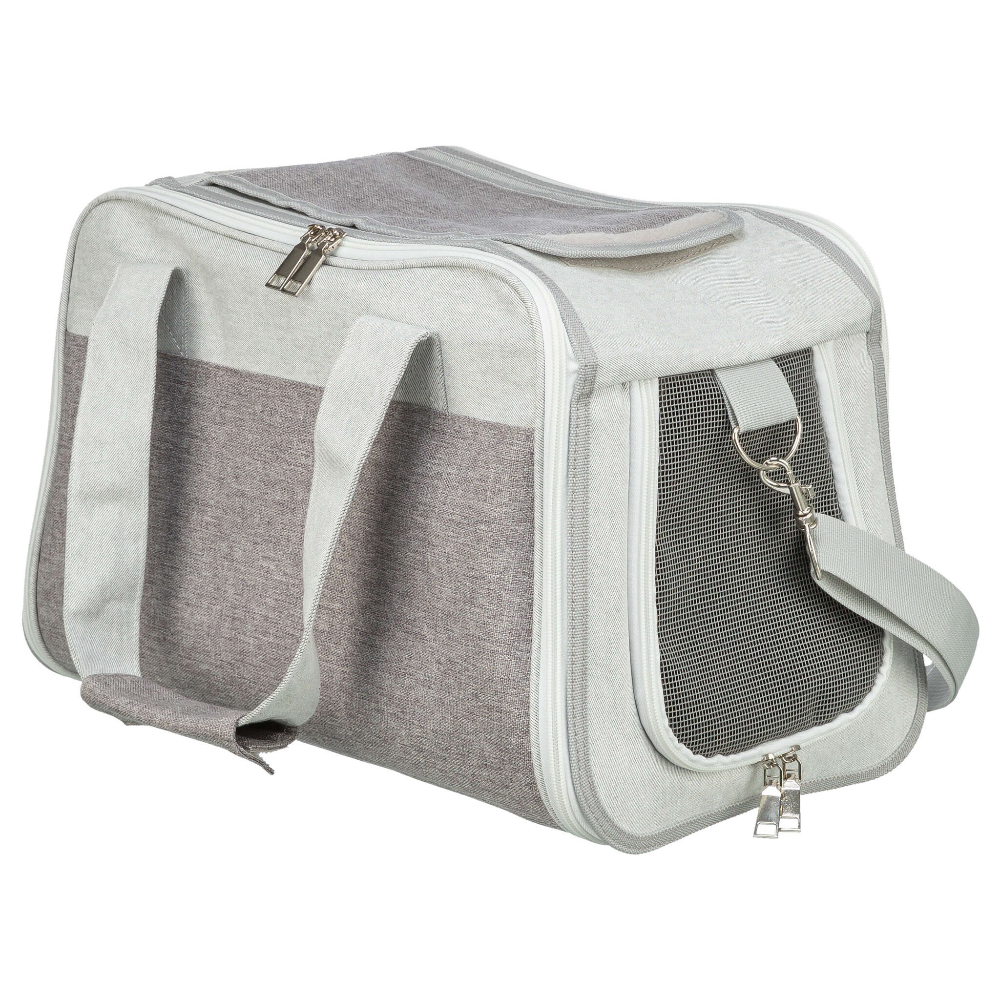 Torba Libby to funkcjonalny produkt, który otwiera się zarówno z przodu, jak i z góry. Jest wyściełana dla większego komfortu pupila. Posiada możliwość zakrycia górnej wstawki siatkowej, co zwiększa prywatność. Zewnętrzna kieszeń umożliwia przechowywanie drobnych przedmiotów, a zdejmowany pas naramienny zapewnia wygodę podczas transportu. Torba wyposażona jest również w zintegrowaną krótką smycz oraz wyściełaną, zdejmowaną podstawę. Wykonana jest z poliestru, co zapewnia jej trwałość.