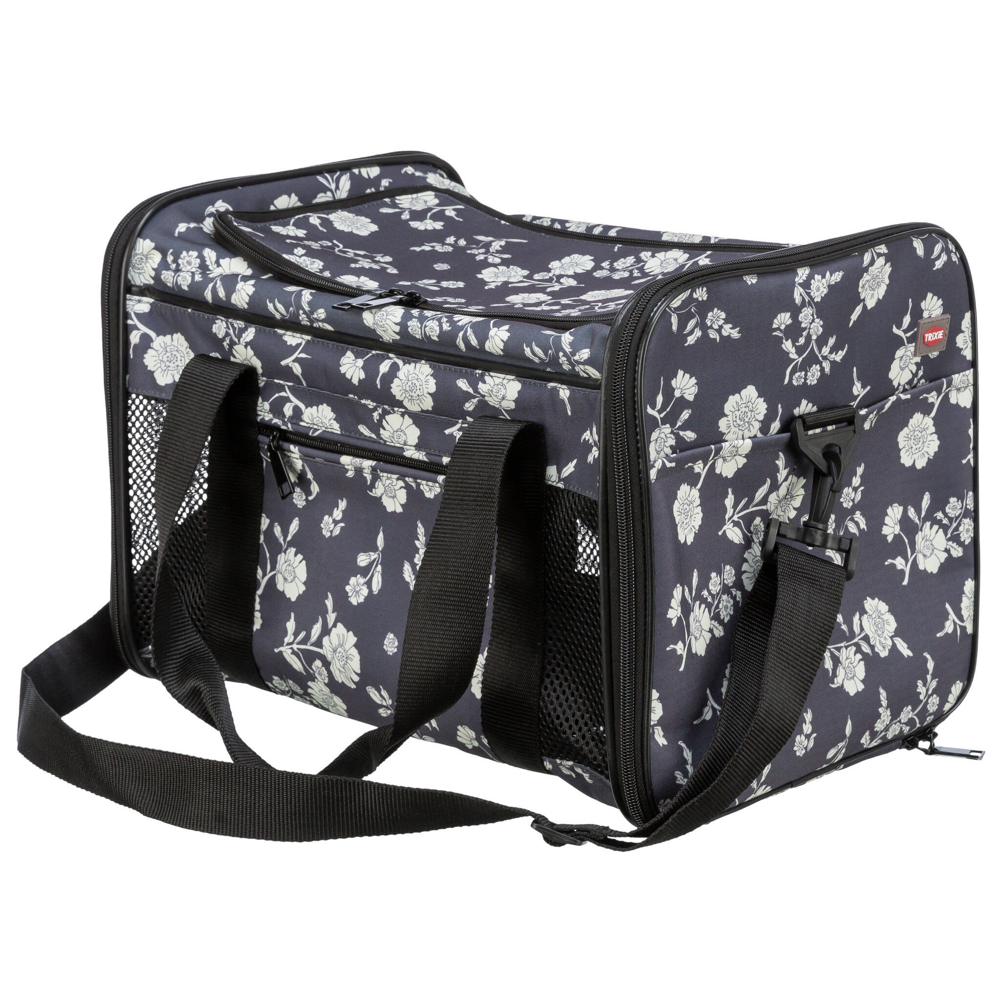 Torba Adrina to idealne rozwiązanie do transportu psów. Otwierana od góry, wyposażona w zewnętrzne kieszenie oraz zdejmowany pas naramienny. Posiada zintegrowaną krótką smycz oraz zdejmowaną podstawę z pluszem (wykonaną z poliestru). Wykonana z trwałego poliestru, zapewnia komfort i wygodę w podróży.