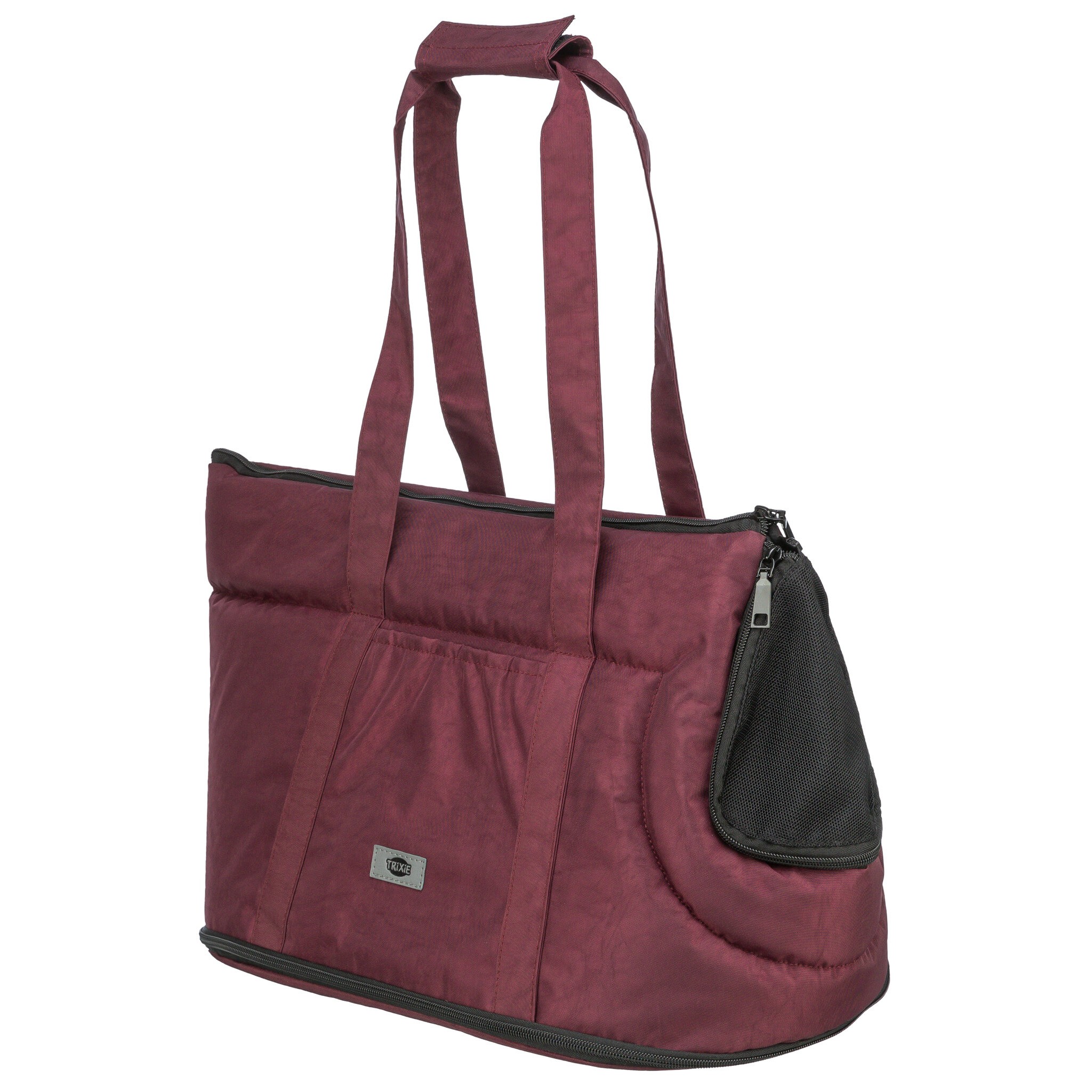 Torba Riva to idealne rozwiązanie do transportu psa. Otwierana od góry, posiada wyściółkę, co zapewnia komfort podczas podróży. Wyposażona jest w wkładkę z siateczki z suwakiem na przodzie oraz zewnętrzną kieszeń. Torba zawiera także zintegrowaną krótką smycz, a wewnętrzna wyściółka wykonana jest z flauszu, co podnosi jej jakość. Materiał zewnętrzny to żakard z poliestru.
