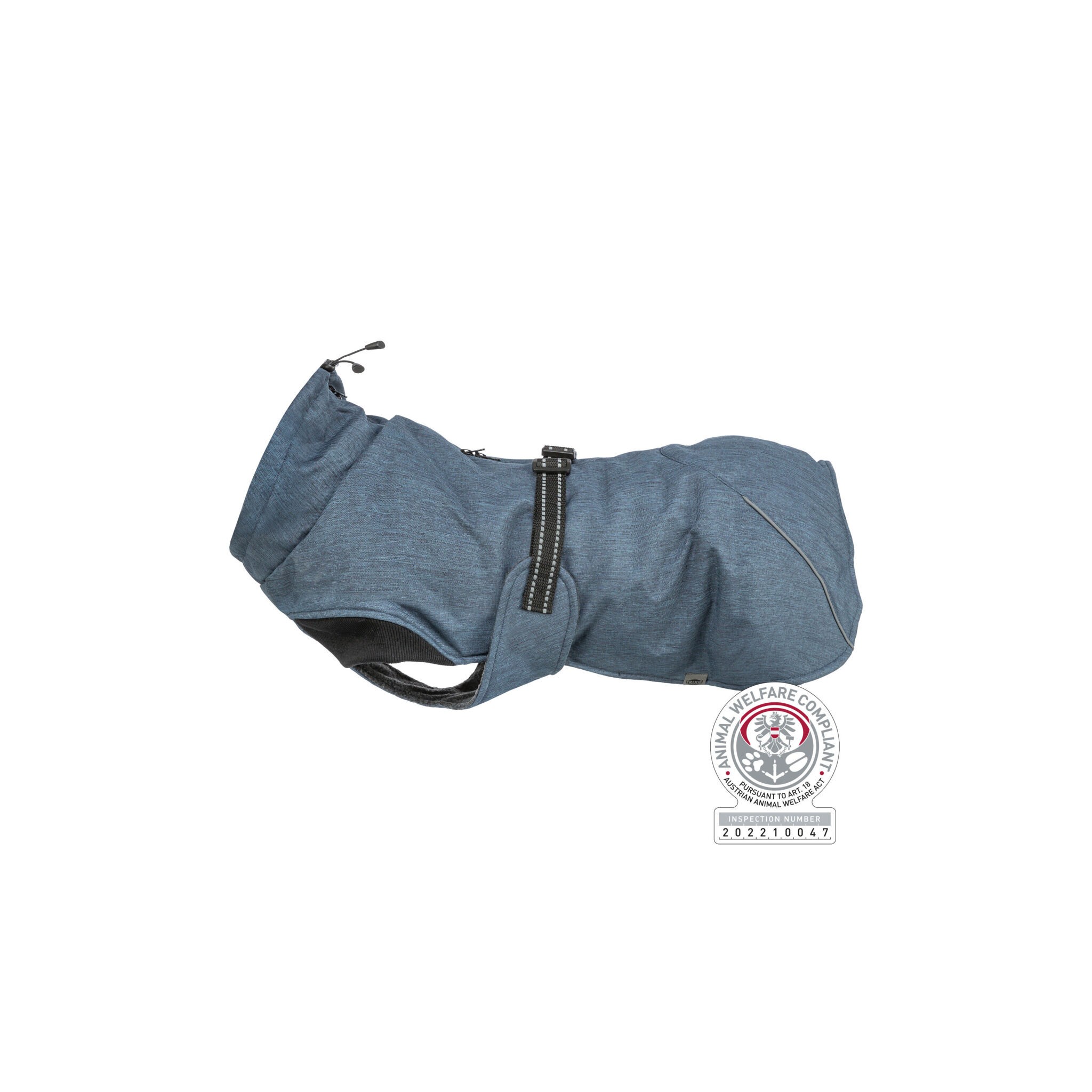 Wykonany z wodoodpornego i wiatroszczelnego materiału zapewnia ochronę przed zimnem i deszczem. Miękka podszewka z flauszu gwarantuje wygodę. Regulowane elementy, takie jak pas na brzuch i pętle na łapy, umożliwiają idealne dopasowanie. Elementy odblaskowe zwiększają widoczność psa. Produkt testowany pod kątem dobrostanu zwierząt przez ekspertów.