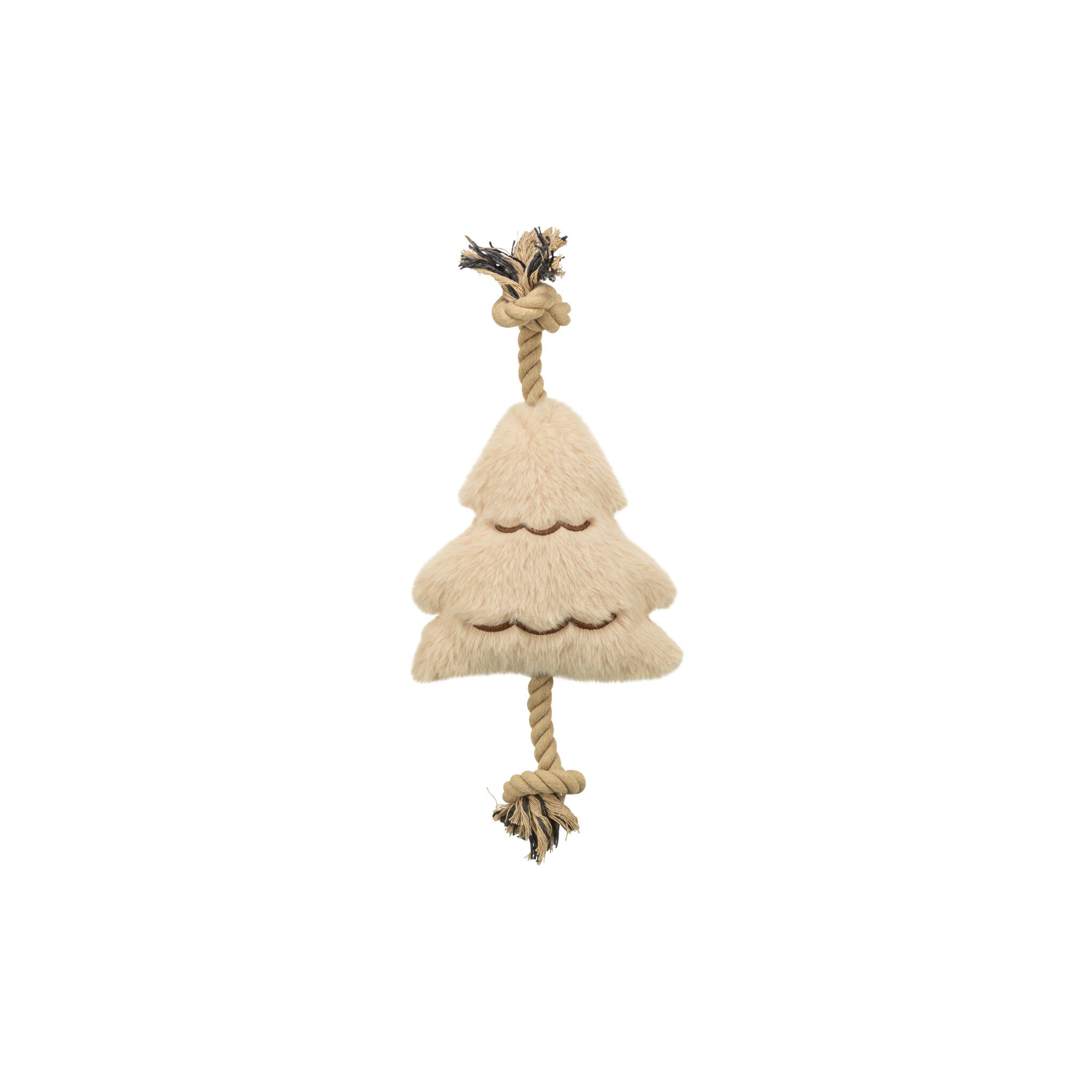 Przedmiotem jest pluszowa choinka, wykonana z miękkiego pluszu (z poliestru) lub bawełny. Idealna do zabawy i jako ozdoba dla psa.