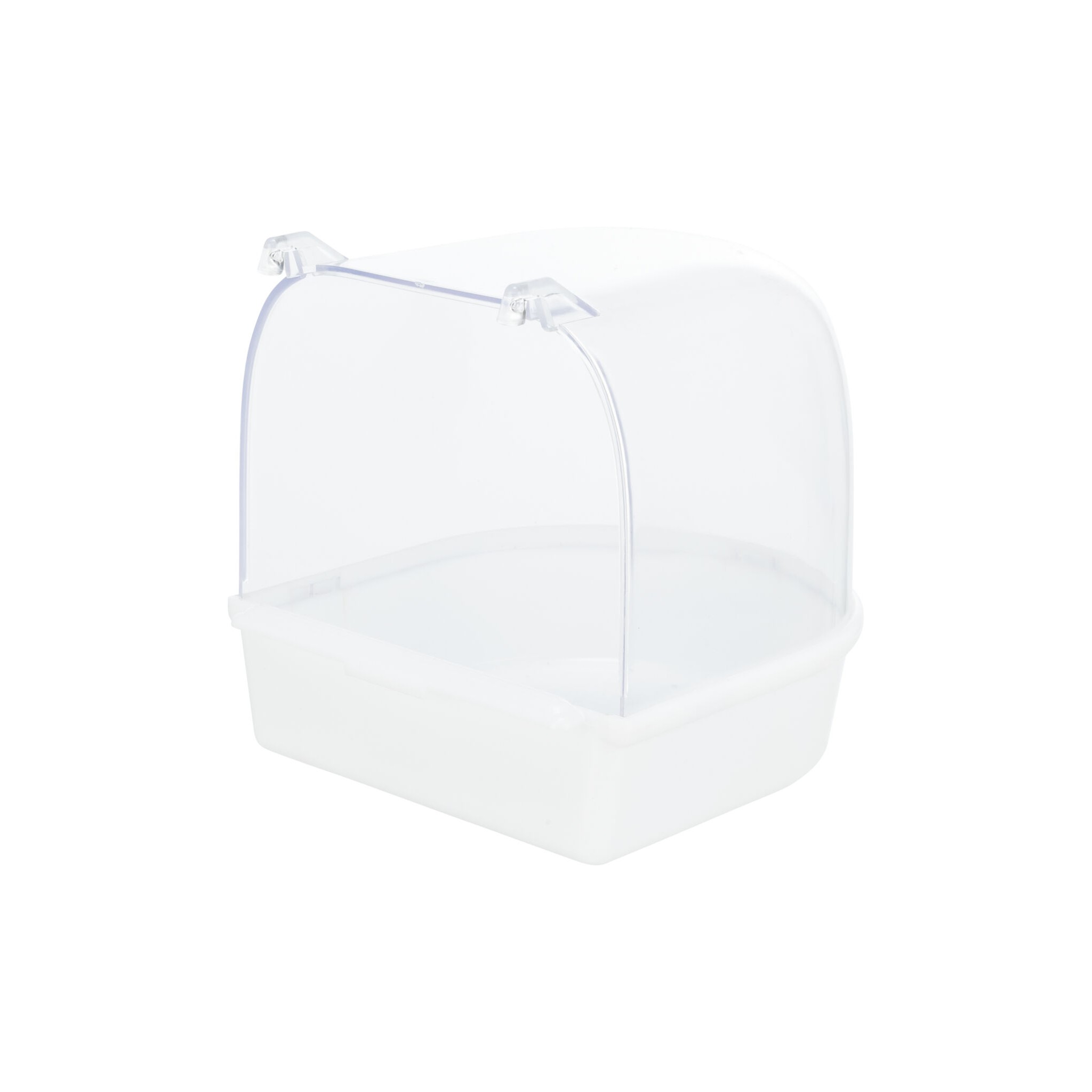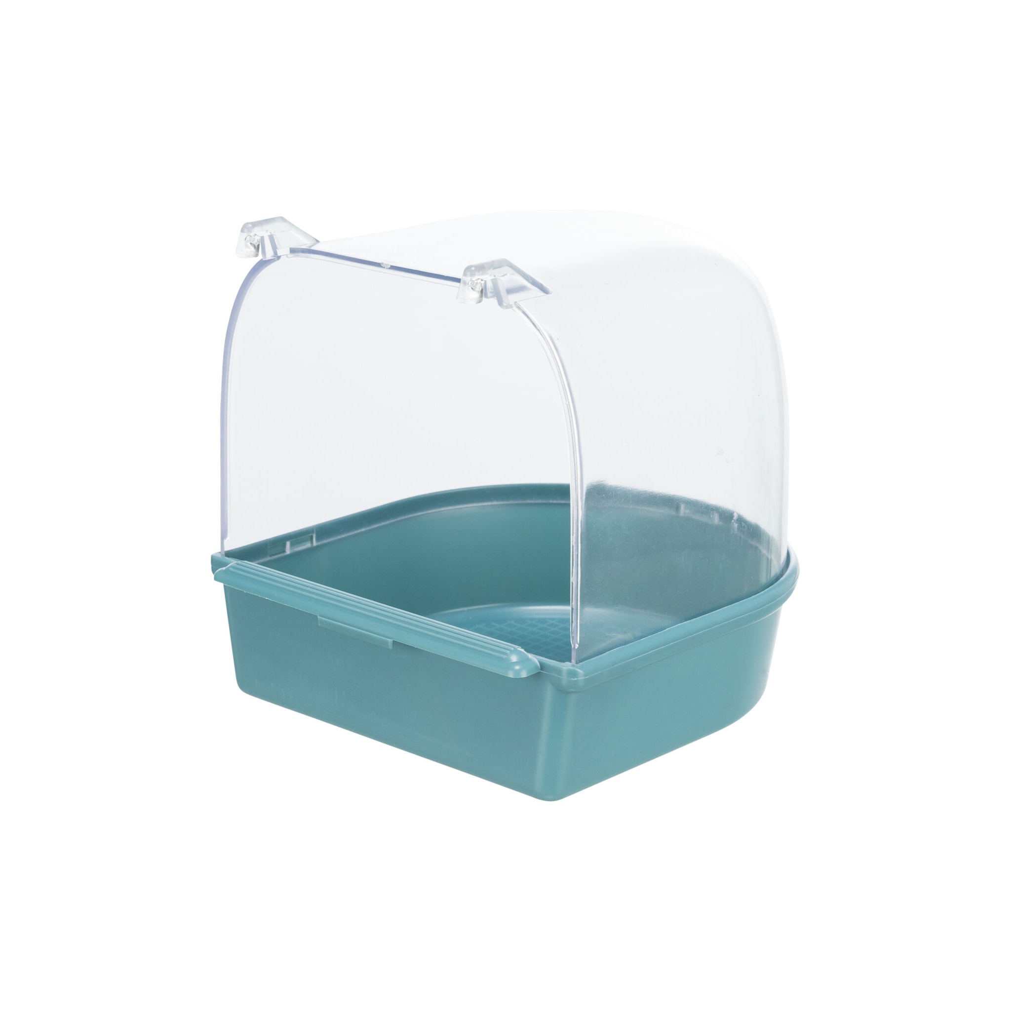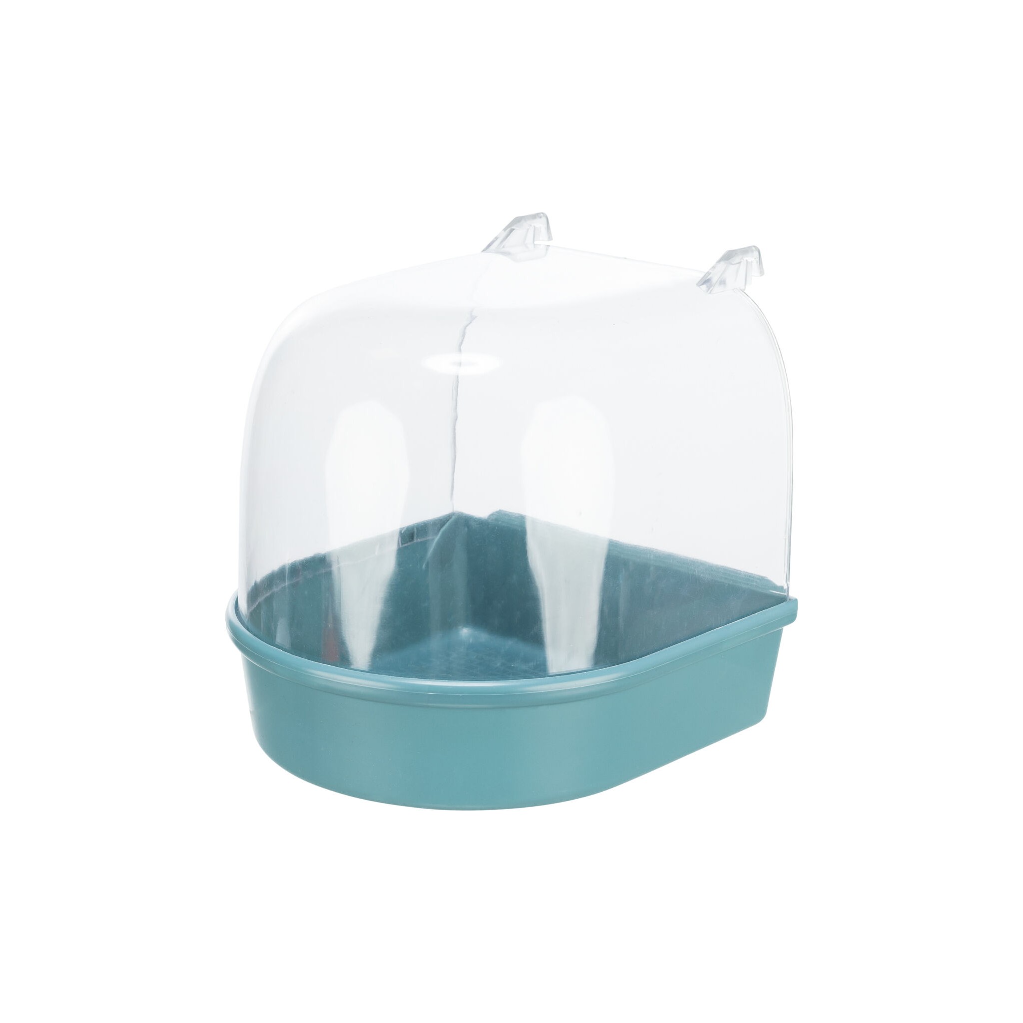 Pojemnik do kąpieli półokrągły jest doskonałym wyposażeniem dla właścicieli ptaków. Może być zawieszany przy drzwiczkach wejściowych, a jego optymalne otwarcie drzwiczek (13 × 10 cm) sprawia, że jest łatwy w użyciu. Góra jest przezroczysta, a pojemnik występuje w różnych kolorach, co pozwala dostosować go do preferencji estetycznych. Wykonany jest z plastiku, co czyni go łatwym w utrzymaniu czystości.