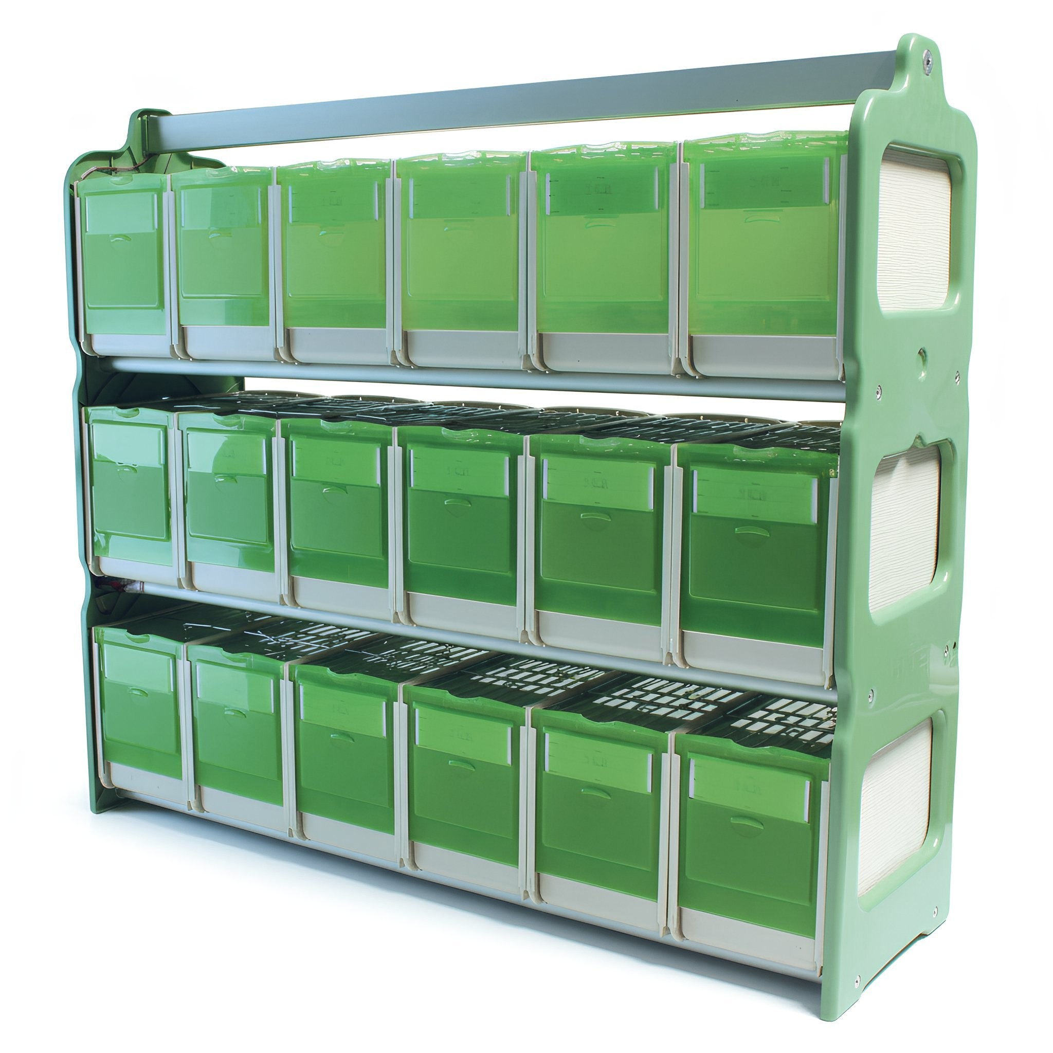 Regał z 18 Transporterami Secondino Medio, Zielony, 71 × 22 × 62 cm