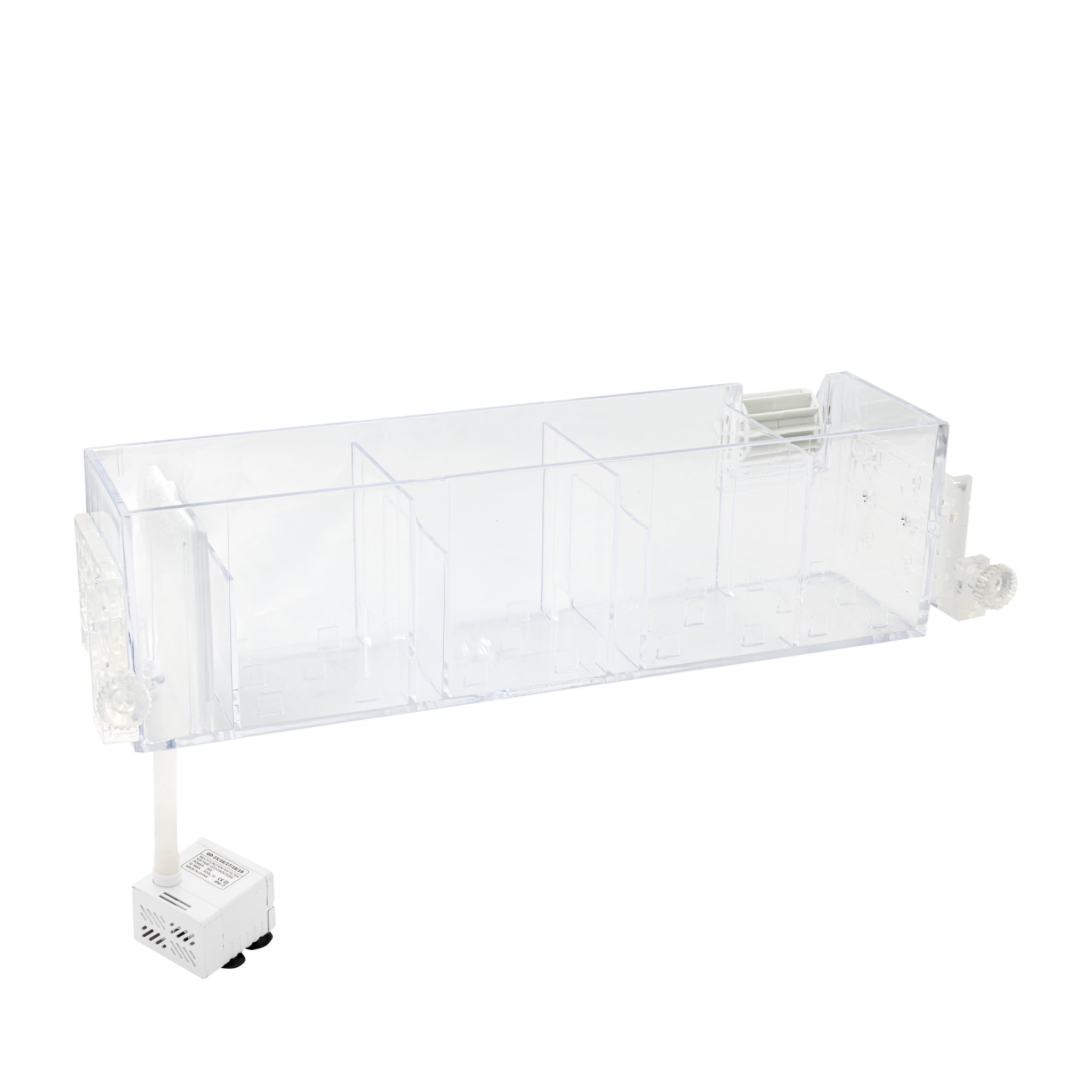 • Wykonany z wysokiej jakości tworzywa sztucznego, filtr zapewnia trwałość i szczelność. Solidne materiały gwarantują długowieczność produktu, a duża przestrzeń na media filtracyjne umożliwia ich szybką i łatwą wymianę, dostosowując filtr do zmieniających się warunków w akwarium.