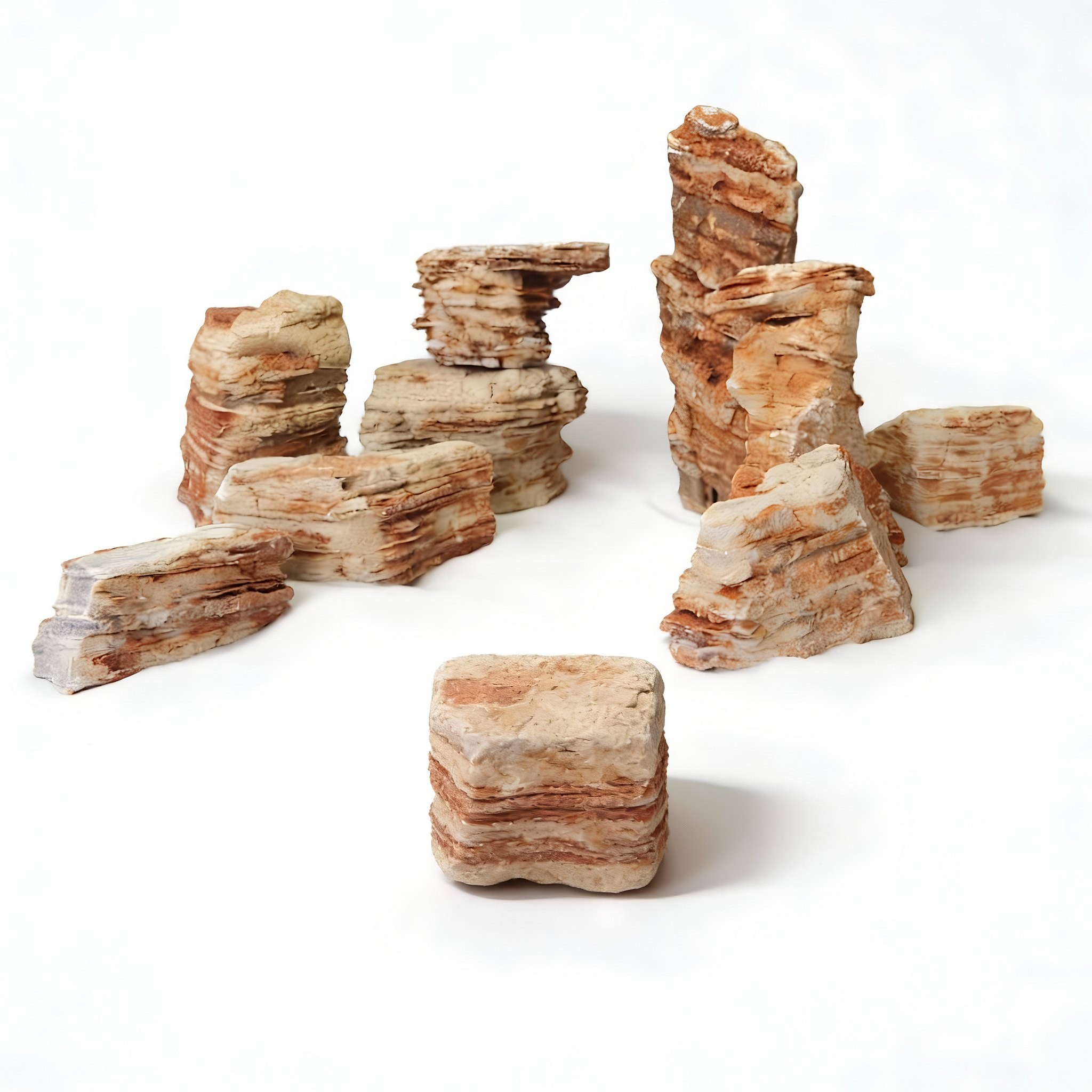 • Czerwonobrązowy kolor z białymi krawędziami: Kolor kamienia jest doskonałym tłem dla roślin wodnych oraz ryb, nadając akwarium głębię i naturalny wygląd.