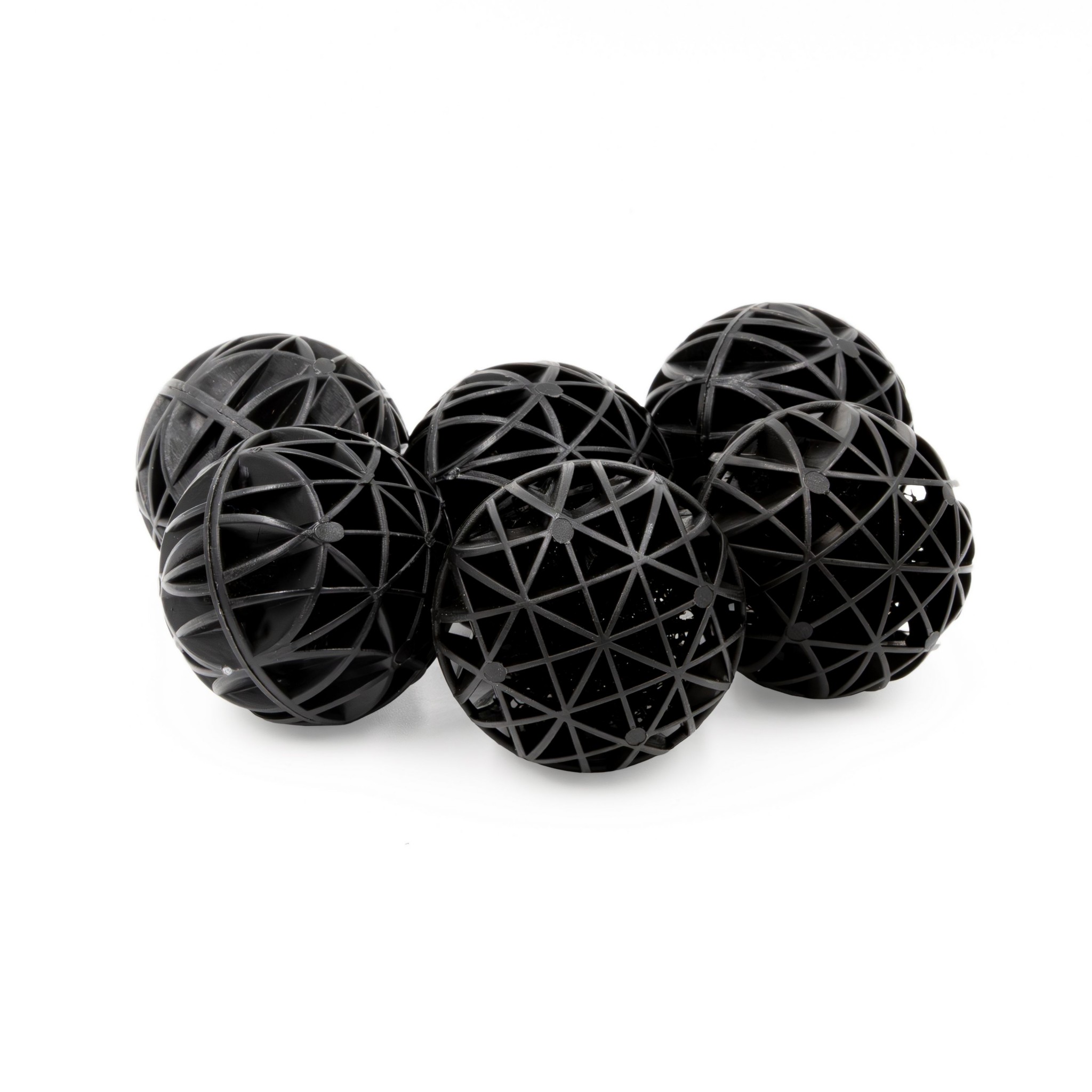 Ażurowa i porowata struktura Bio Ball, z licznymi kanalikami, tworzy idealne środowisko dla rozwoju pożytecznych bakterii nitryfikacyjnych, takich jak Nitrosomonas i Nitrobacter. Mikroorganizmy te przekształcają toksyczny amoniak (NH4) i azotyny (NO2) w mniej szkodliwe azotany (NO3), które są przyswajane przez rośliny wodne.