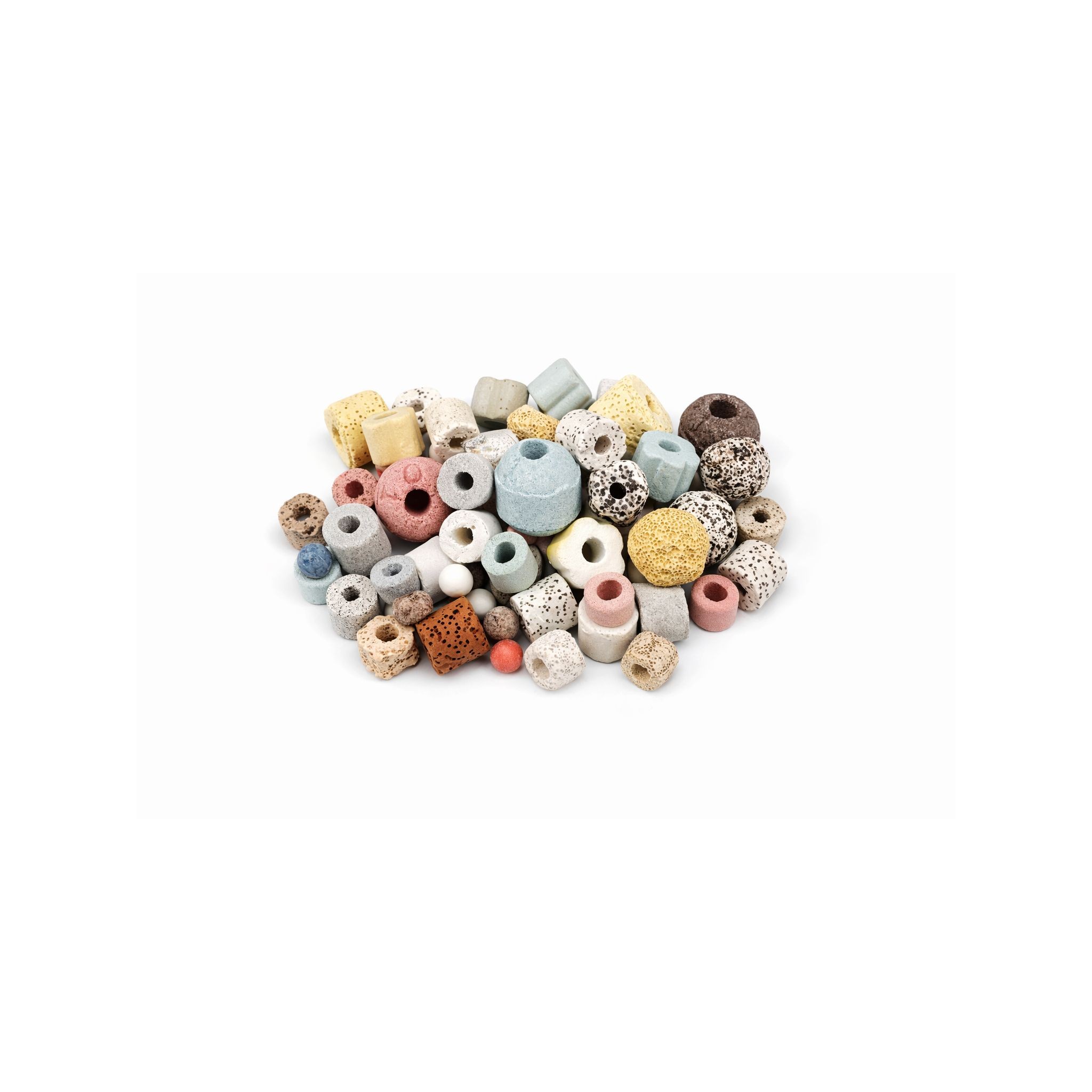 Dzięki wysokiej porowatości na poziomie około 70–80% medium oferuje bardzo dużą powierzchnię zasiedlenia dla bakterii nitryfikacyjnych i denitryfikacyjnych. To one odpowiadają za rozkład amoniaku, azotynów i azotanów, które powstają w trakcie codziennego funkcjonowania zbiornika. Otwarta, kompozytowa struktura zapewnia doskonały przepływ wody, co jest kluczowe dla wydajnej filtracji biologicznej i zapobiegania strefom beztlenowym.