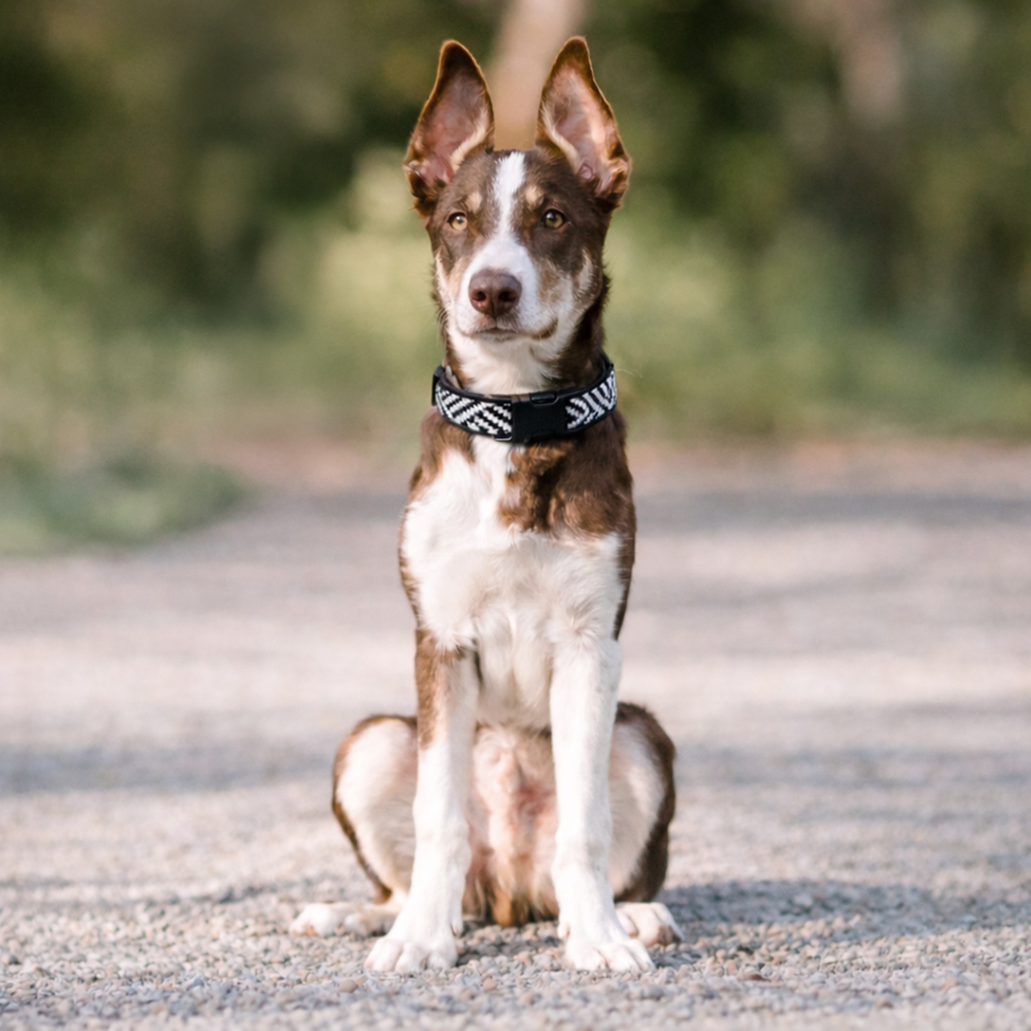 Wzór aztecki w postaci biało-czarnych pasków nadaje obroży unikalny i dynamiczny wygląd. Ten oryginalny wzór doskonale komponuje się z różnymi typami sierści i stylami psa, dodając mu charakteru i stylu podczas spacerów.