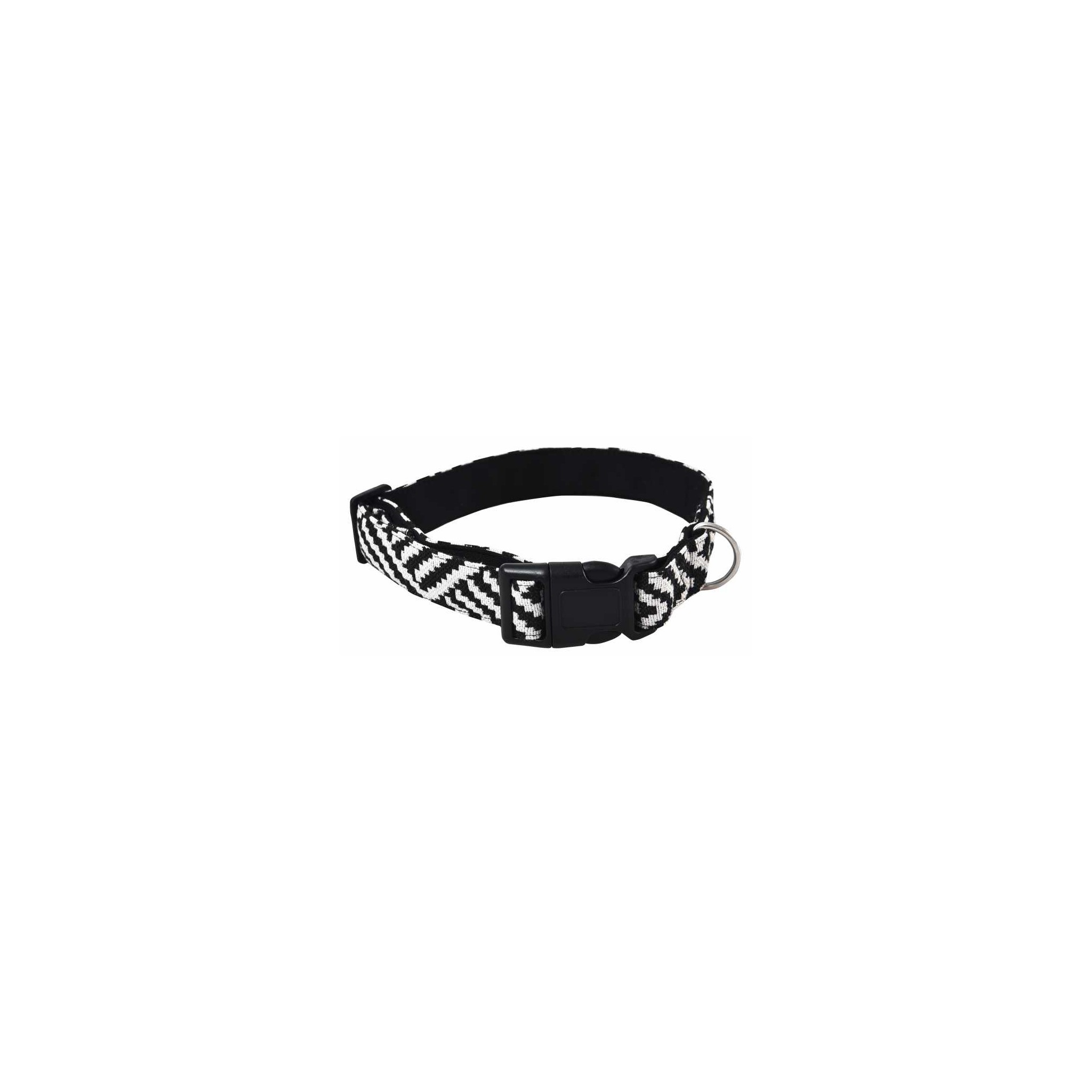 Wzór aztecki w postaci biało-czarnych pasków nadaje obroży unikalny i dynamiczny wygląd. Ten oryginalny wzór doskonale komponuje się z różnymi typami sierści i stylami psa, dodając mu charakteru i stylu podczas spacerów.