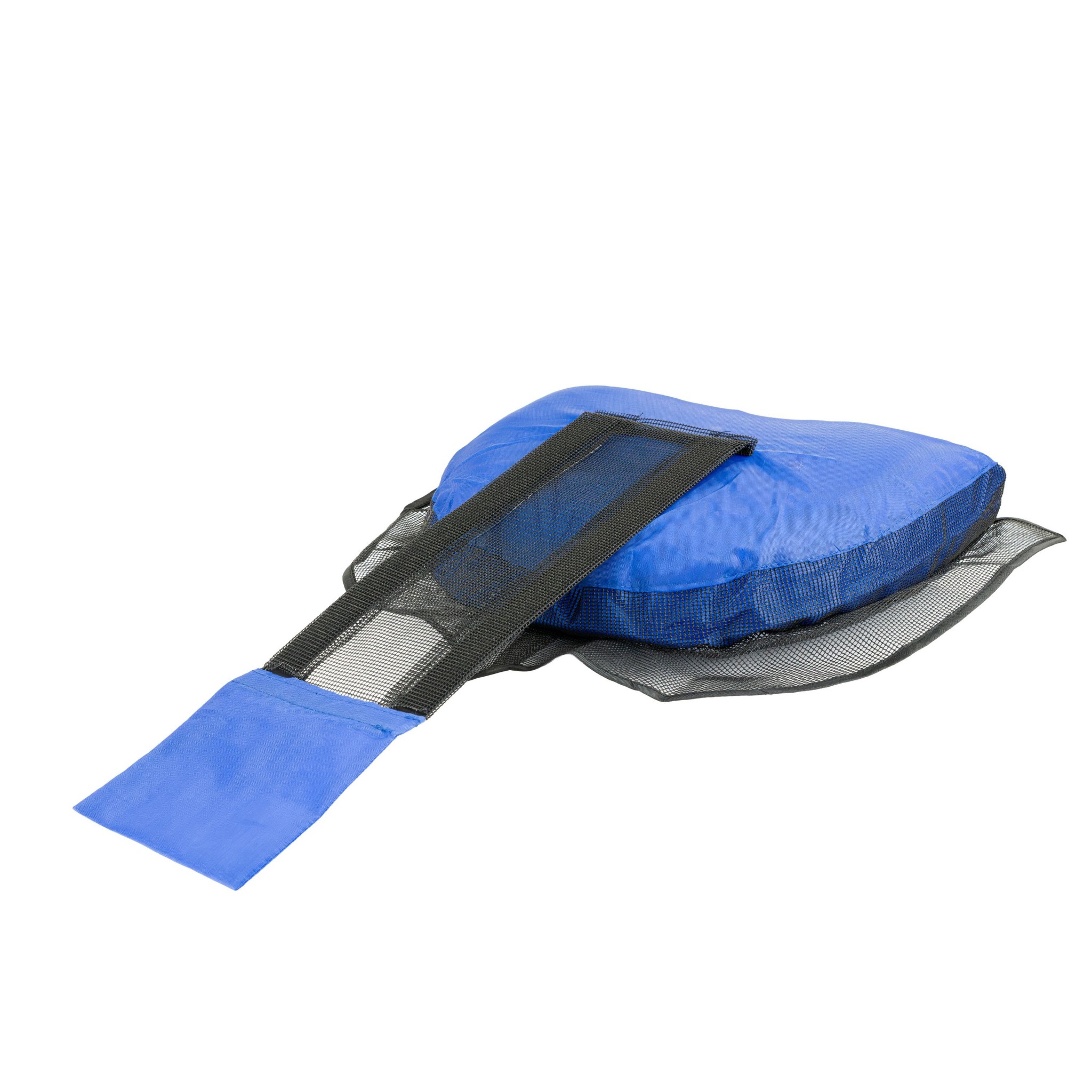 Prosty montaż bez użycia narzędzi — wystarczy rozłożyć rampę, obciążyć podstawę piaskiem lub kamieniami i umieścić ją w basenie, najlepiej w pobliżu krawędzi lub odpływu.